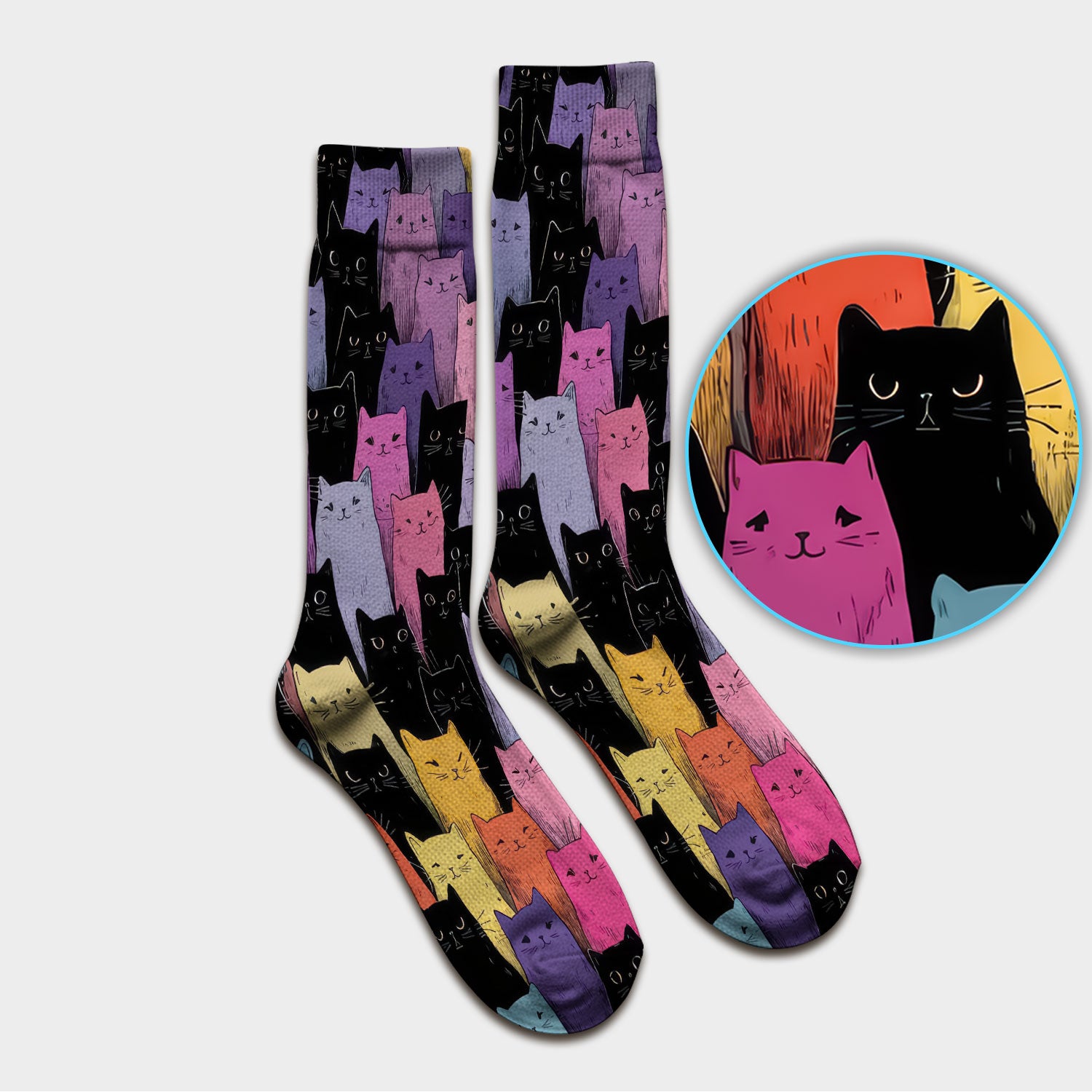Colorful Cat Art Medical Pattern Socks, Adult Socks for Men and Women