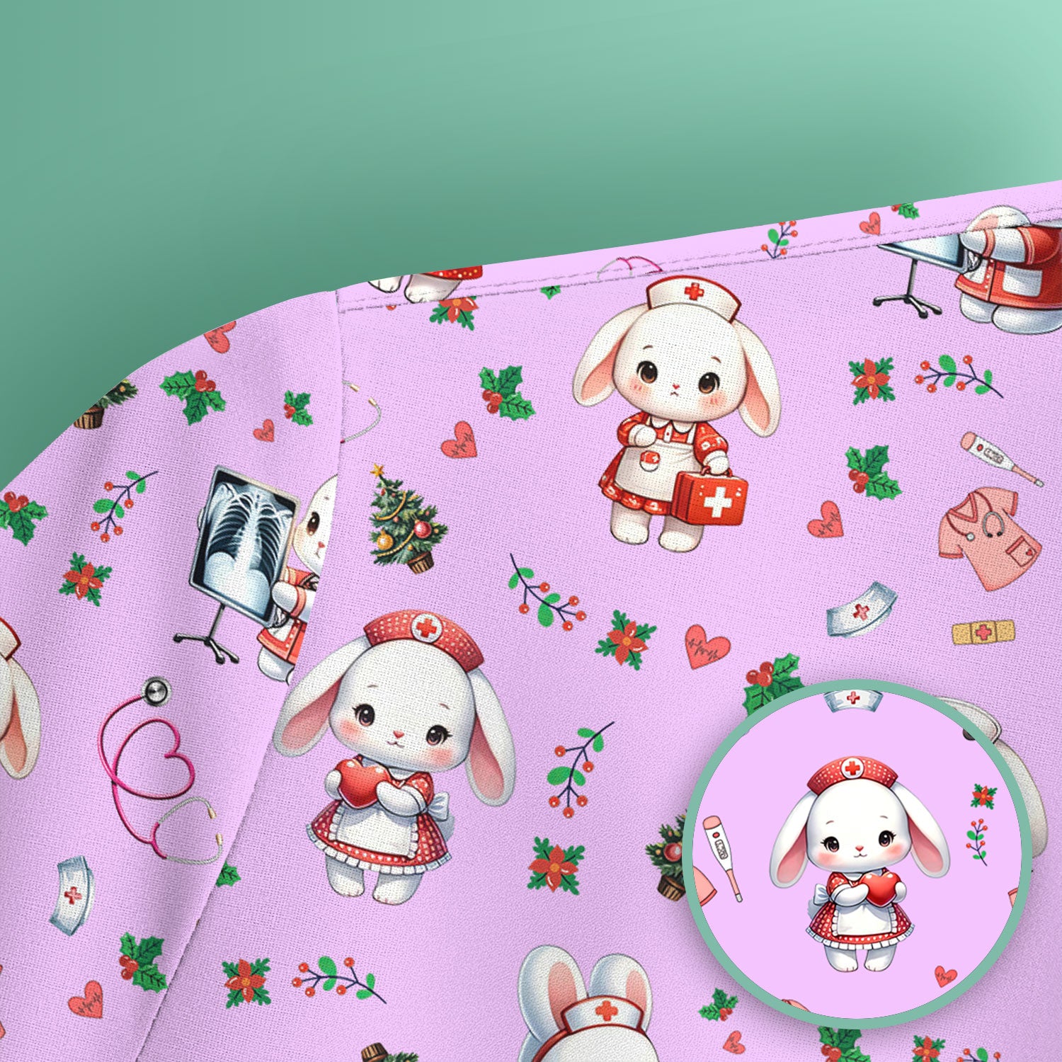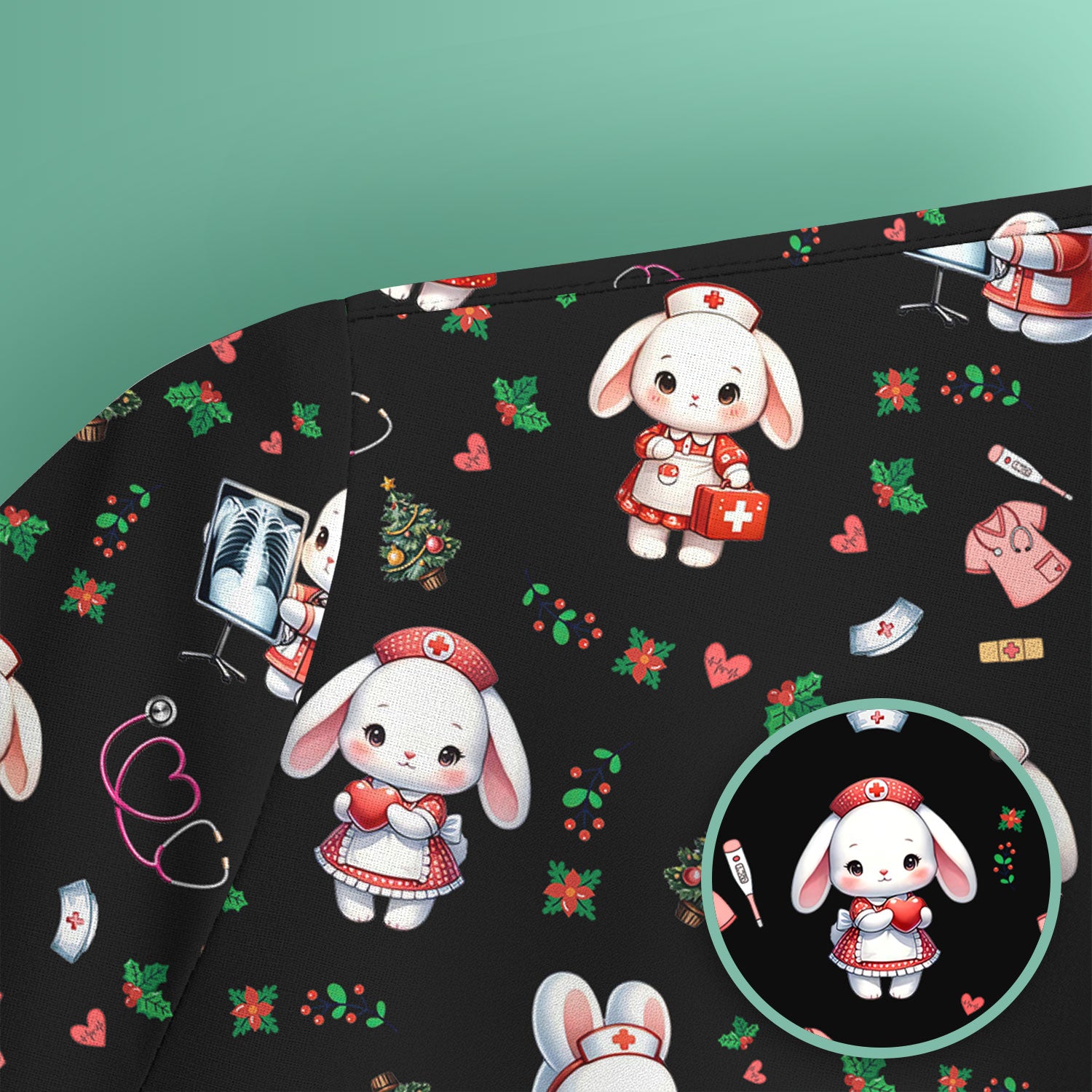 Comfortable Scrubs for Nurses - Funny Bunny Scrub Top - Rabbit Christmas Shirt - Xmas Med Uniform for Women