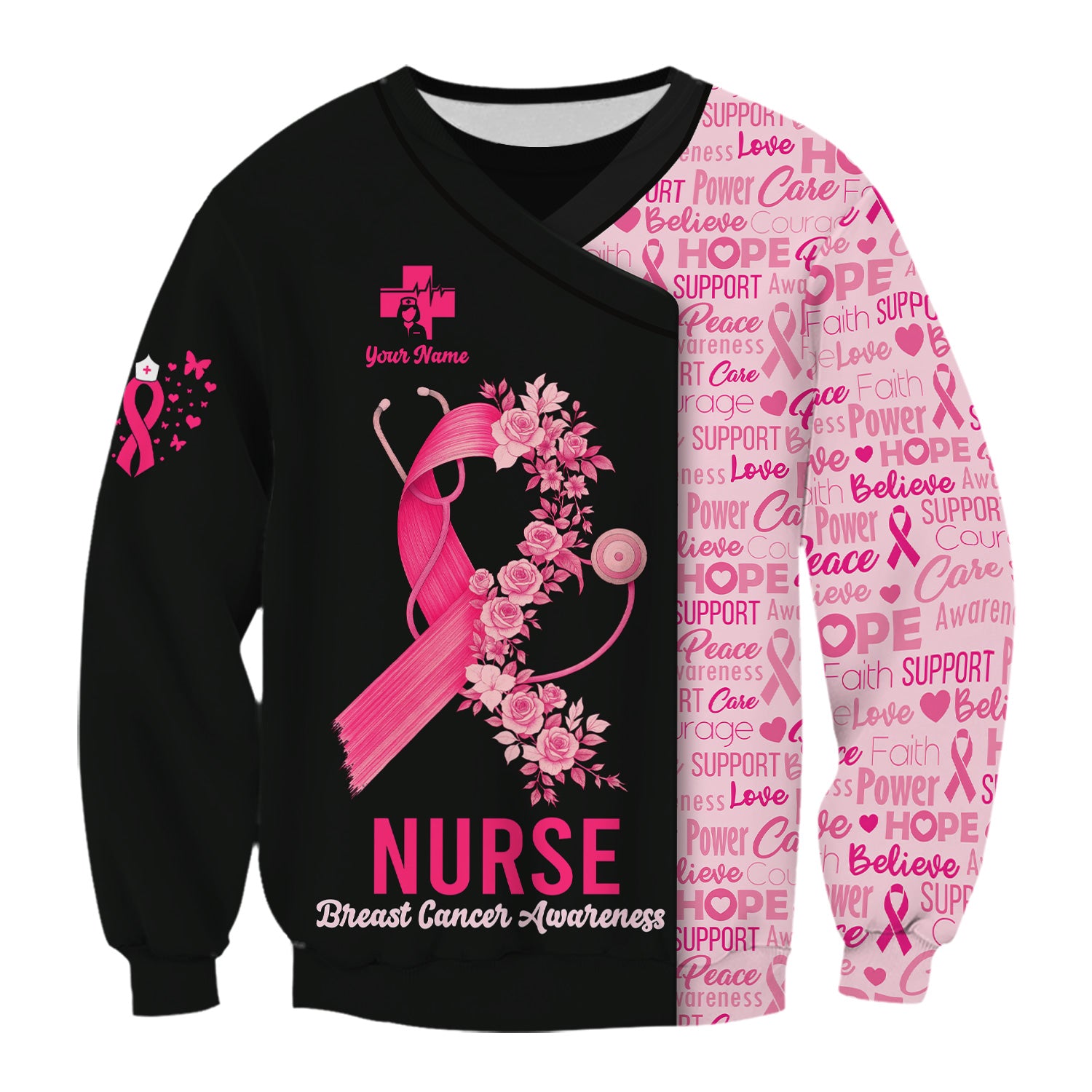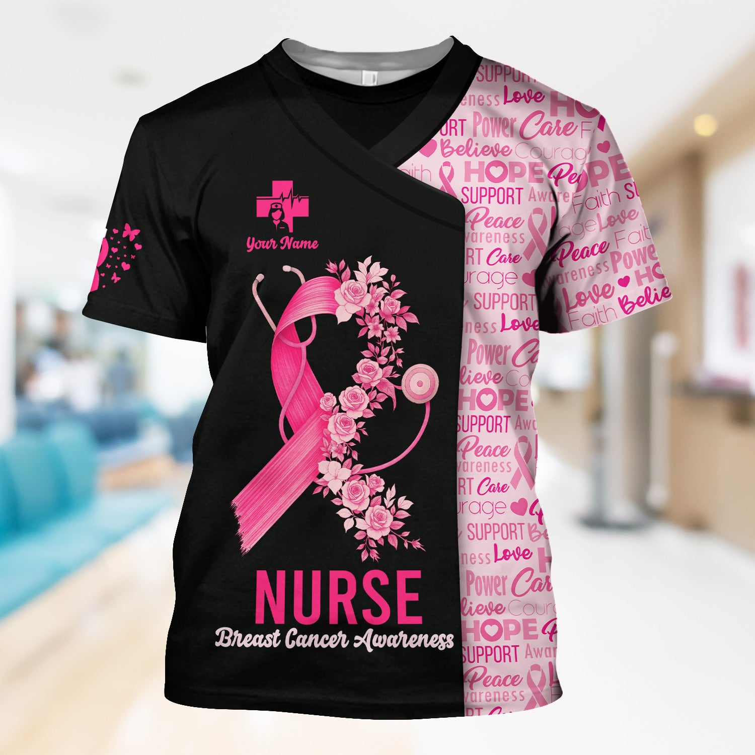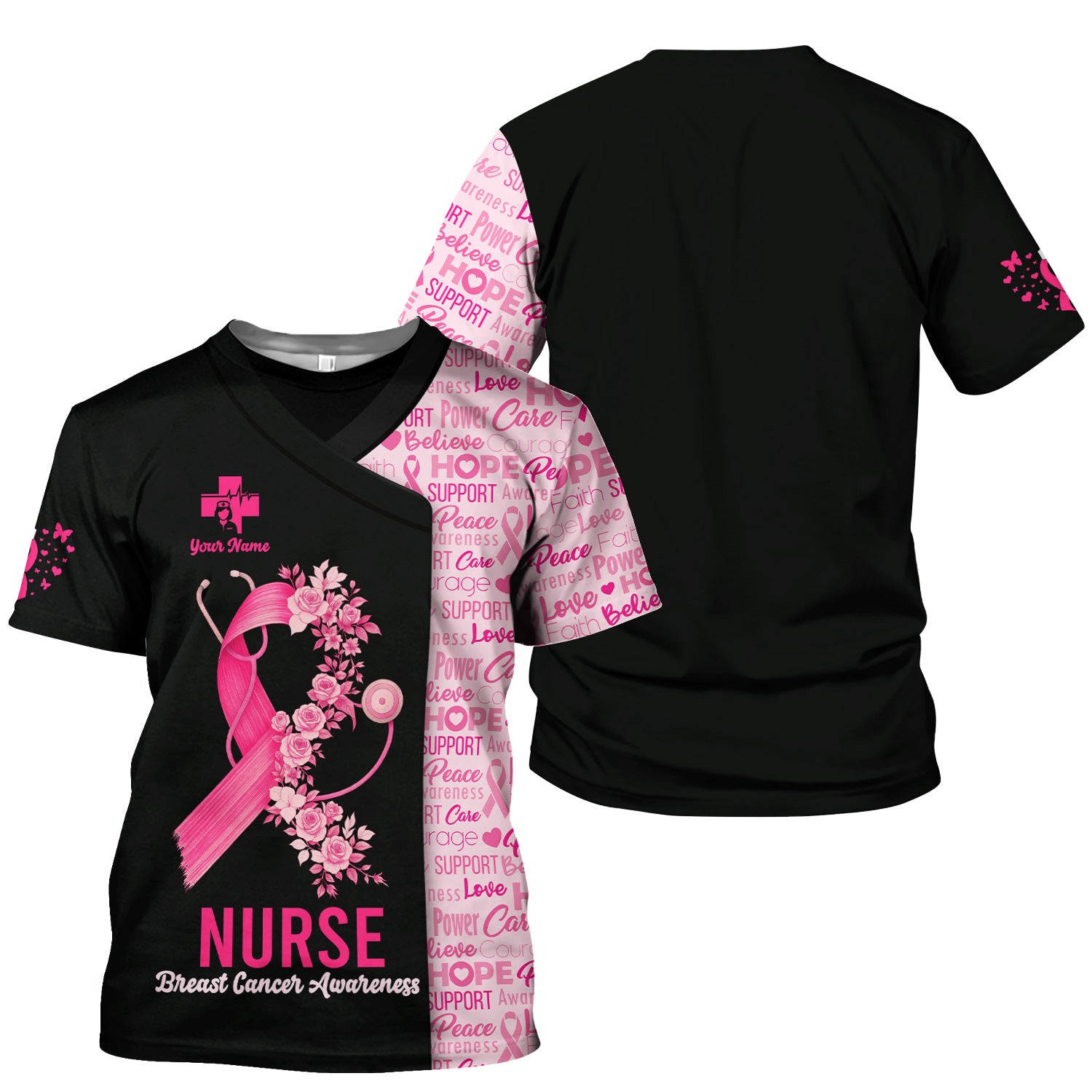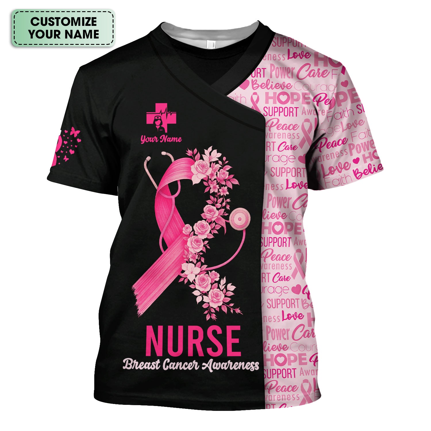 Custom Breast Cancer Awareness Nurse Shirt - Pink Ribbon Christian Faith Graphic Tee - Gift for CNA RN LPN