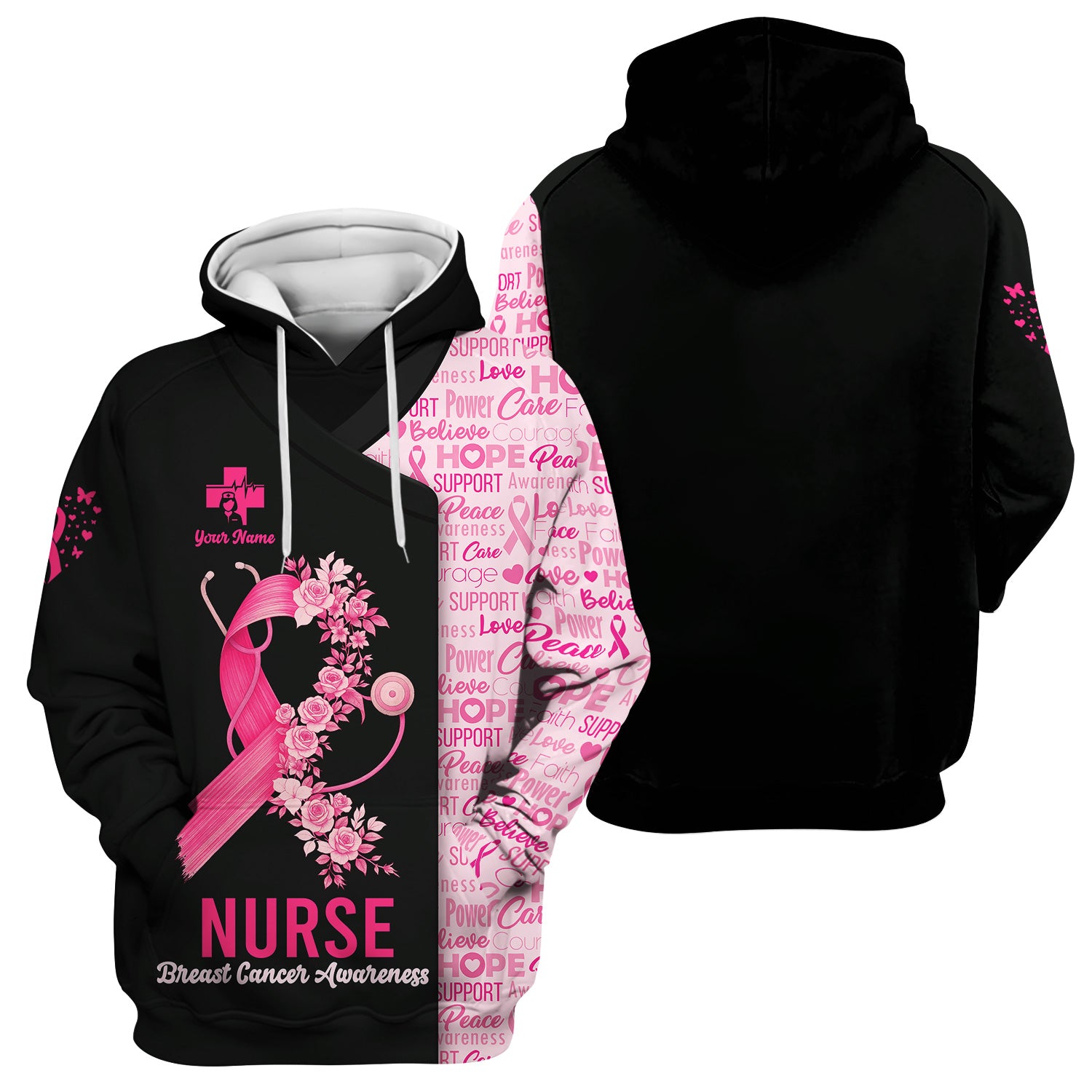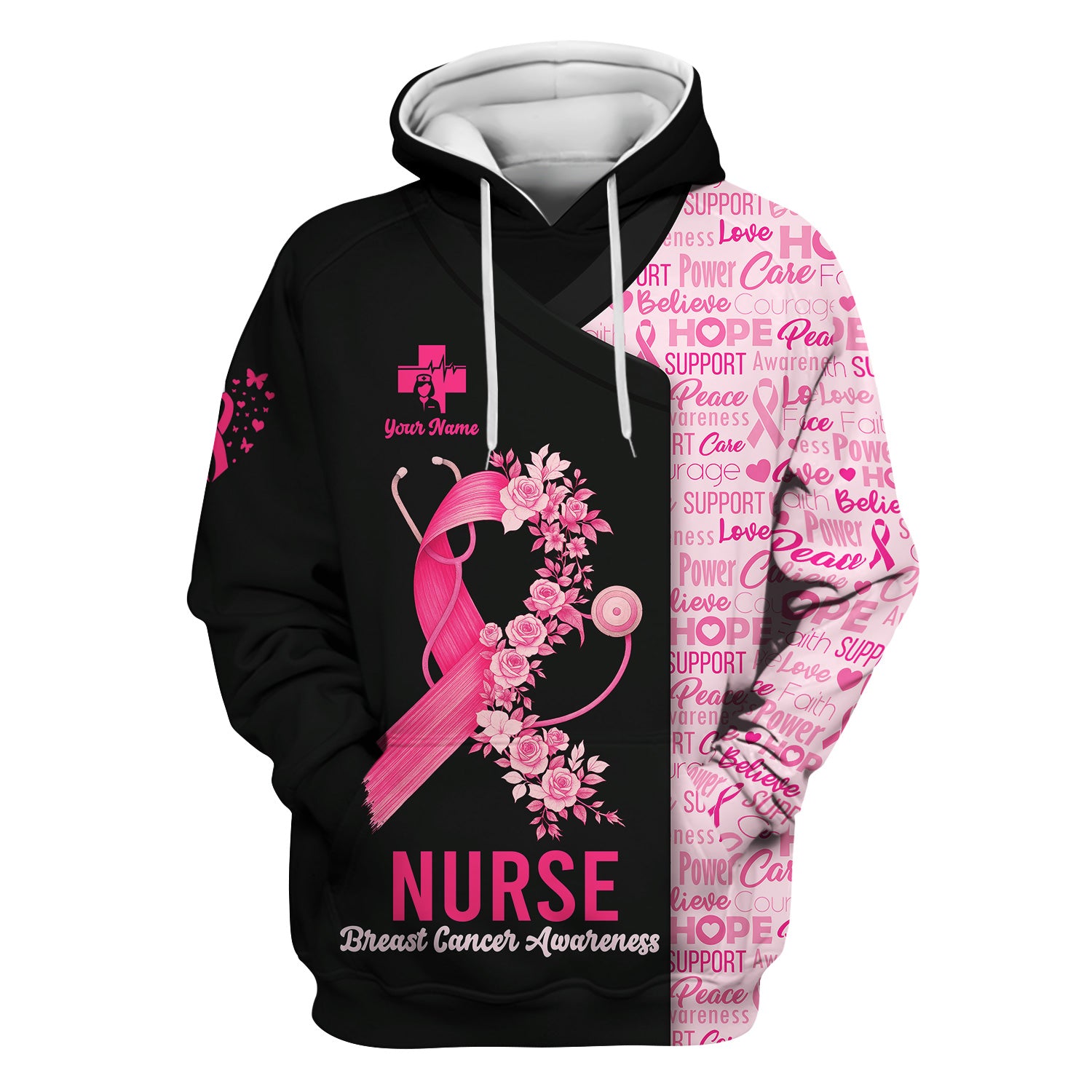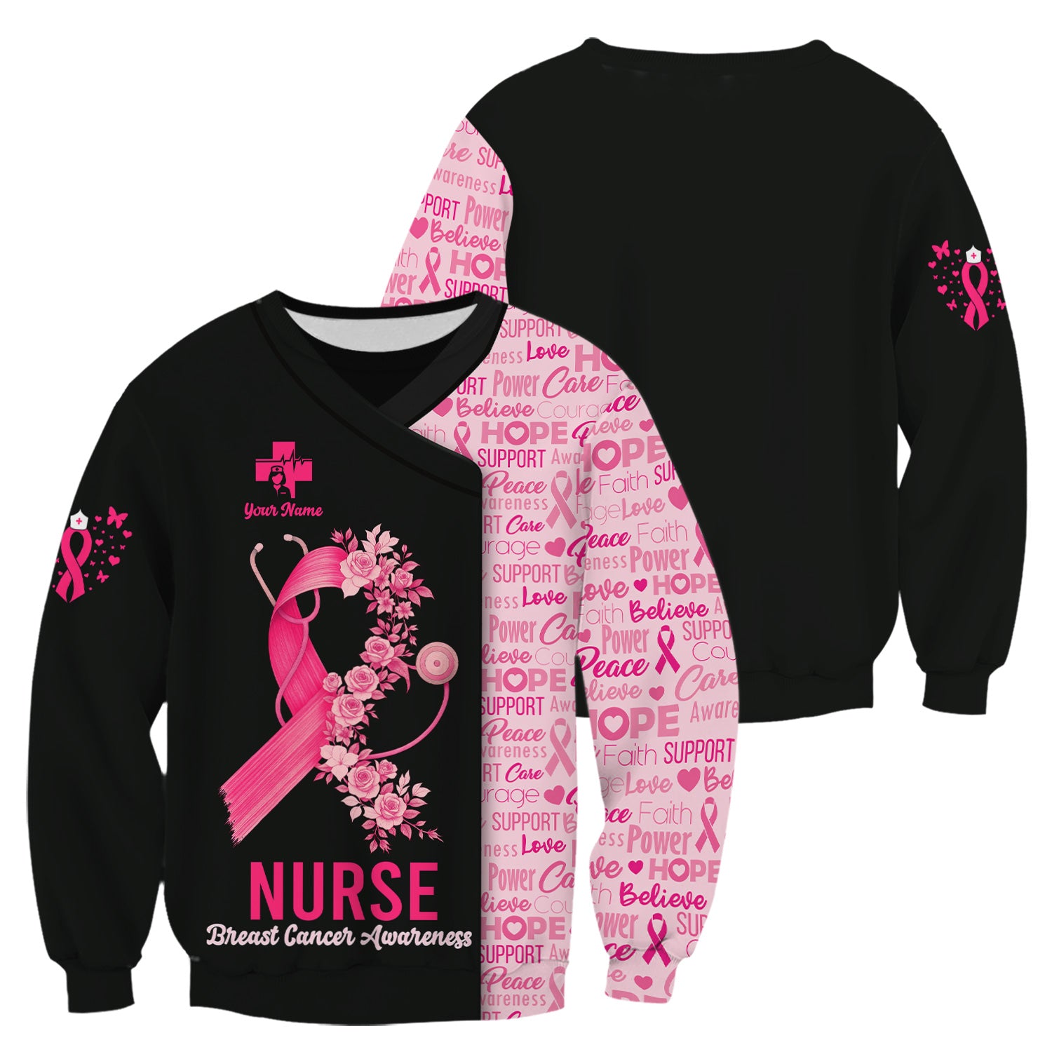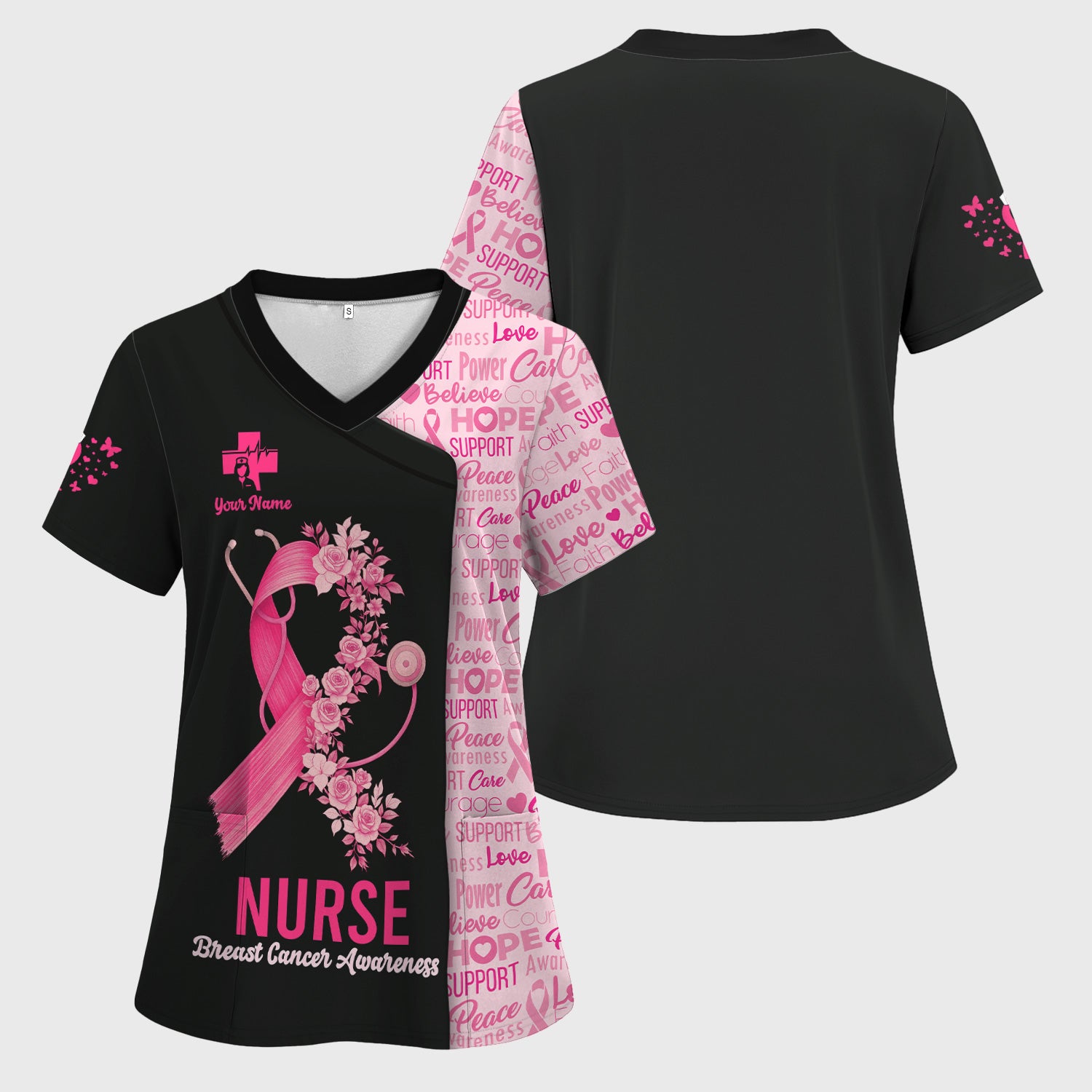 Custom Breast Cancer Awareness Nurse Shirt - Pink Ribbon Christian Faith Graphic Tee - Gift for CNA RN LPN