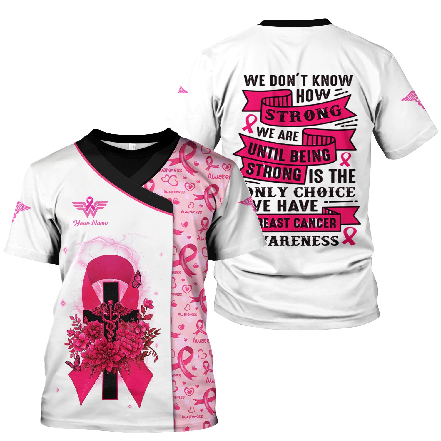 Custom Breast Cancer Warrior Shirt - Pink Ribbon Cross & Being Strong Is The Only Choice Tee - Gift for Women RN, LPN, CNA