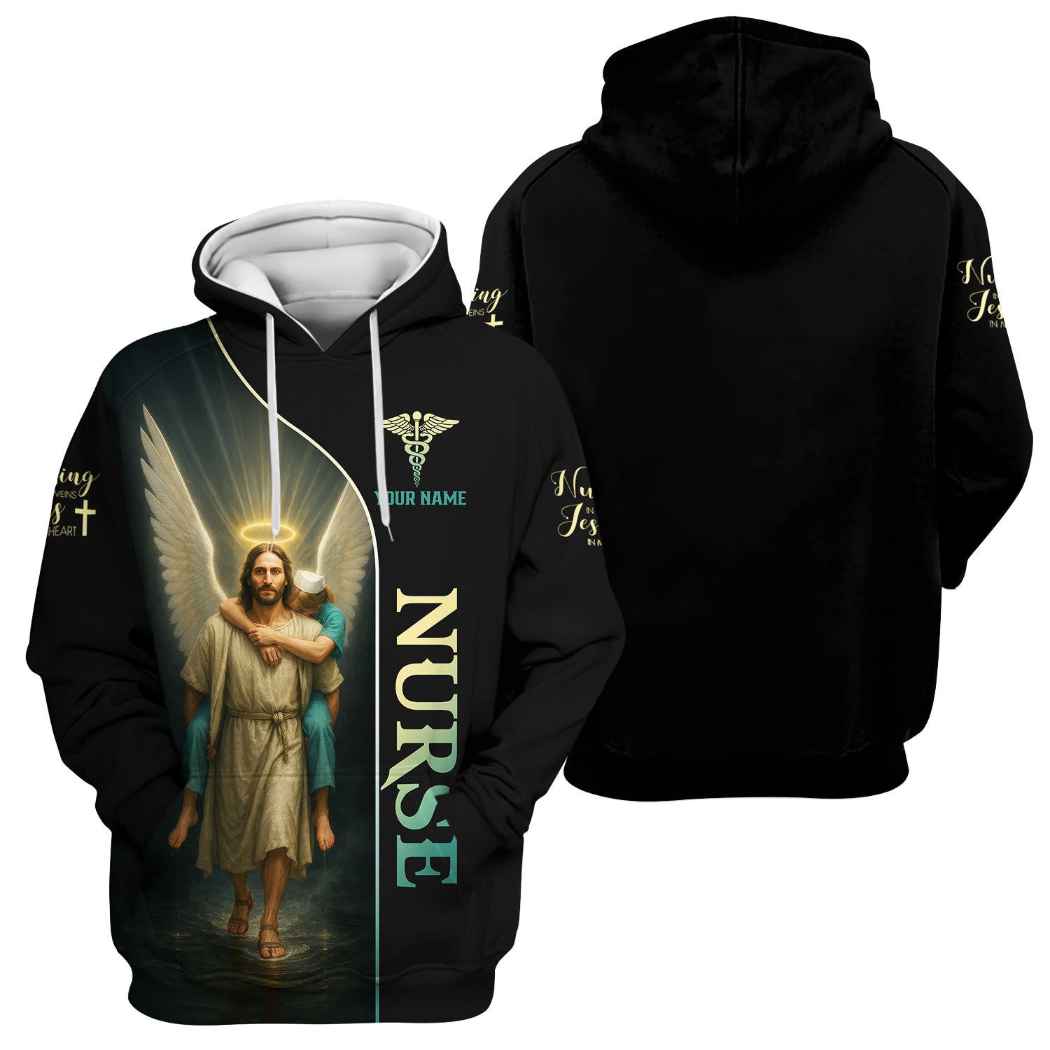 Custom Christian Nurse Scrub Top - Personalized Jesus Carrying Nurse Design - Gift for RN LPN Healthcare Workers