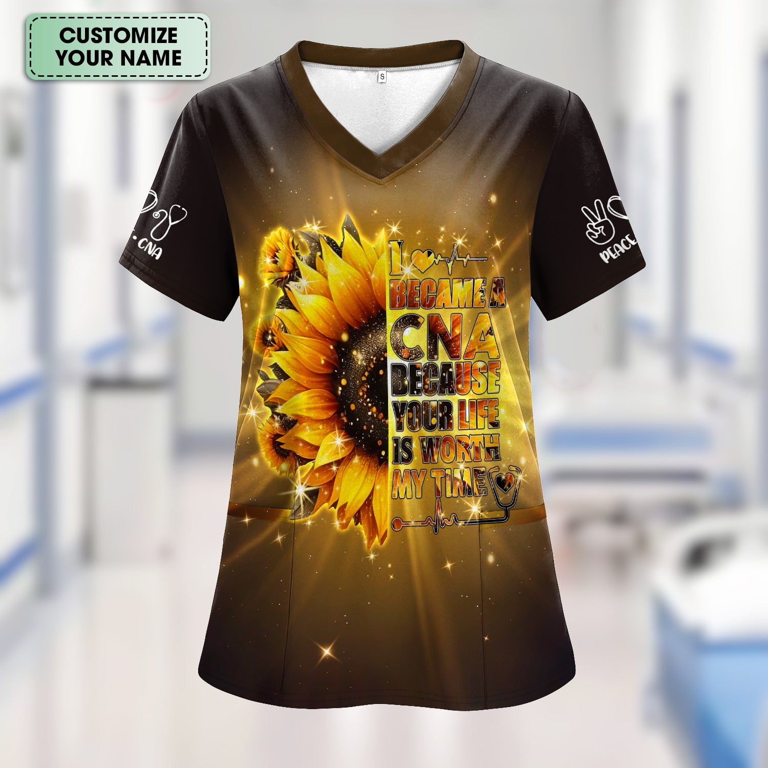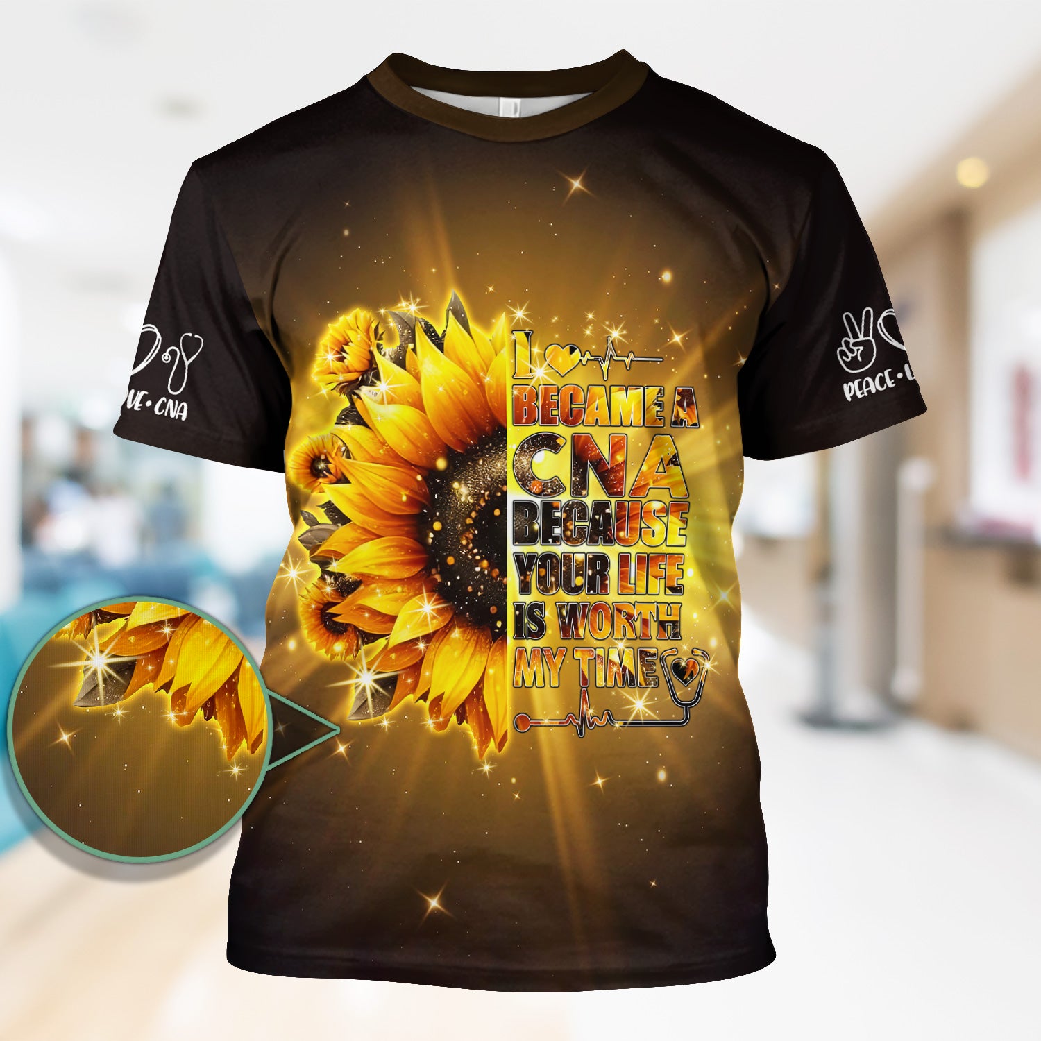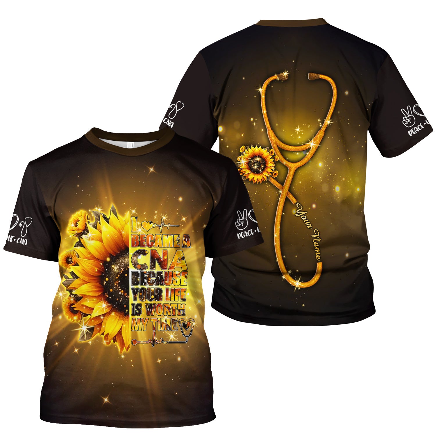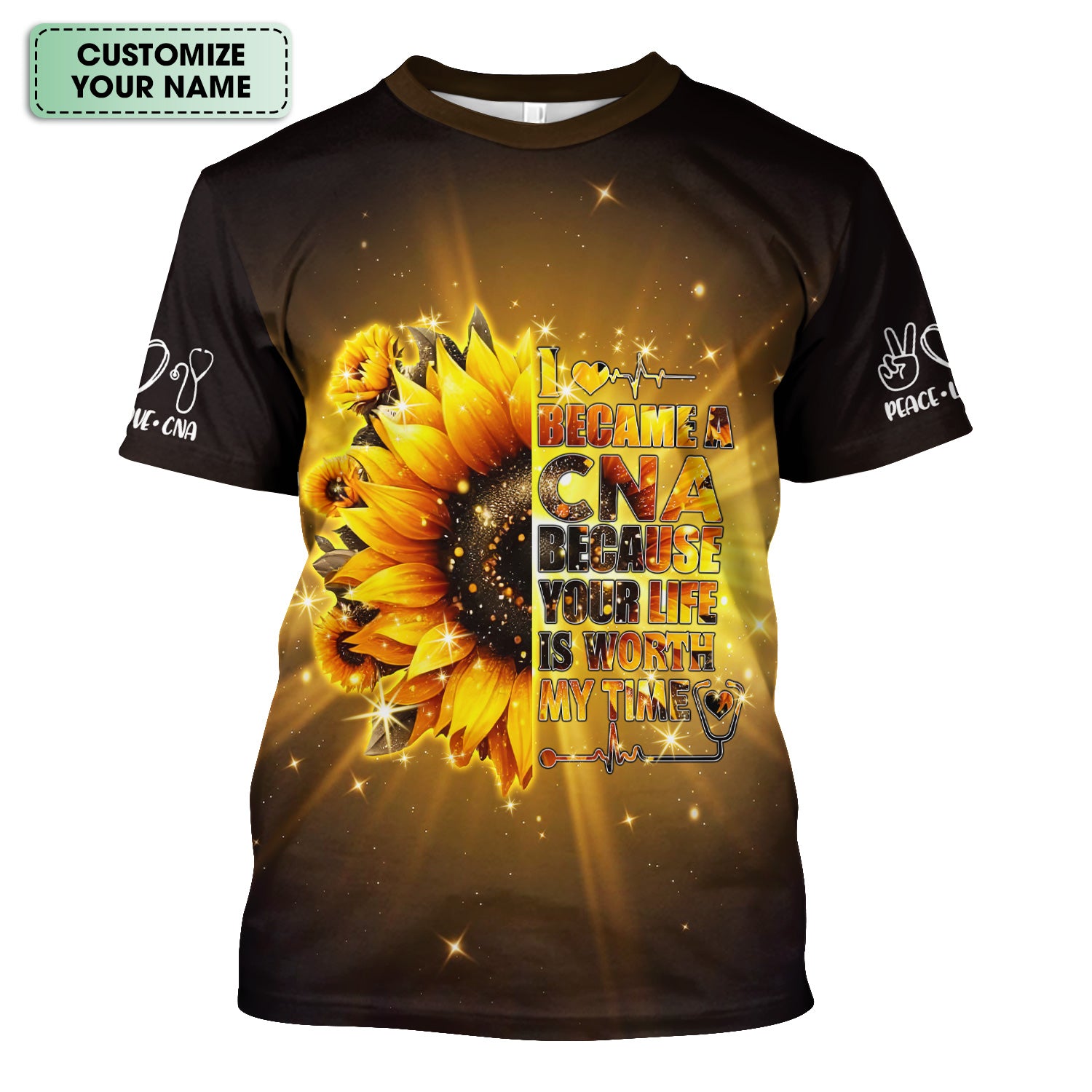 Custom CNA Floral T-Shirt - Your Life Is Worth My Time Design - Gift for Women's CNA & Nursing Assistants