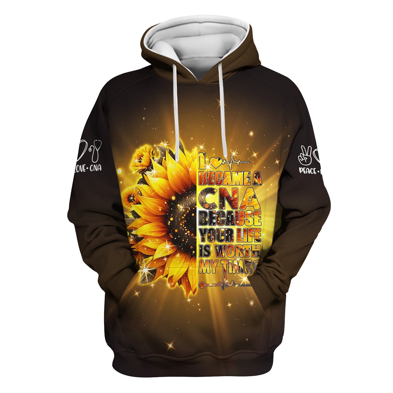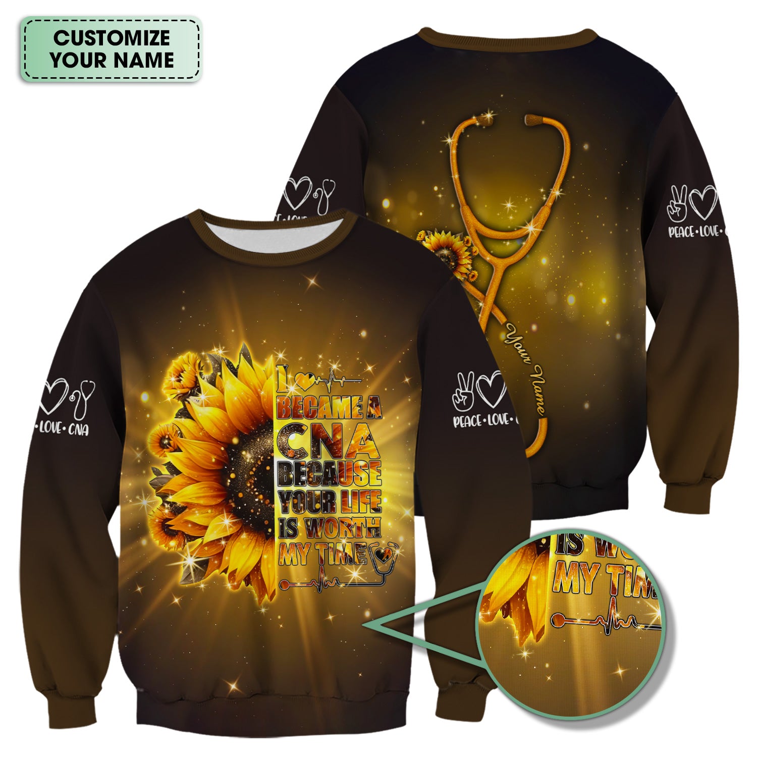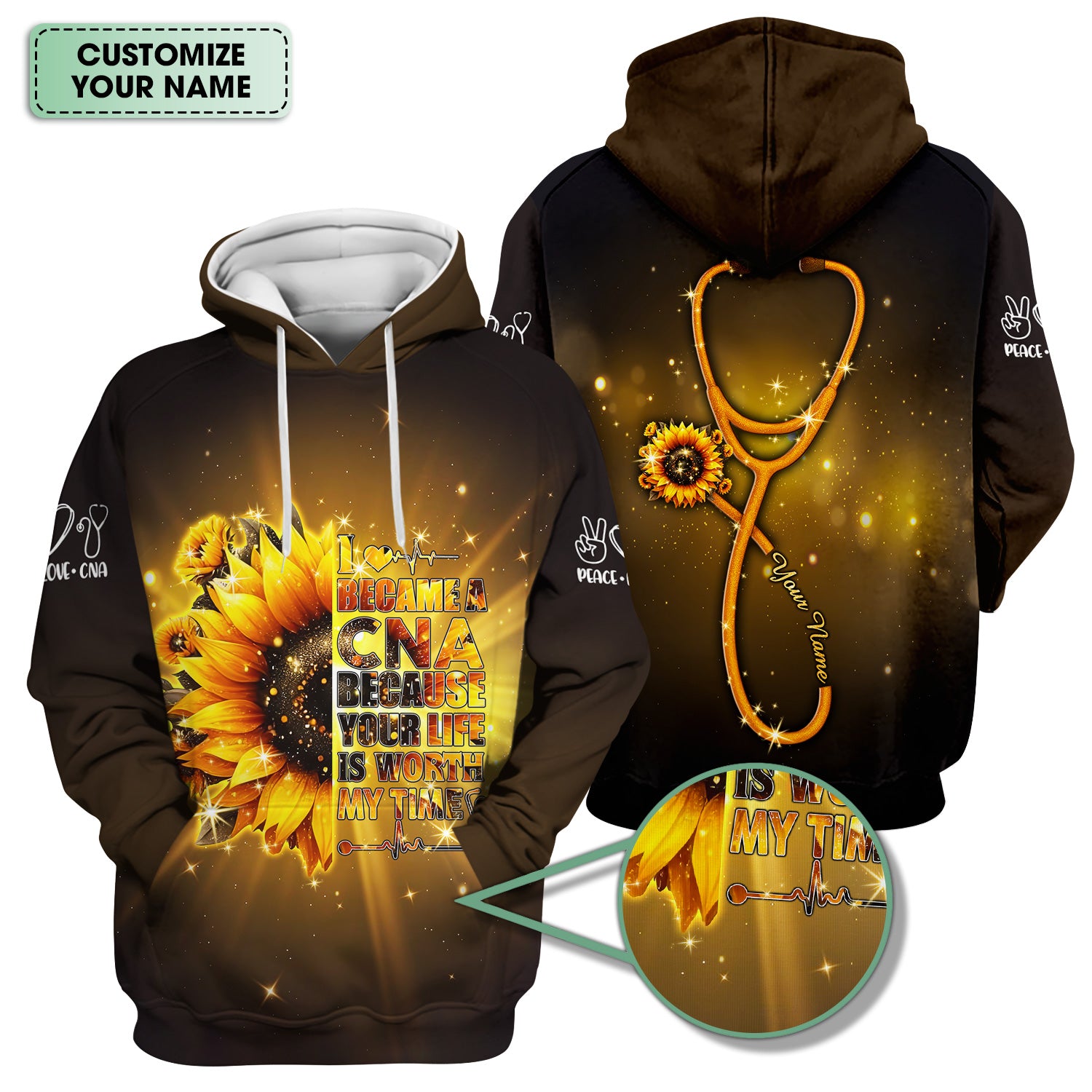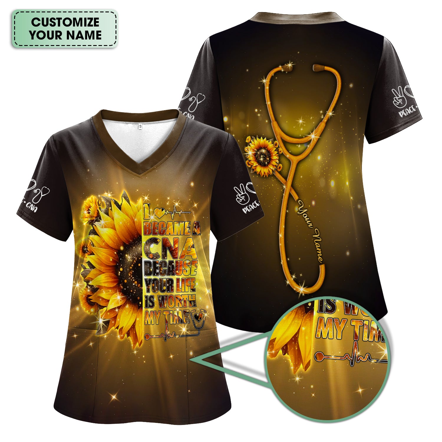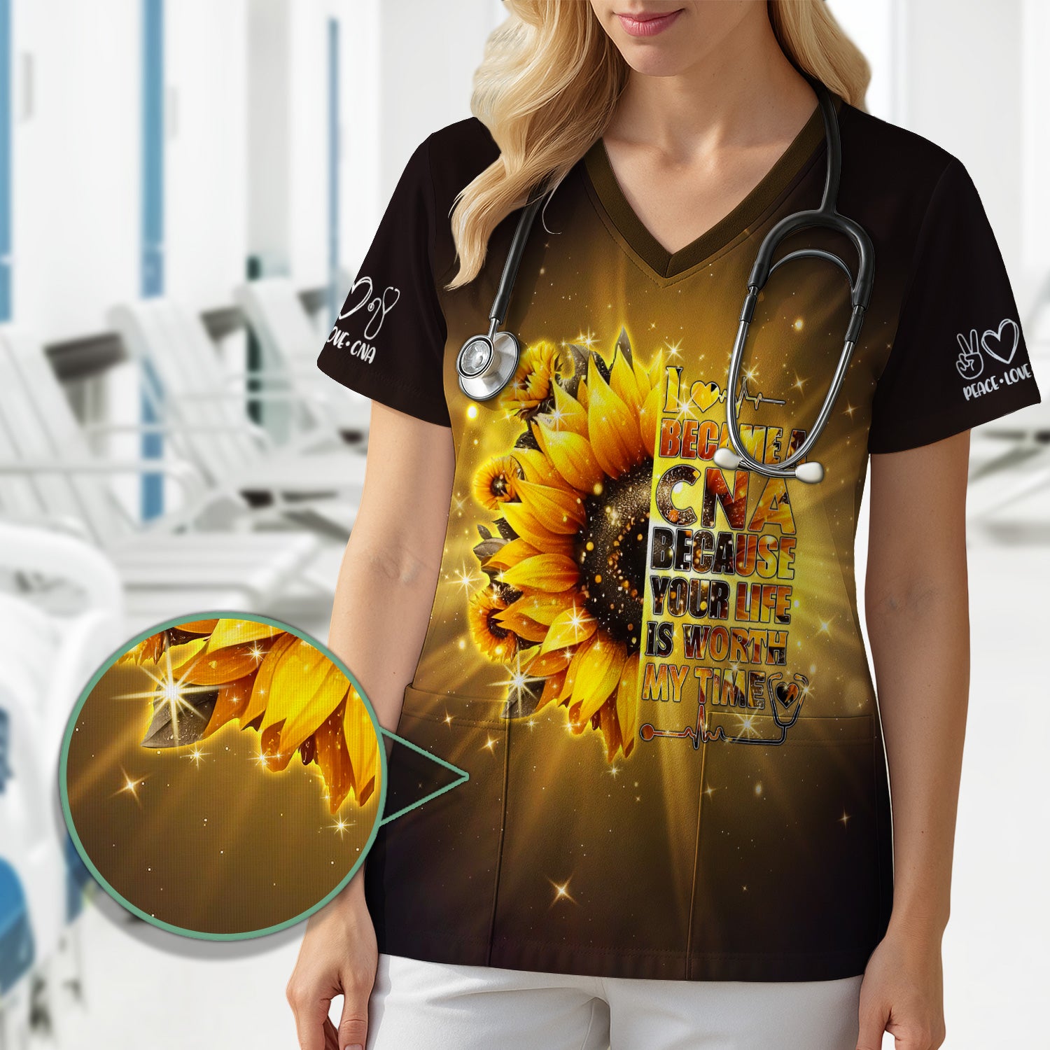 Custom CNA Floral T-Shirt - Your Life Is Worth My Time Design - Gift for Women's CNA & Nursing Assistants