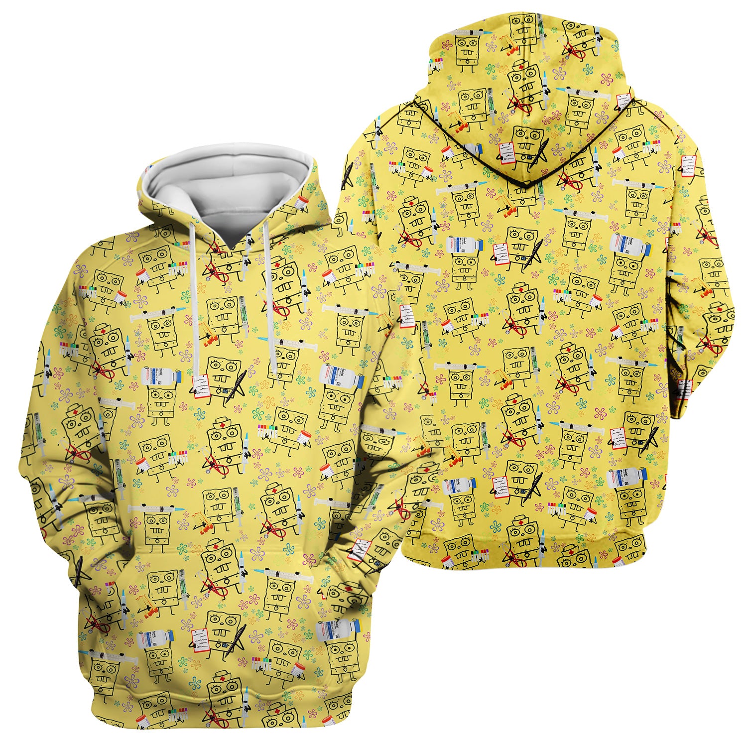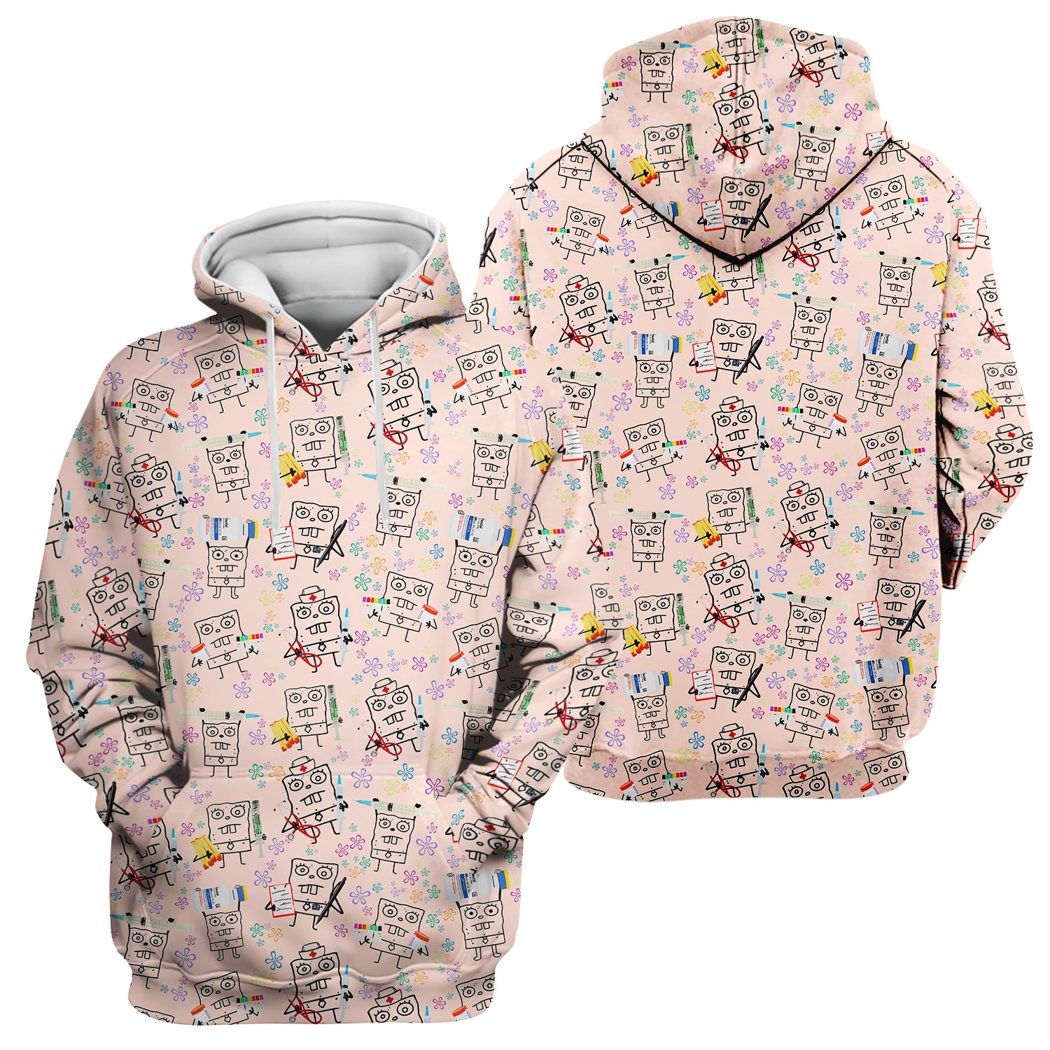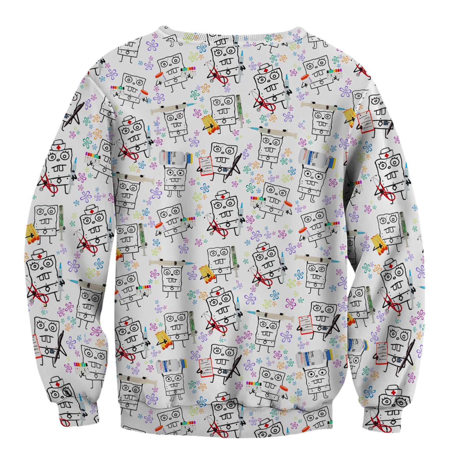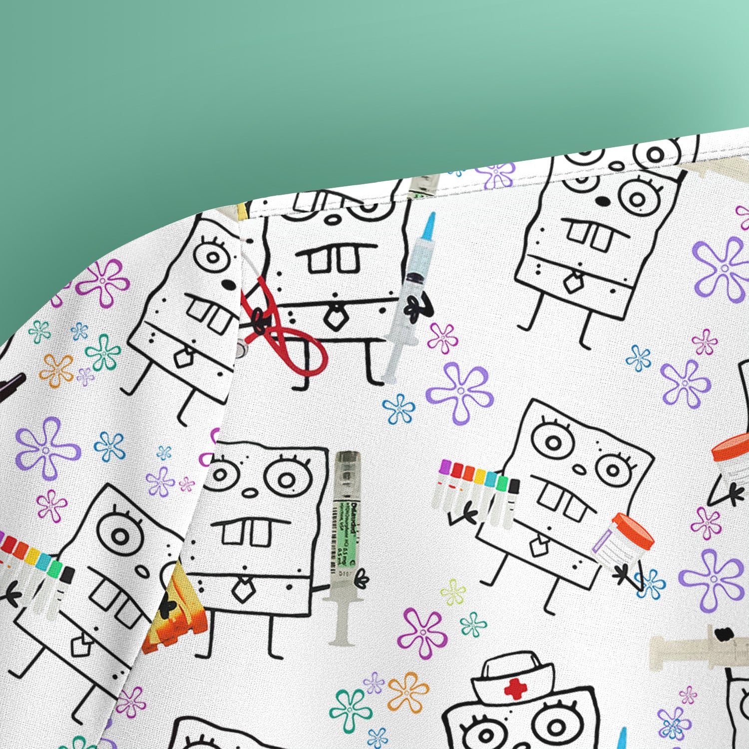 Custom Doodle Bob Energy Drink Nurse Scrub Top - Funny Cartoon Medical Design - Gift for RN MD RT CNA Paramedic Healthcare Staff