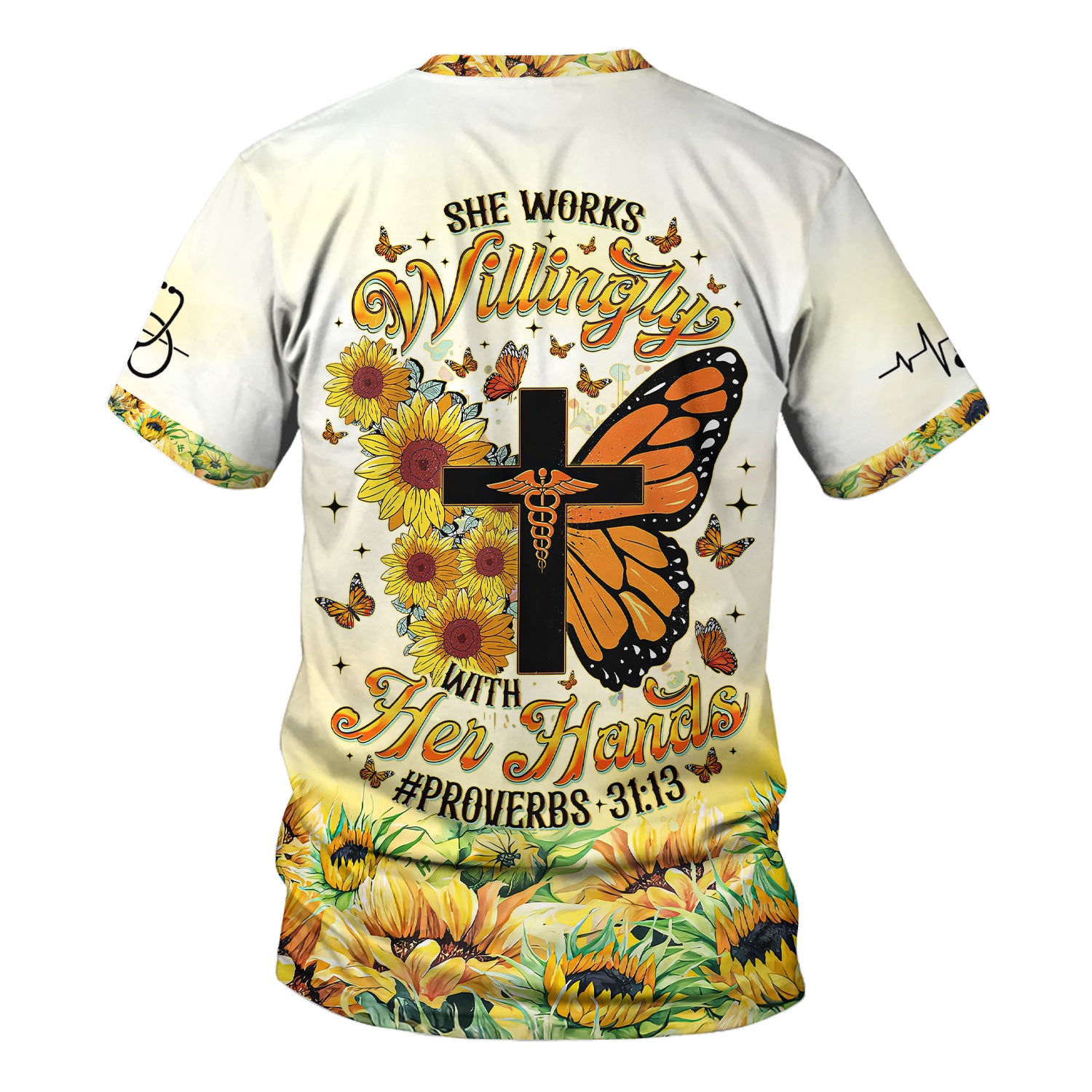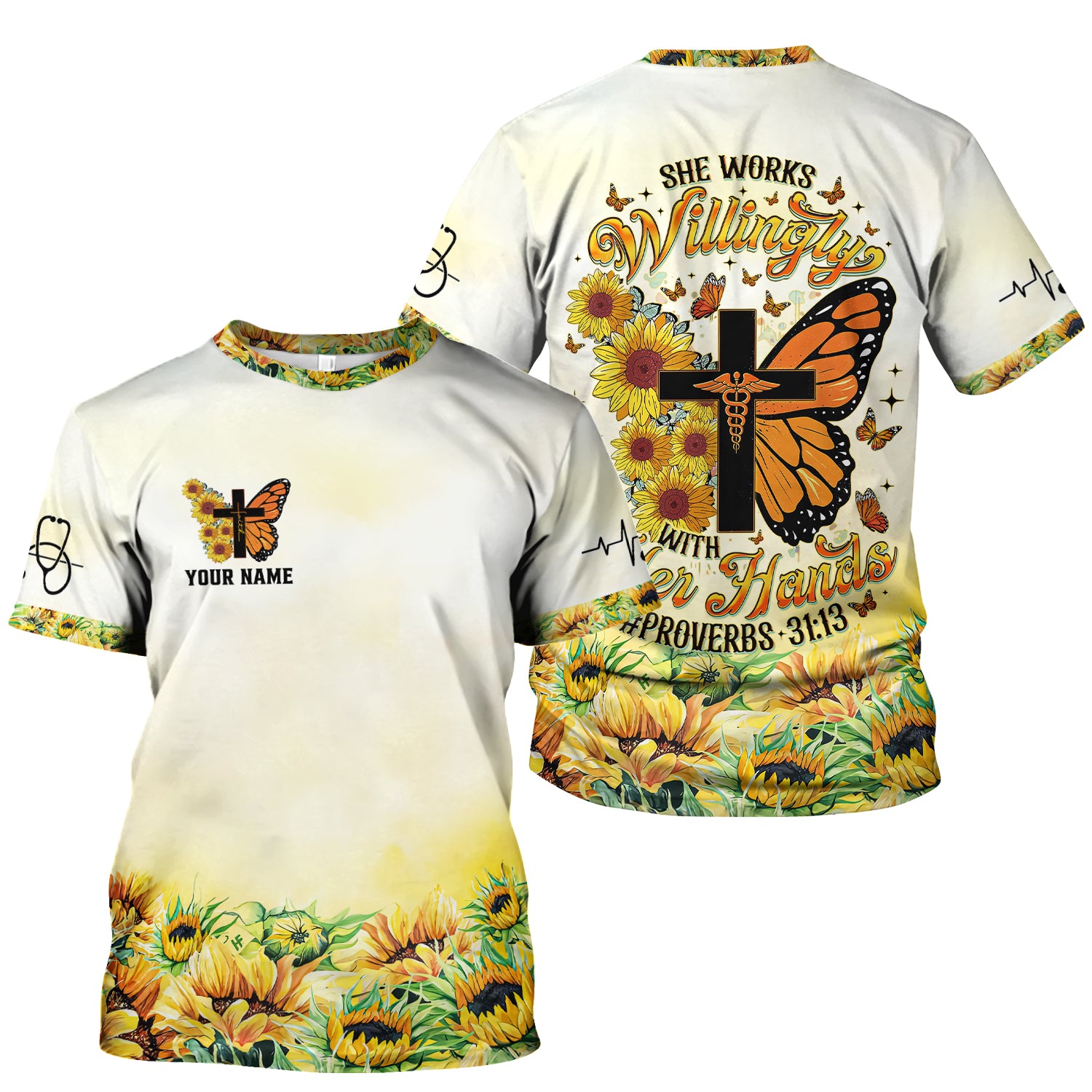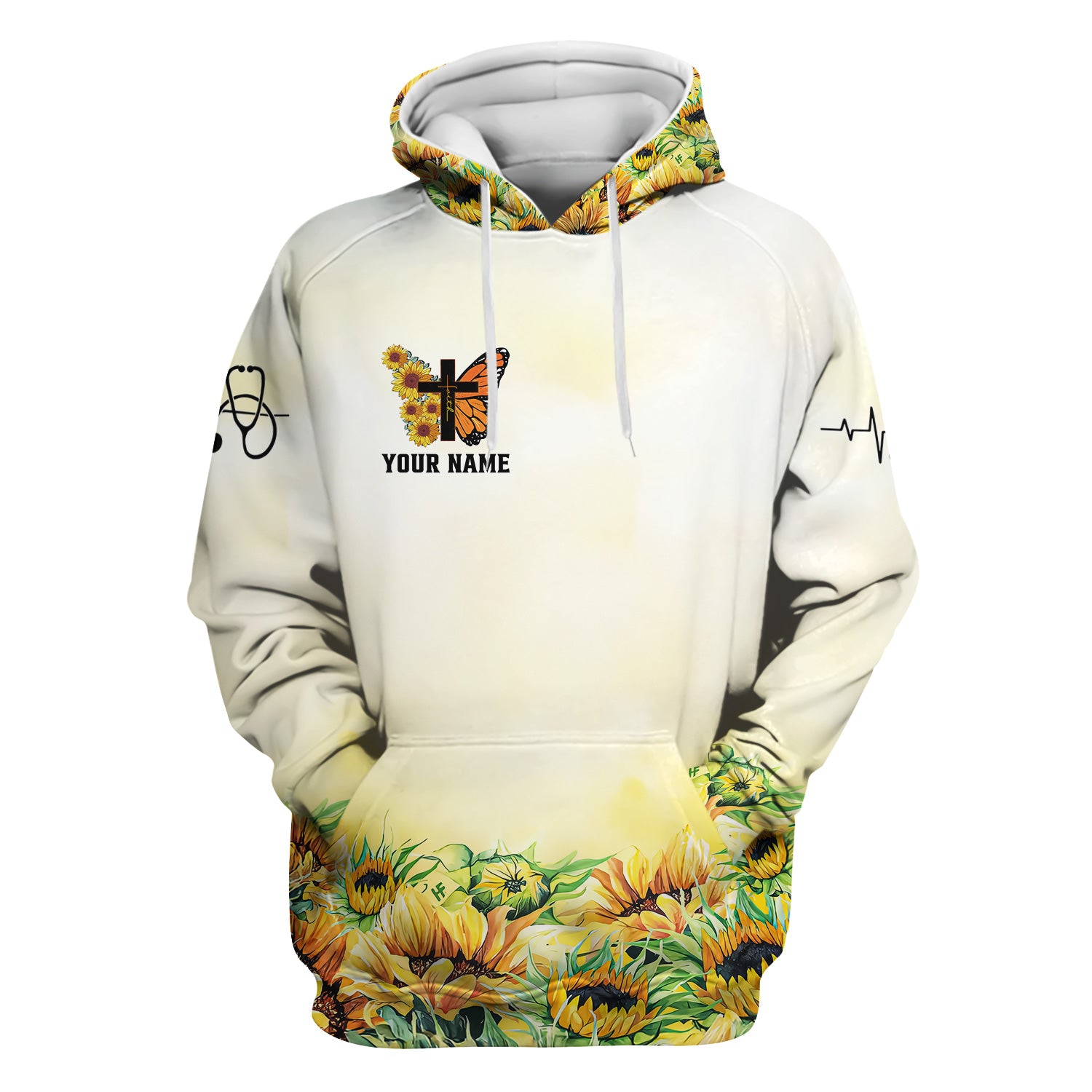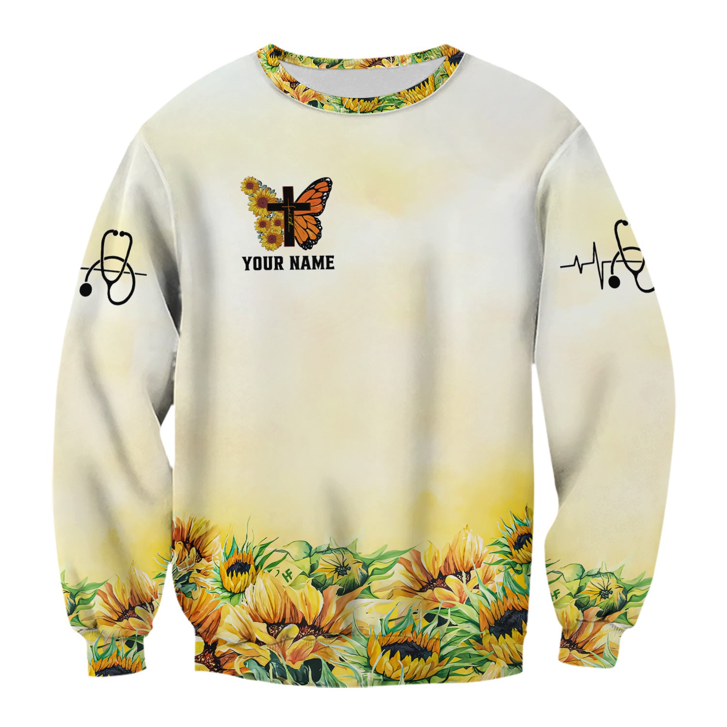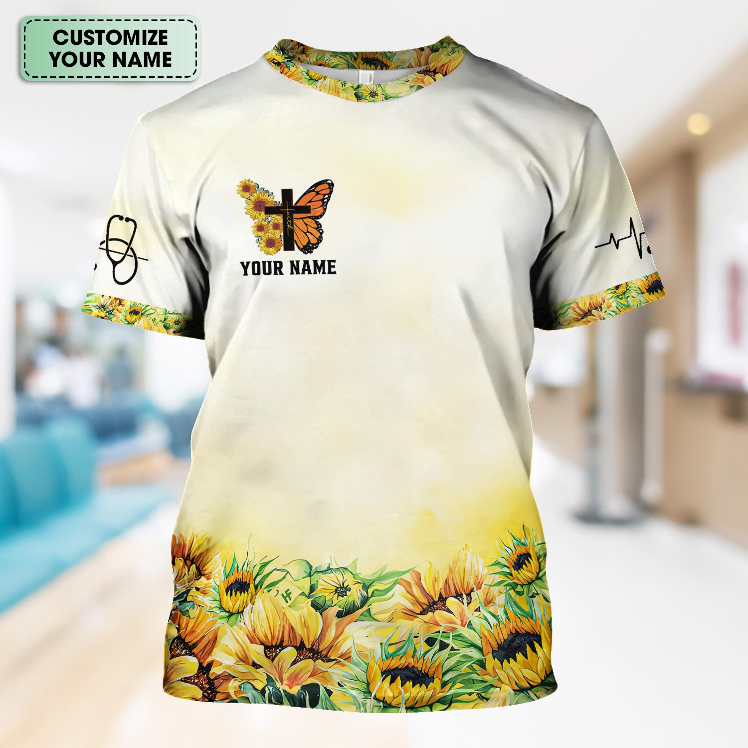 Custom Faith Nurse Shirt ‰ÛÒ Sunflower Butterfly Cross & Bible Verse Graphic Tee - Gift for RN LPN CNA Healthcare Workers