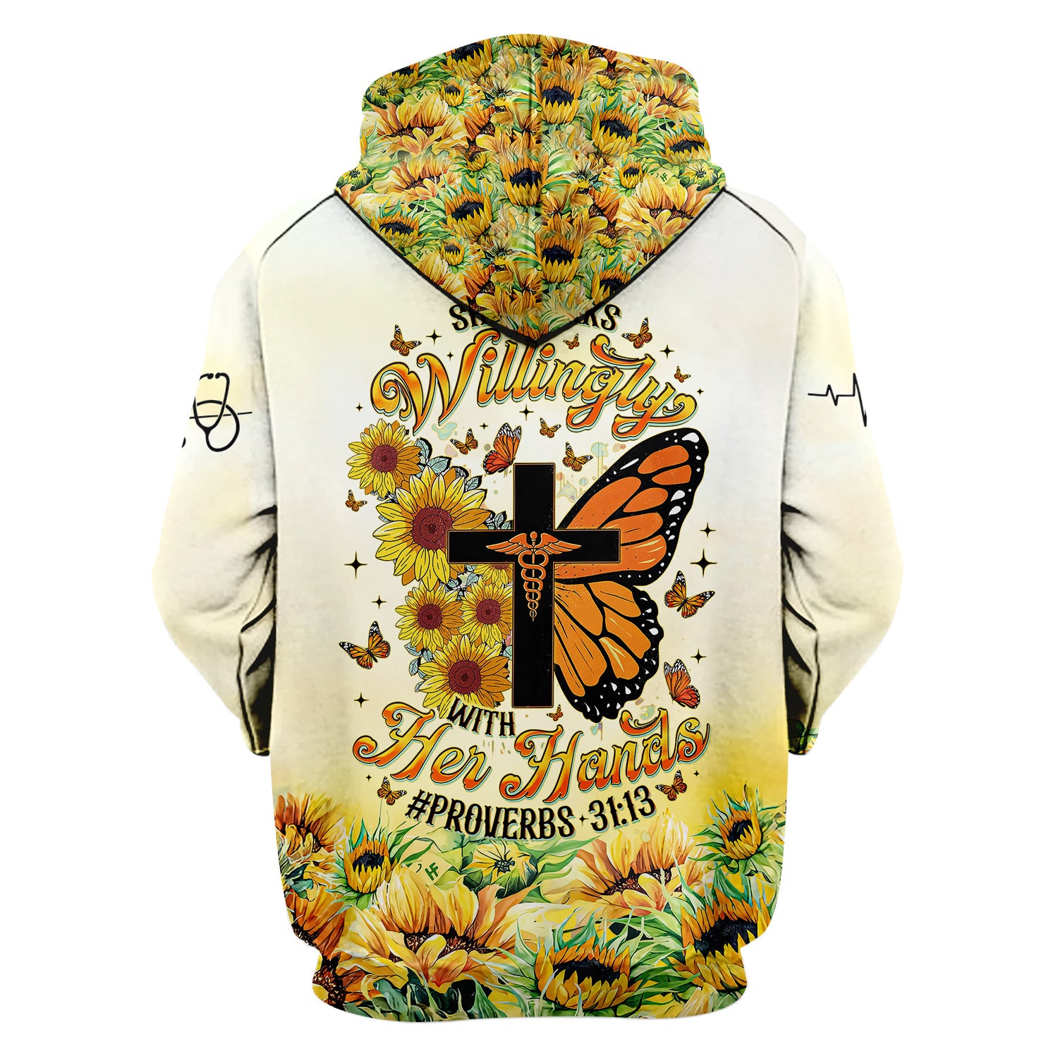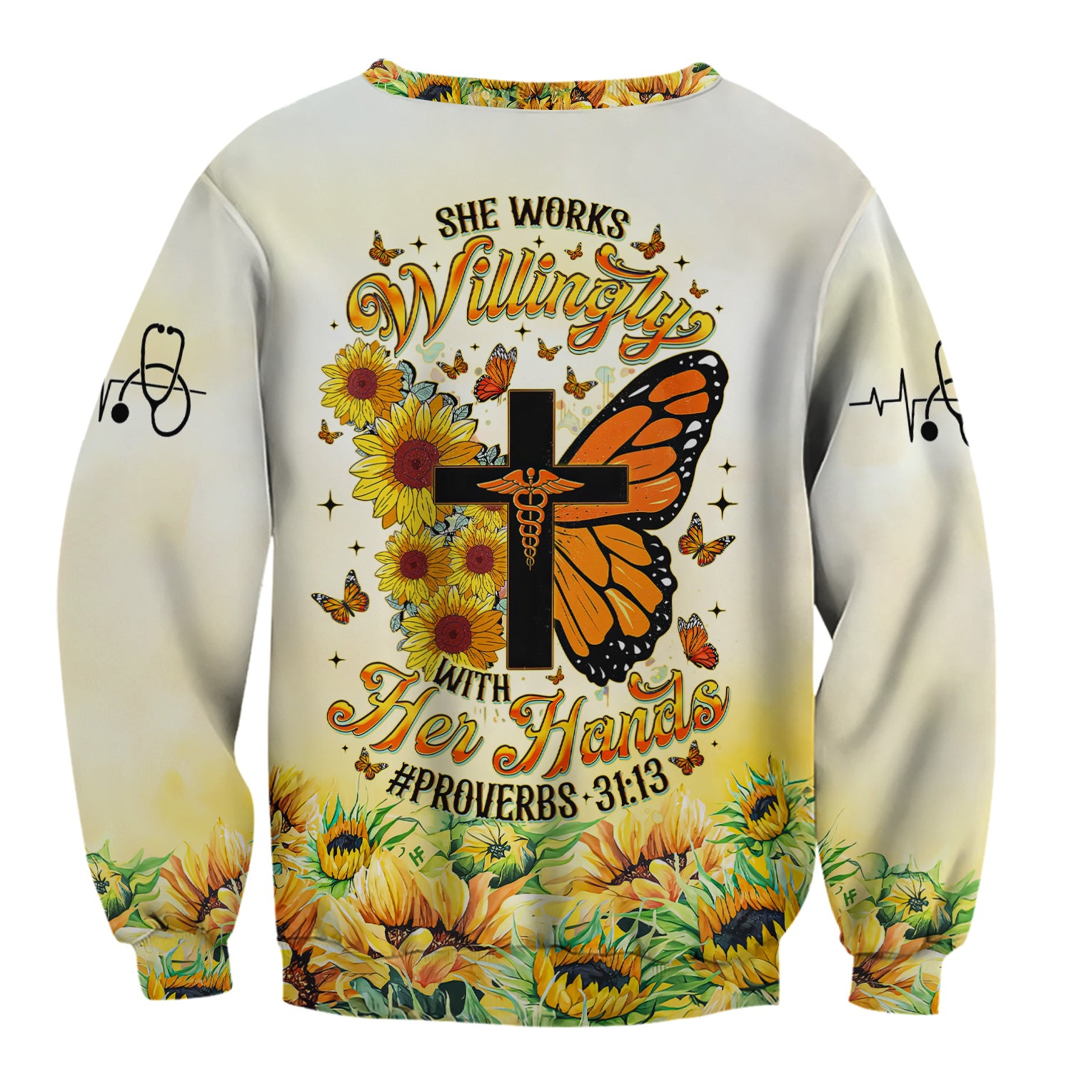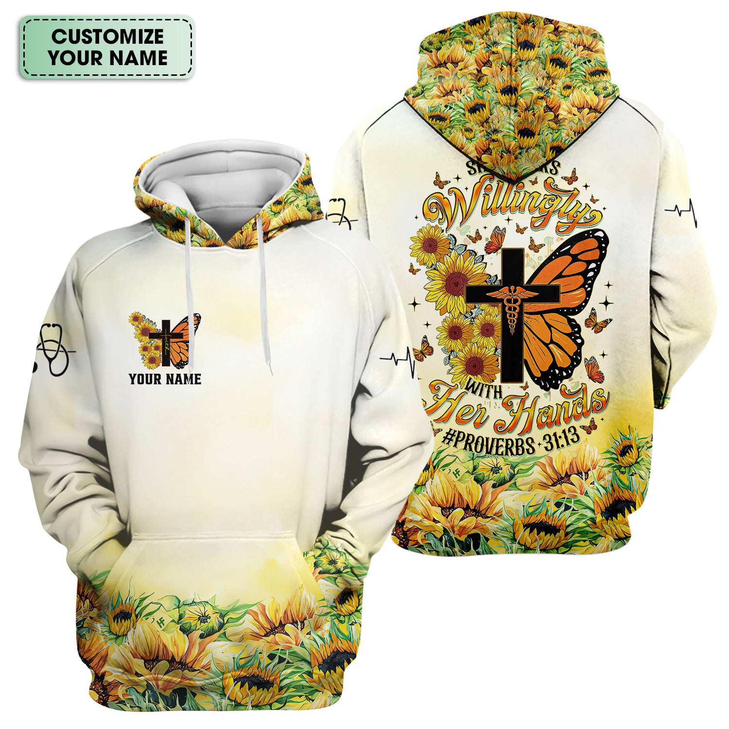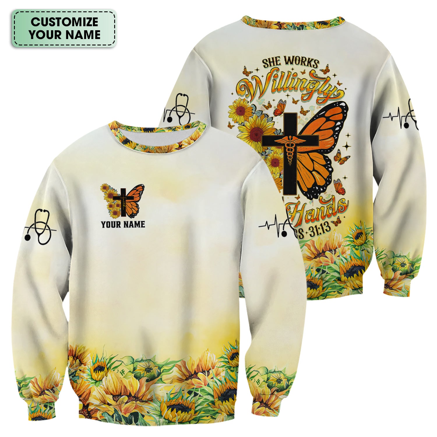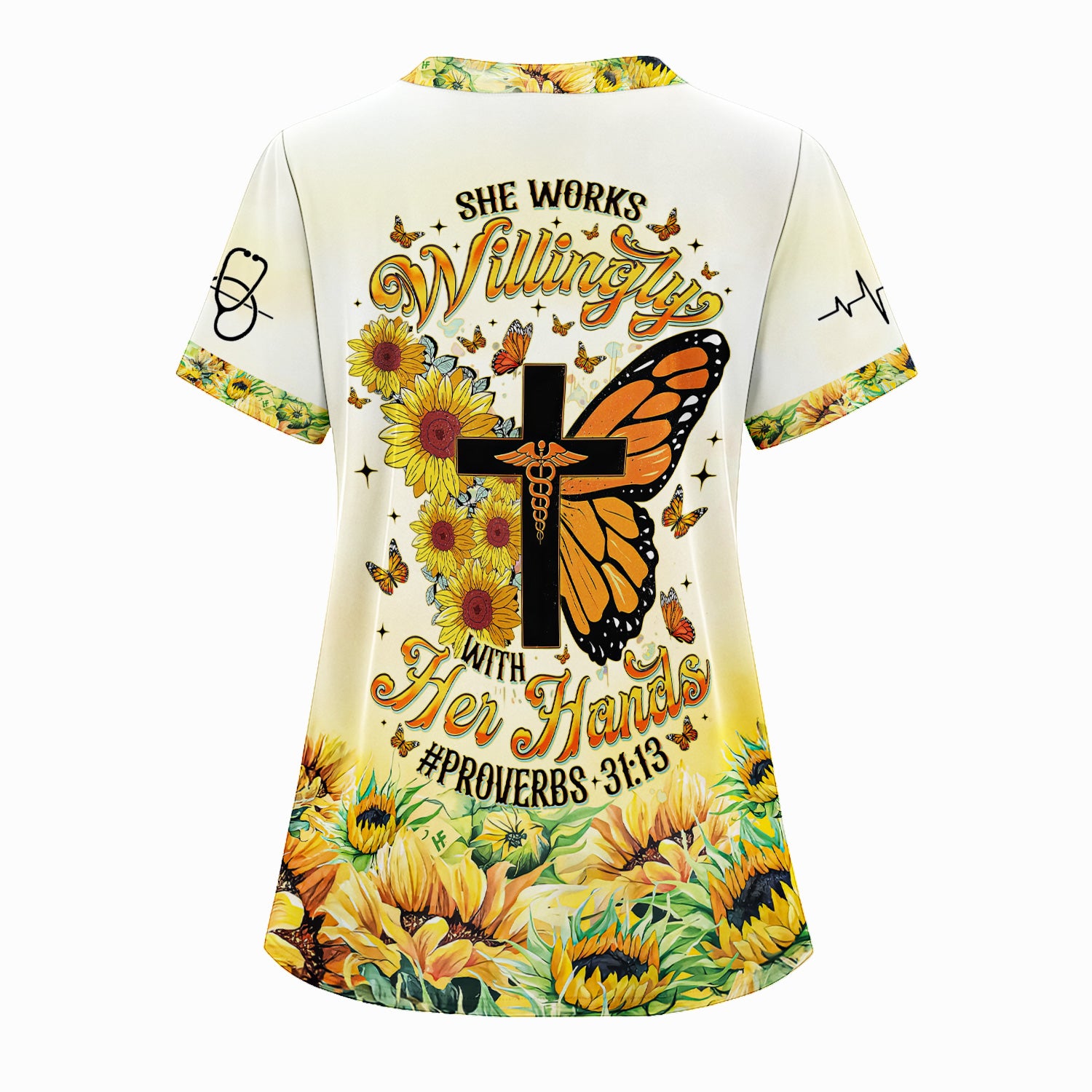 Custom Faith Nurse Shirt ‰ÛÒ Sunflower Butterfly Cross & Bible Verse Graphic Tee - Gift for RN LPN CNA Healthcare Workers