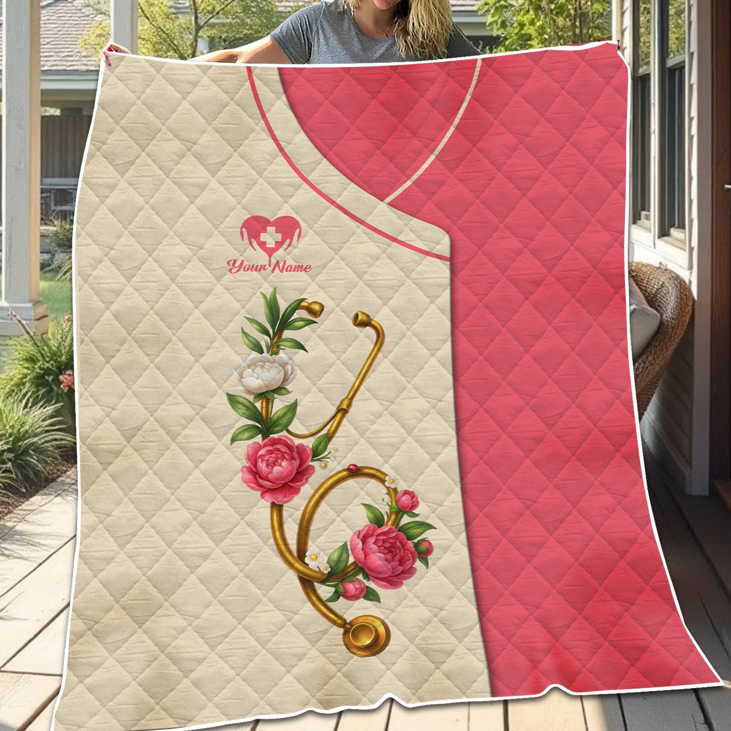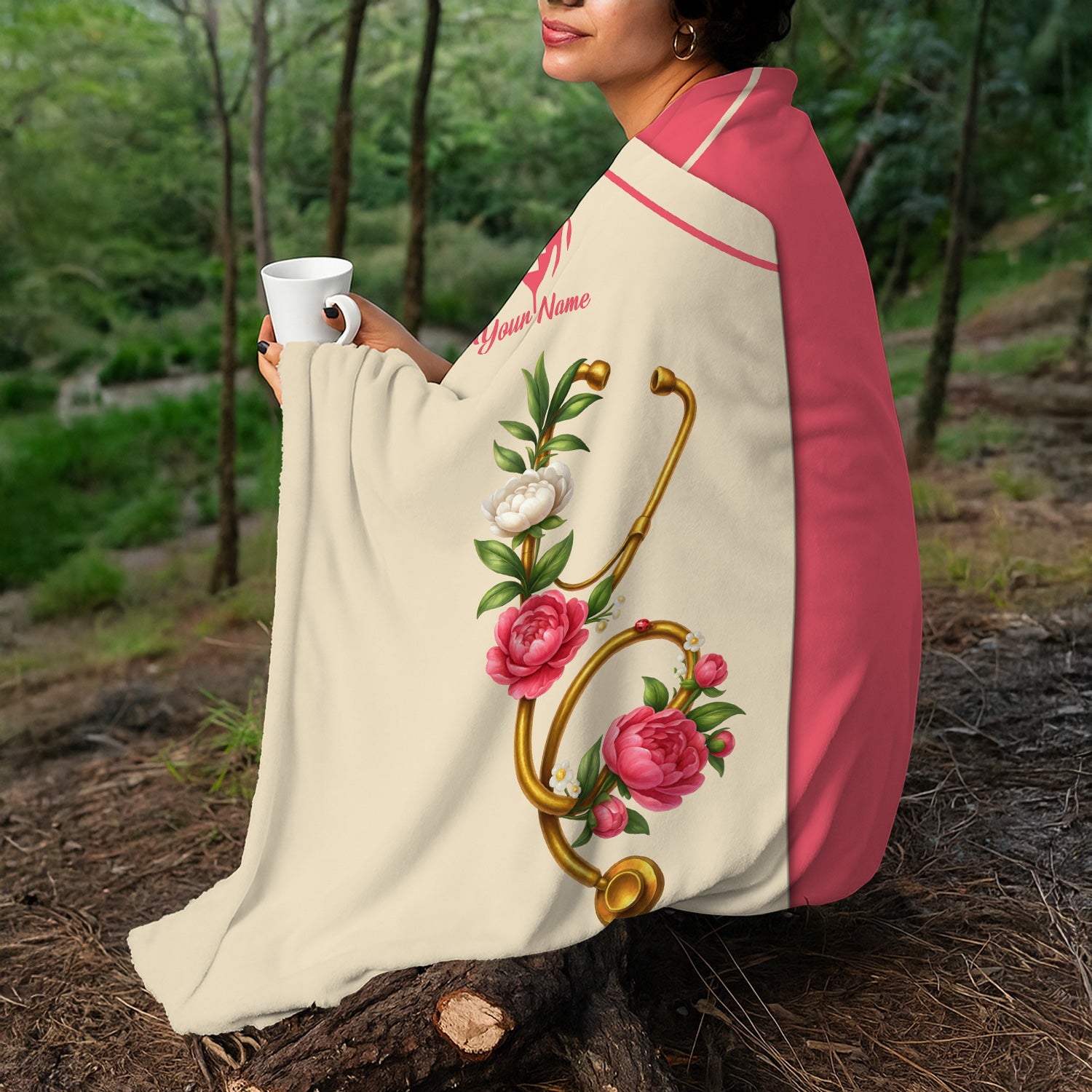 Custom Floral Blanket for Nurses - Peonies Flower and Stethoscope Design - Medical Gift for RN, LPN, CNA