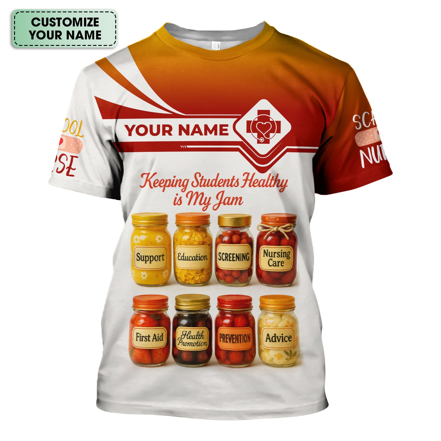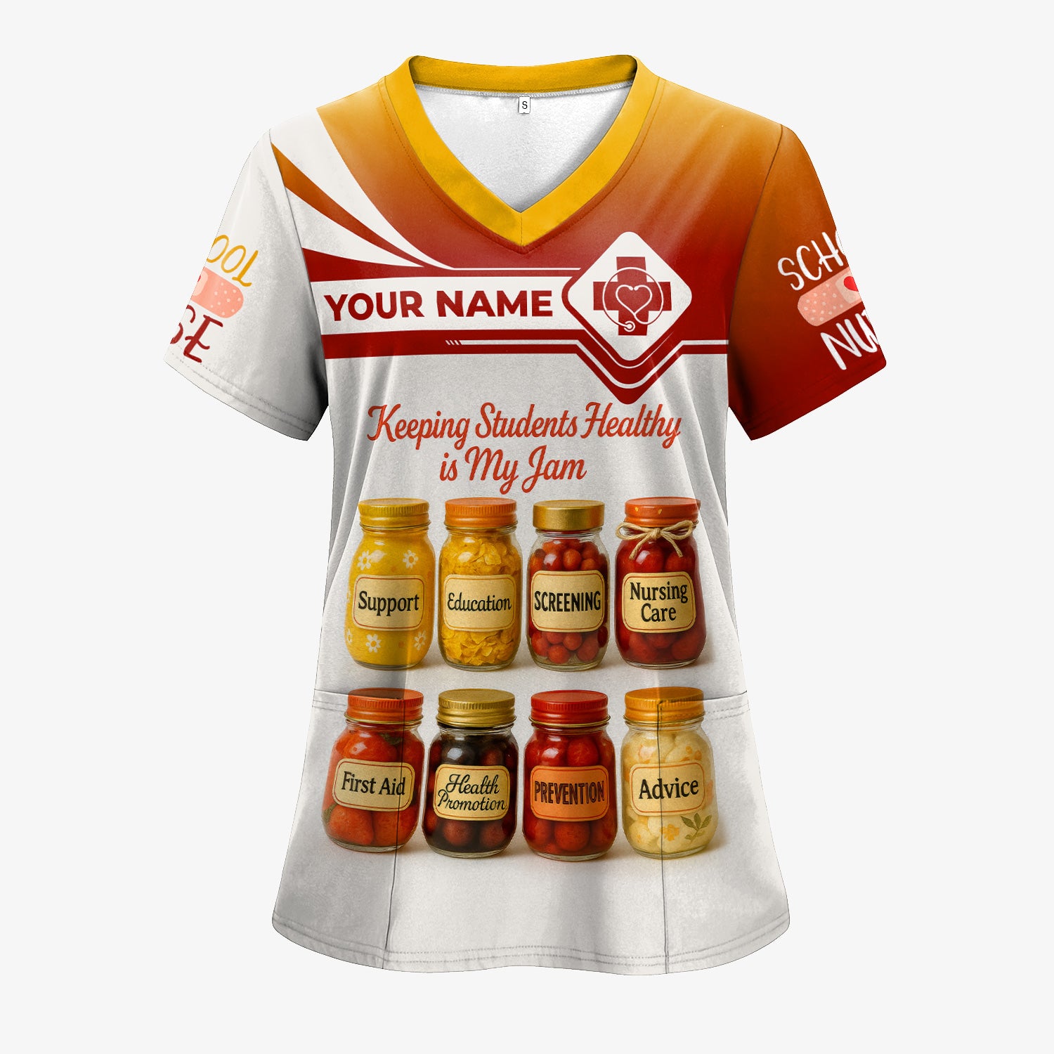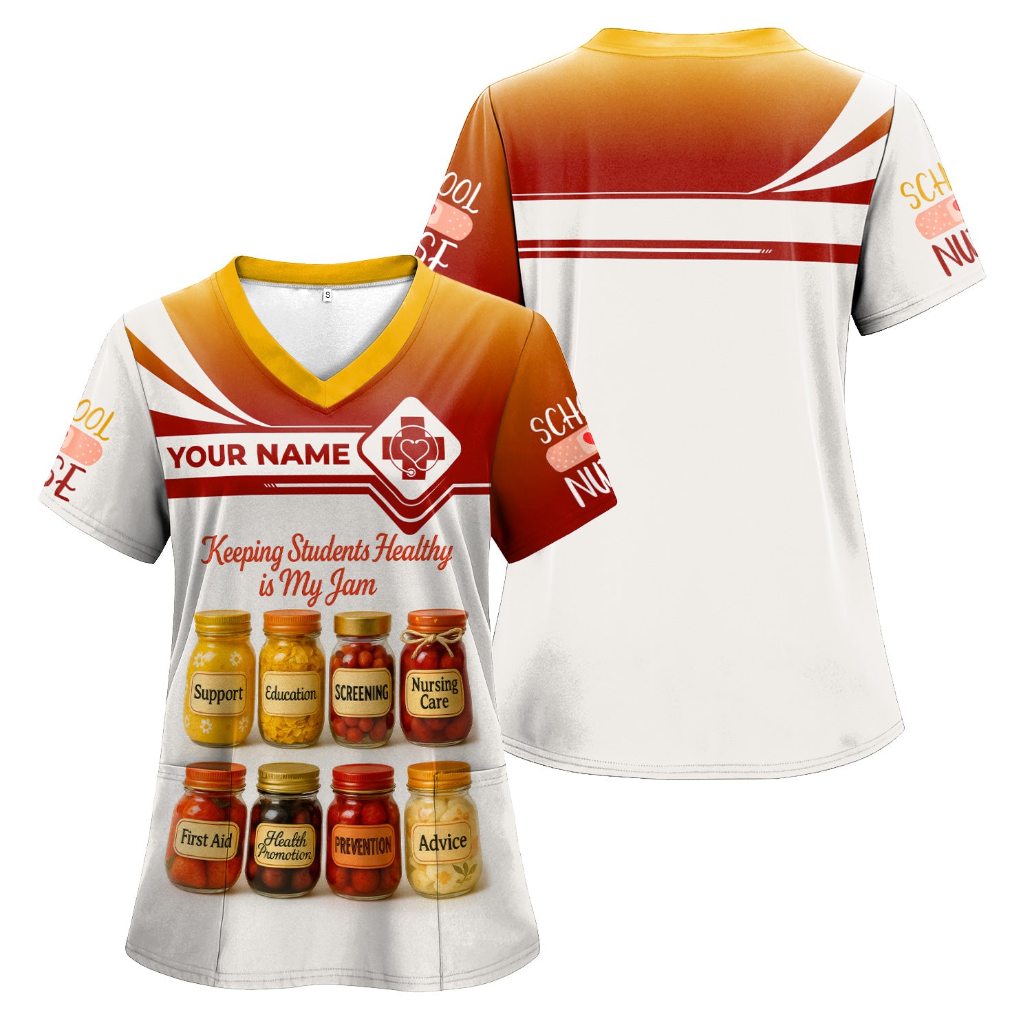 Custom Funny School Nurse Scrub - My Jam Jar Design with Custom Name - Back to School Nurse Gift for Women, RN, LPN