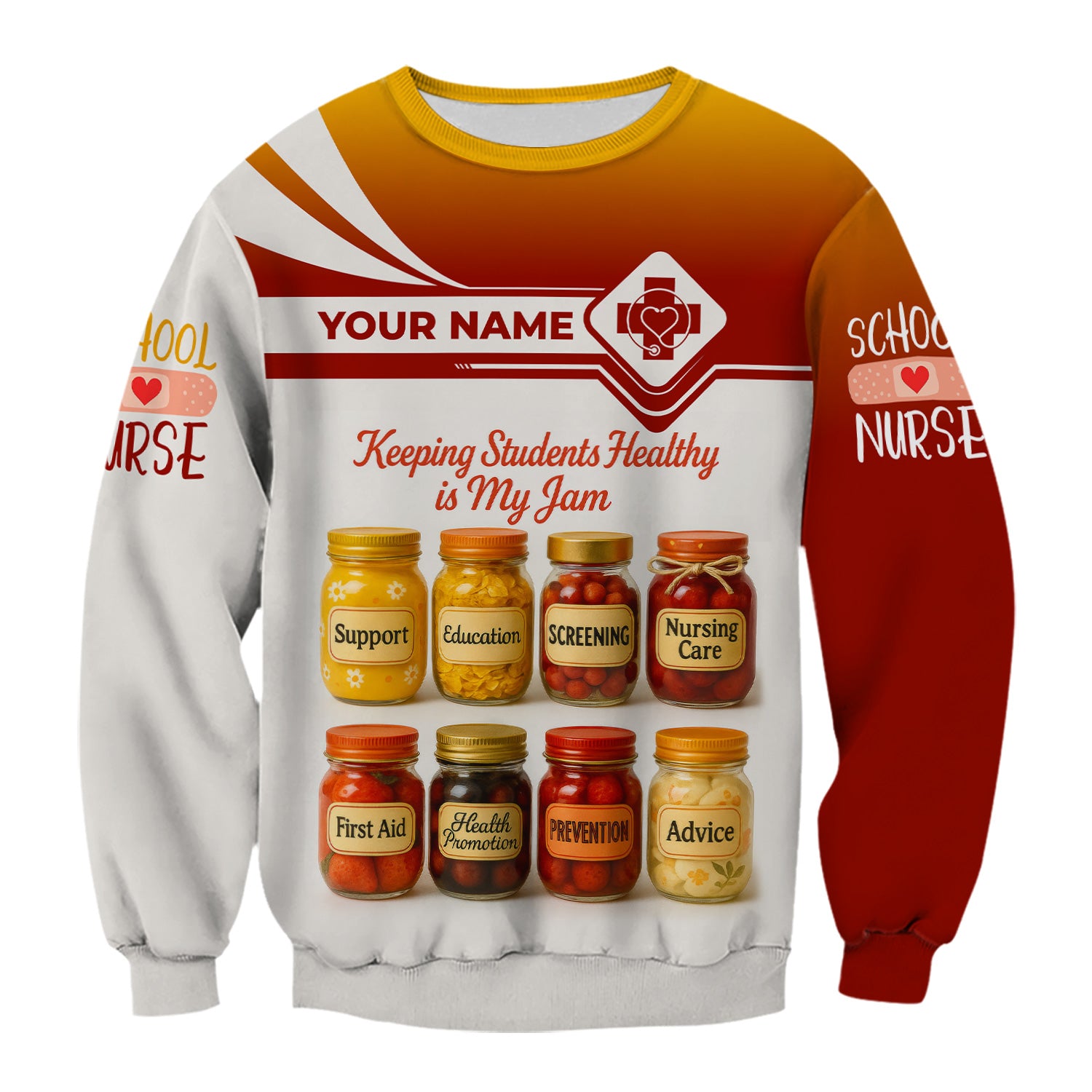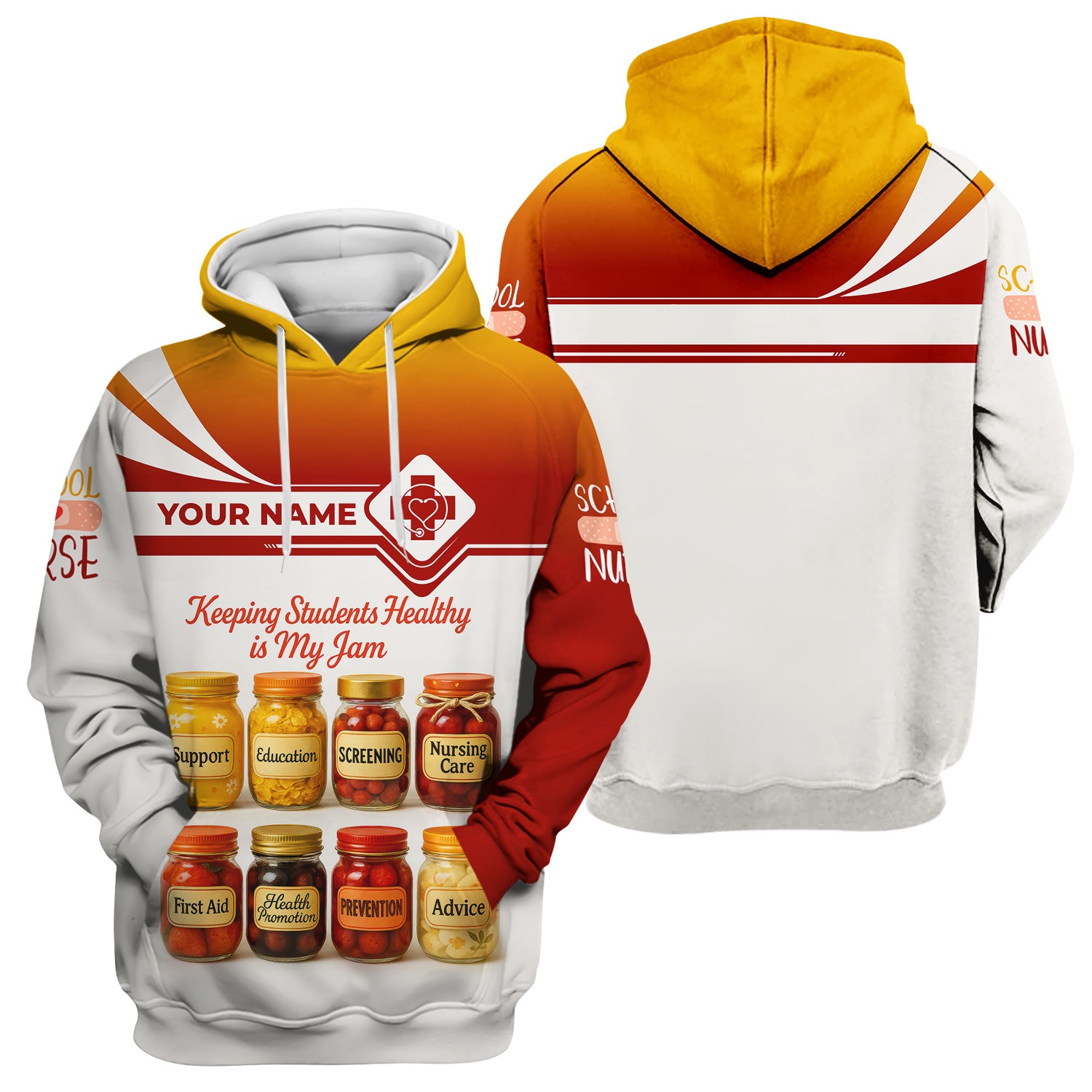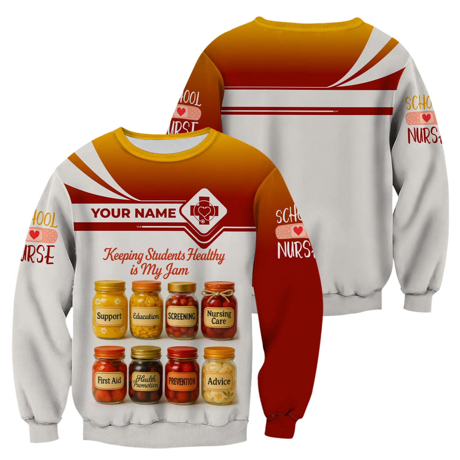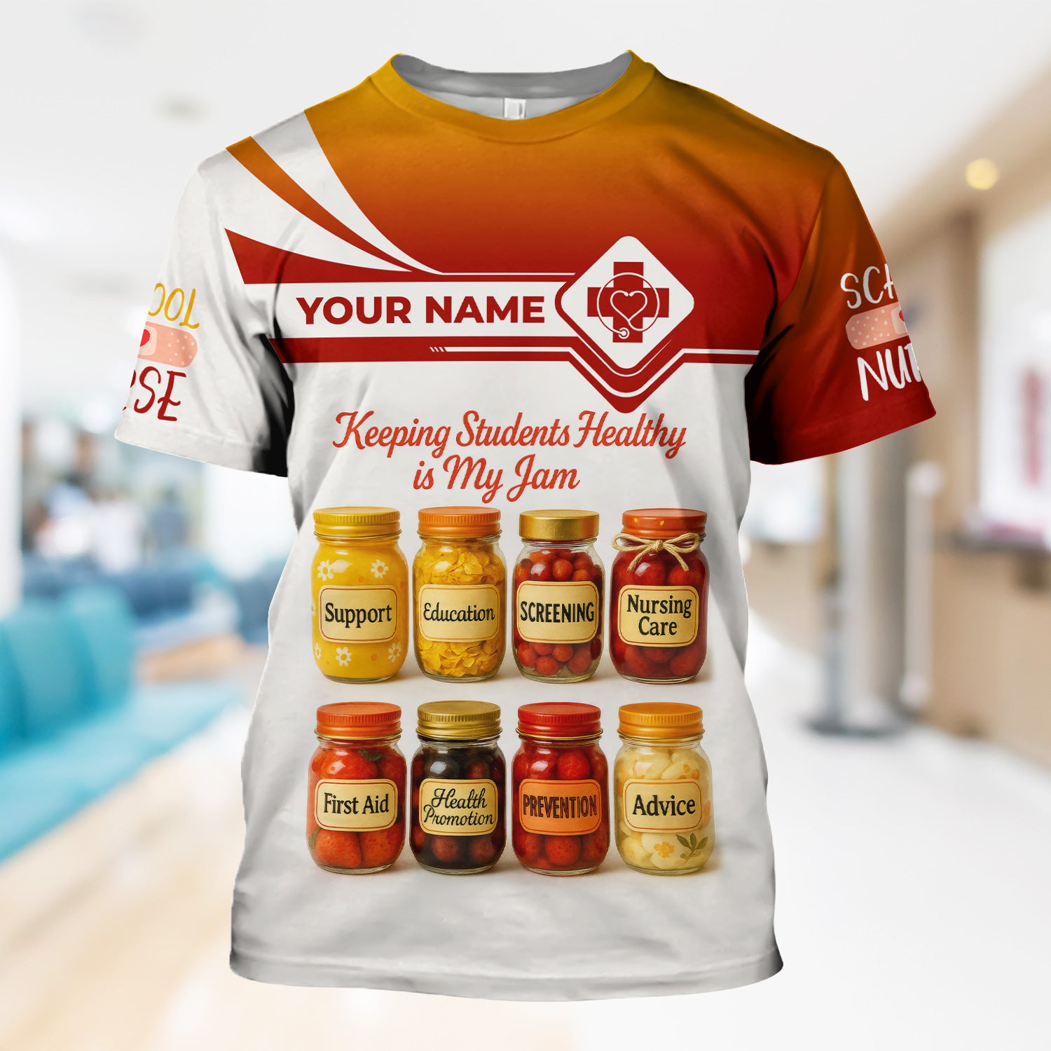 Custom Funny School Nurse Scrub - My Jam Jar Design with Custom Name - Back to School Nurse Gift for Women, RN, LPN