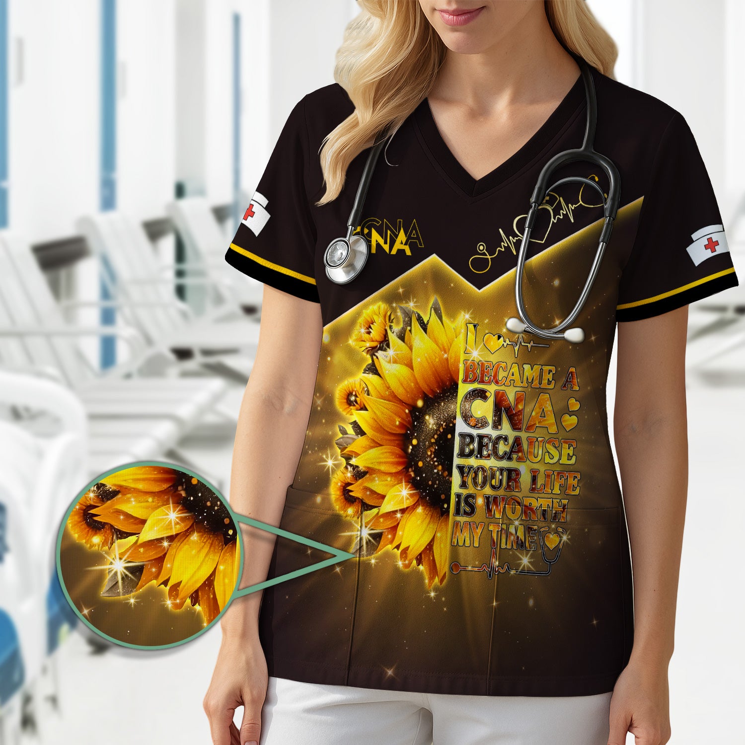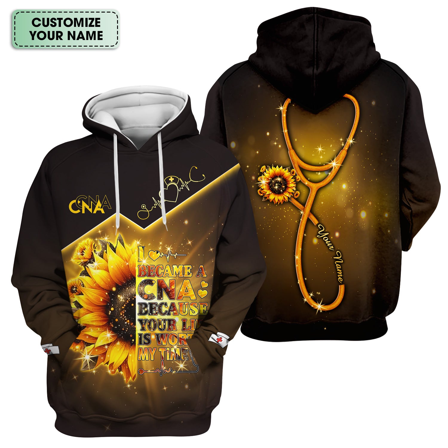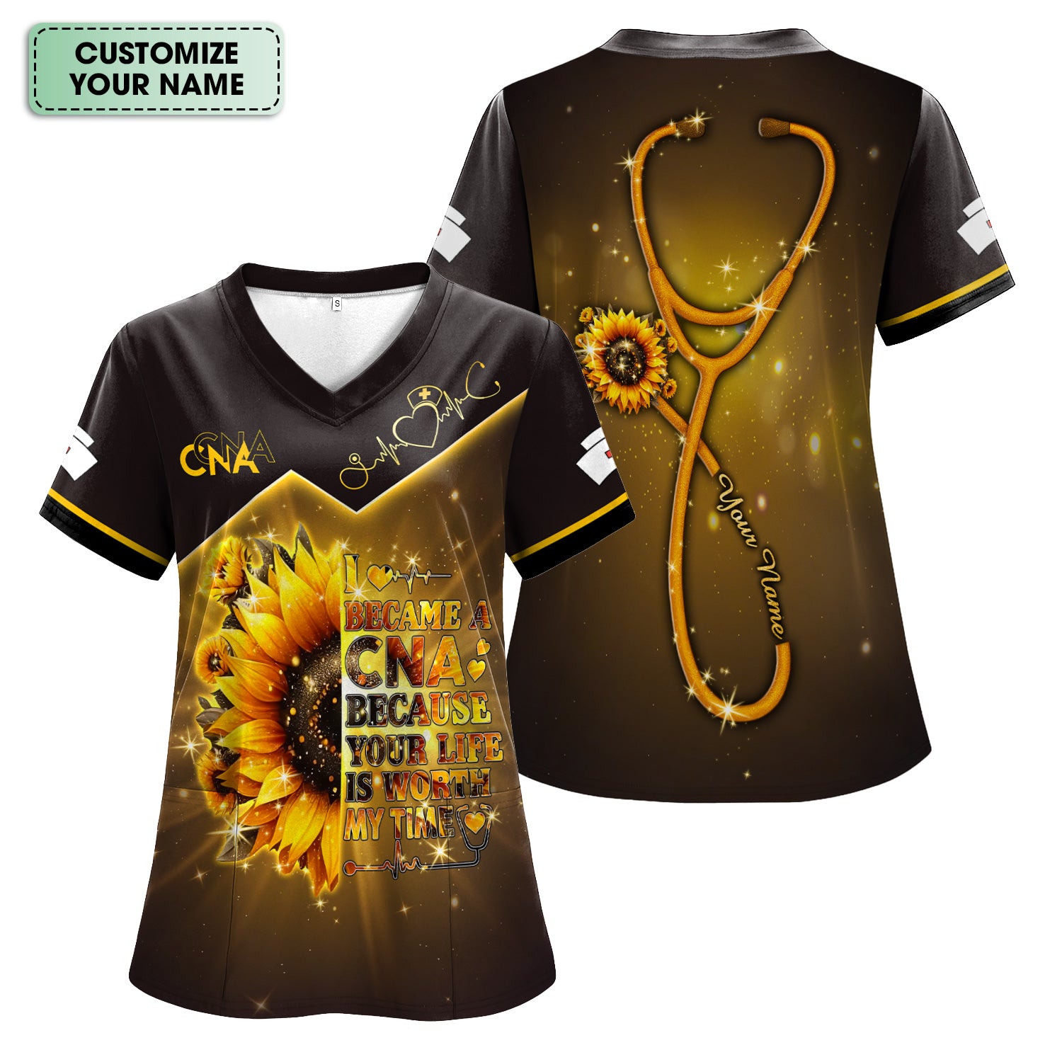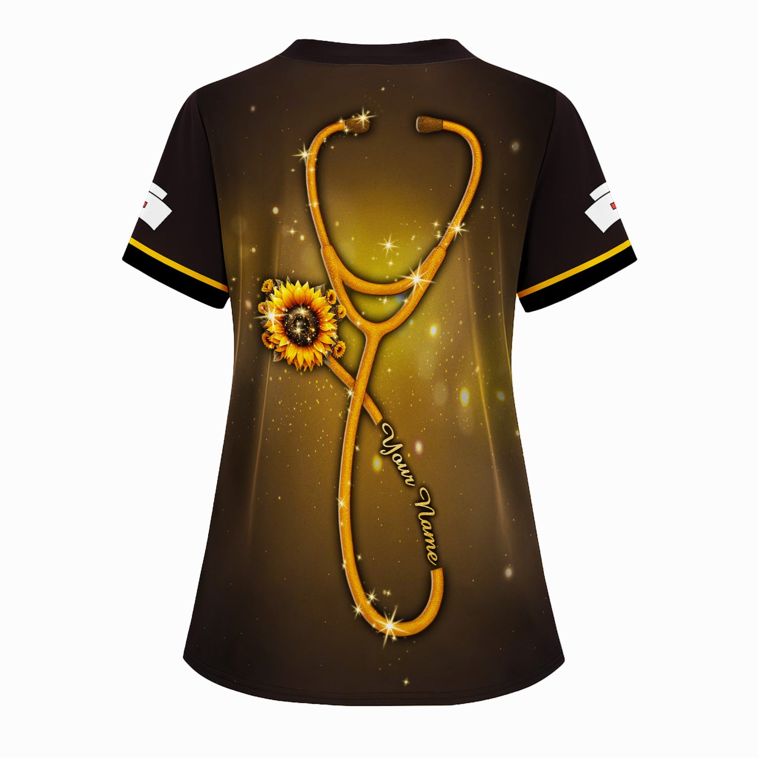 Custom Inspirational CNA T-Shirt - Golden Sunflower & Stethoscope Graphic Tee - Gift for RN LPN Healthcare Workers