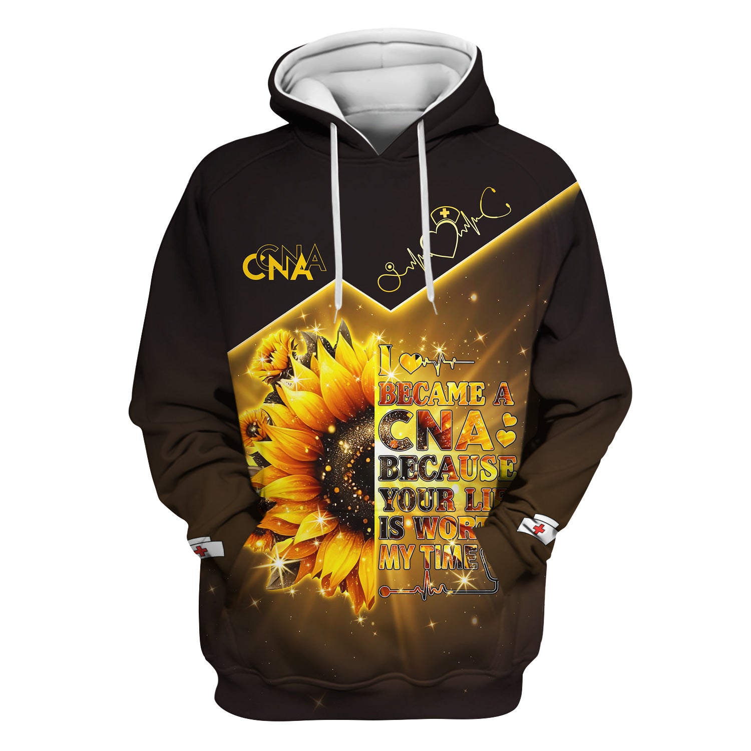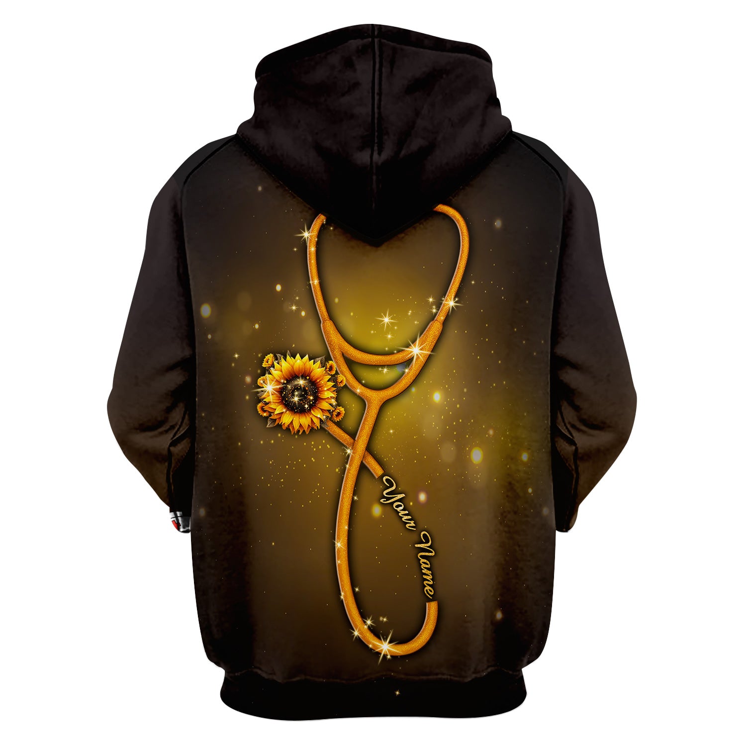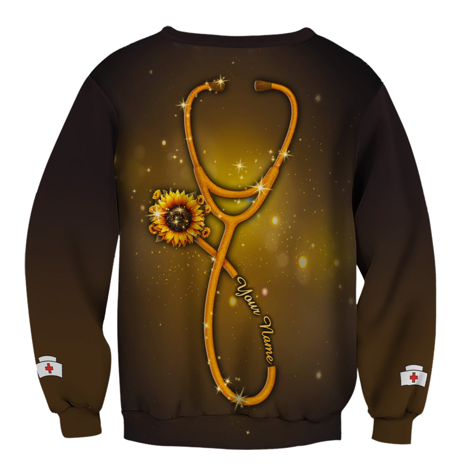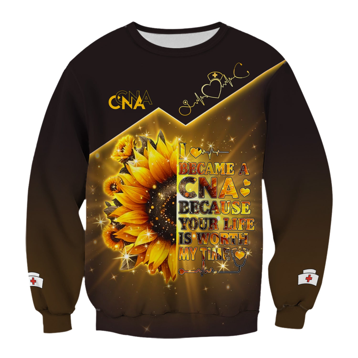 Custom Inspirational CNA T-Shirt - Golden Sunflower & Stethoscope Graphic Tee - Gift for RN LPN Healthcare Workers
