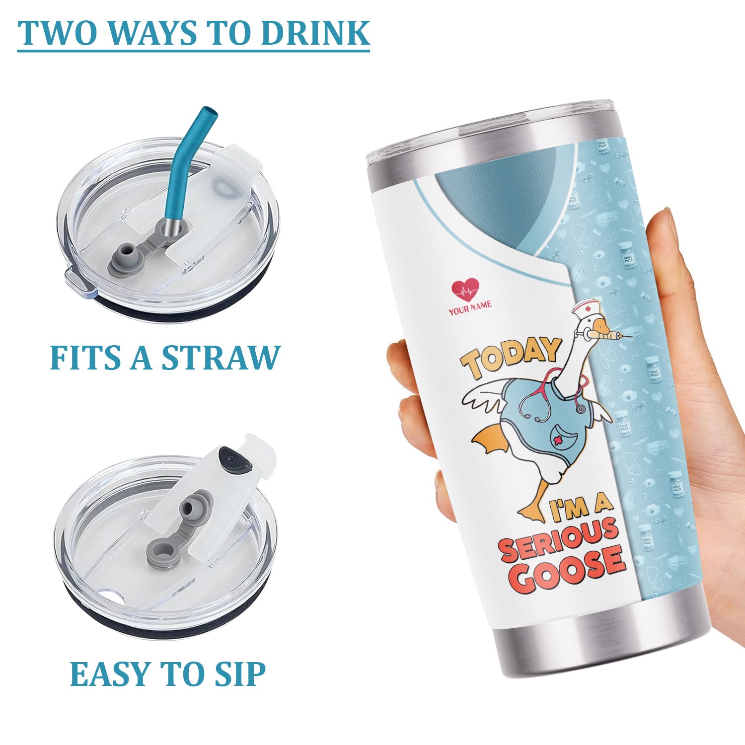 Custom Name Funny Goose Nurse Tumbler - Today I'm a Serious Goose Quote - Personalized Gift for RN, CNA, LPN