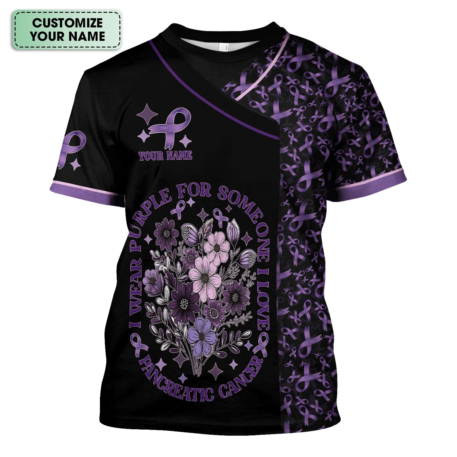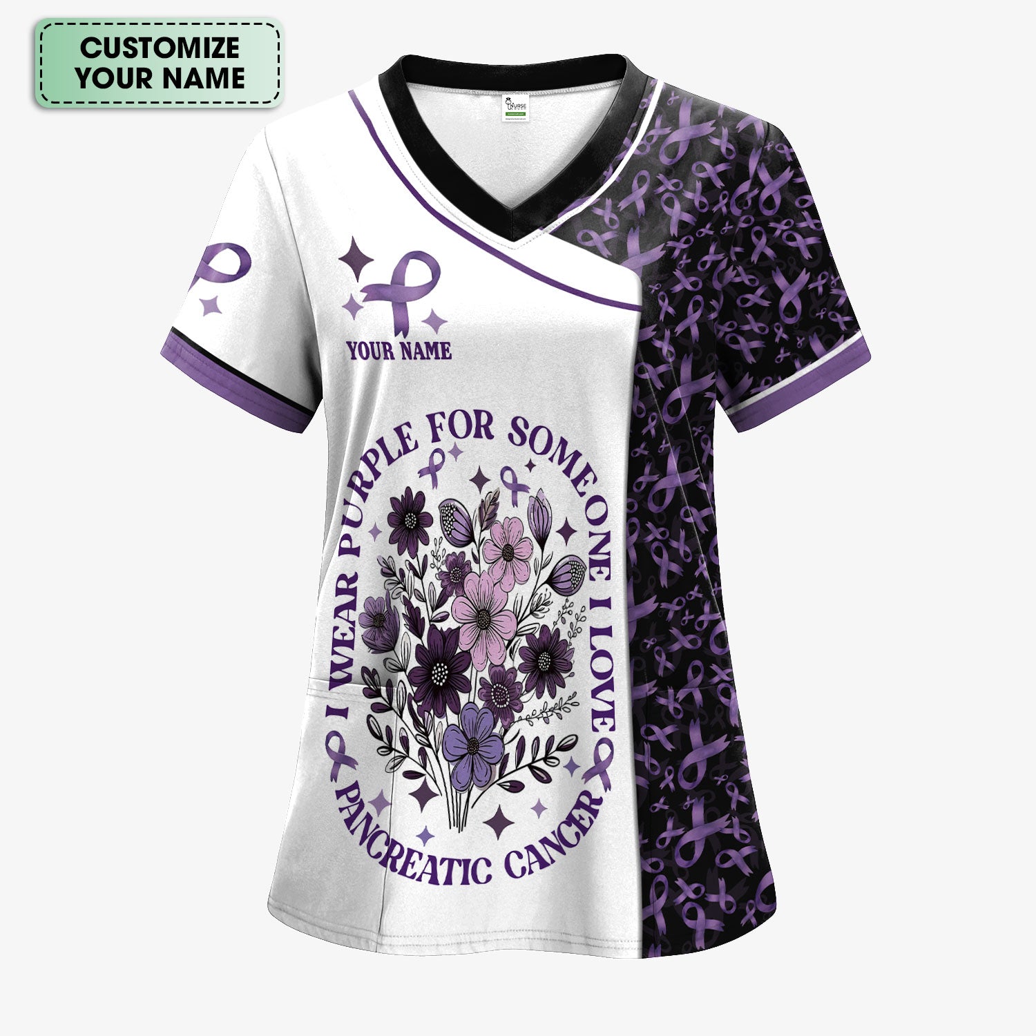 Custom Name Pancreatic Cancer Scrub Top - Awareness Nurse Shirt for Someone I Love - Personalized Gift for Fighters Survivors Supporters