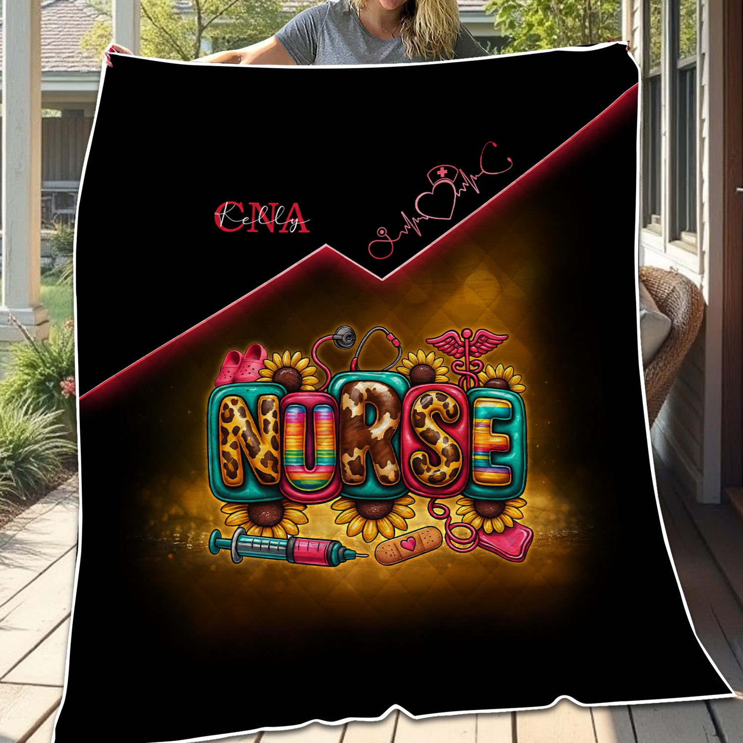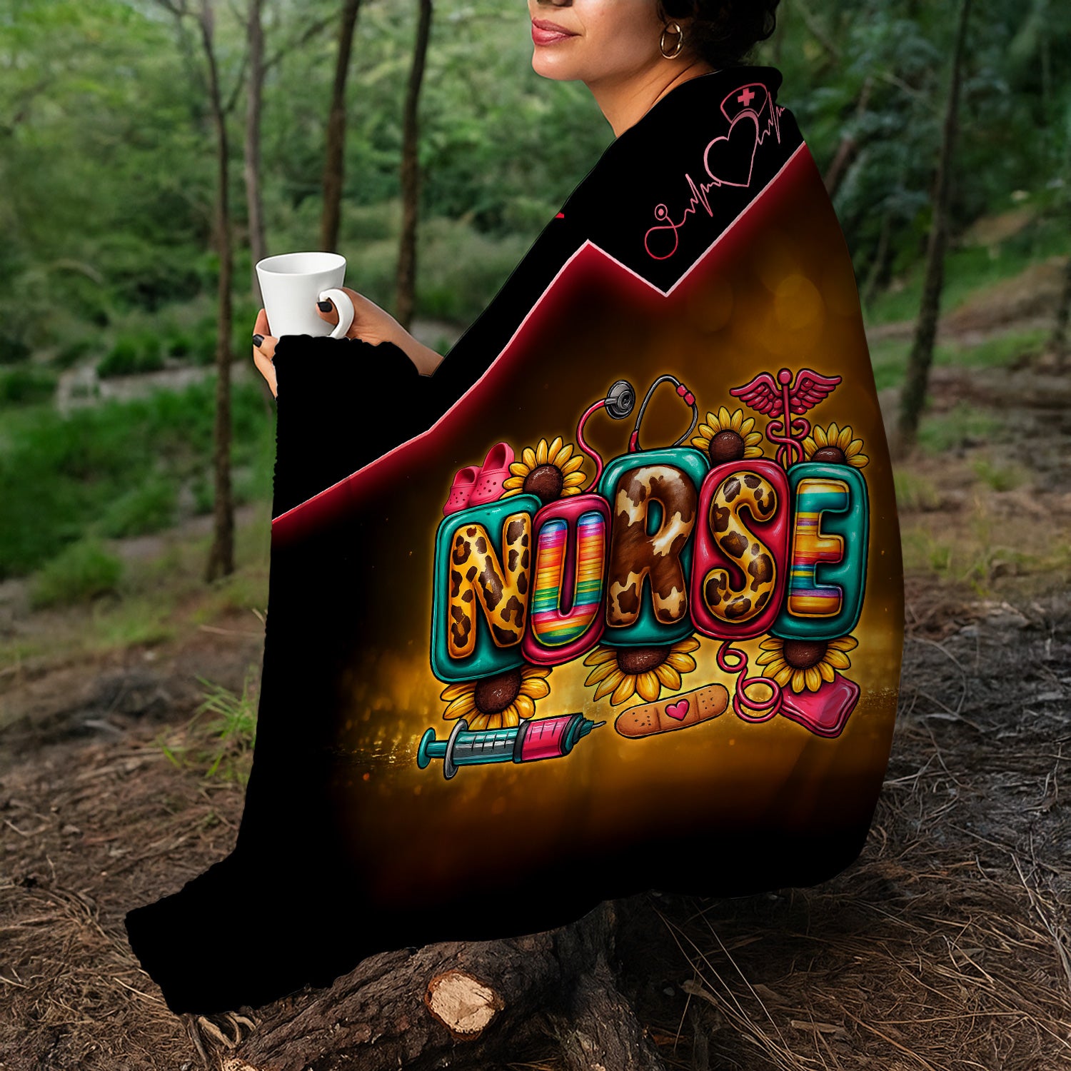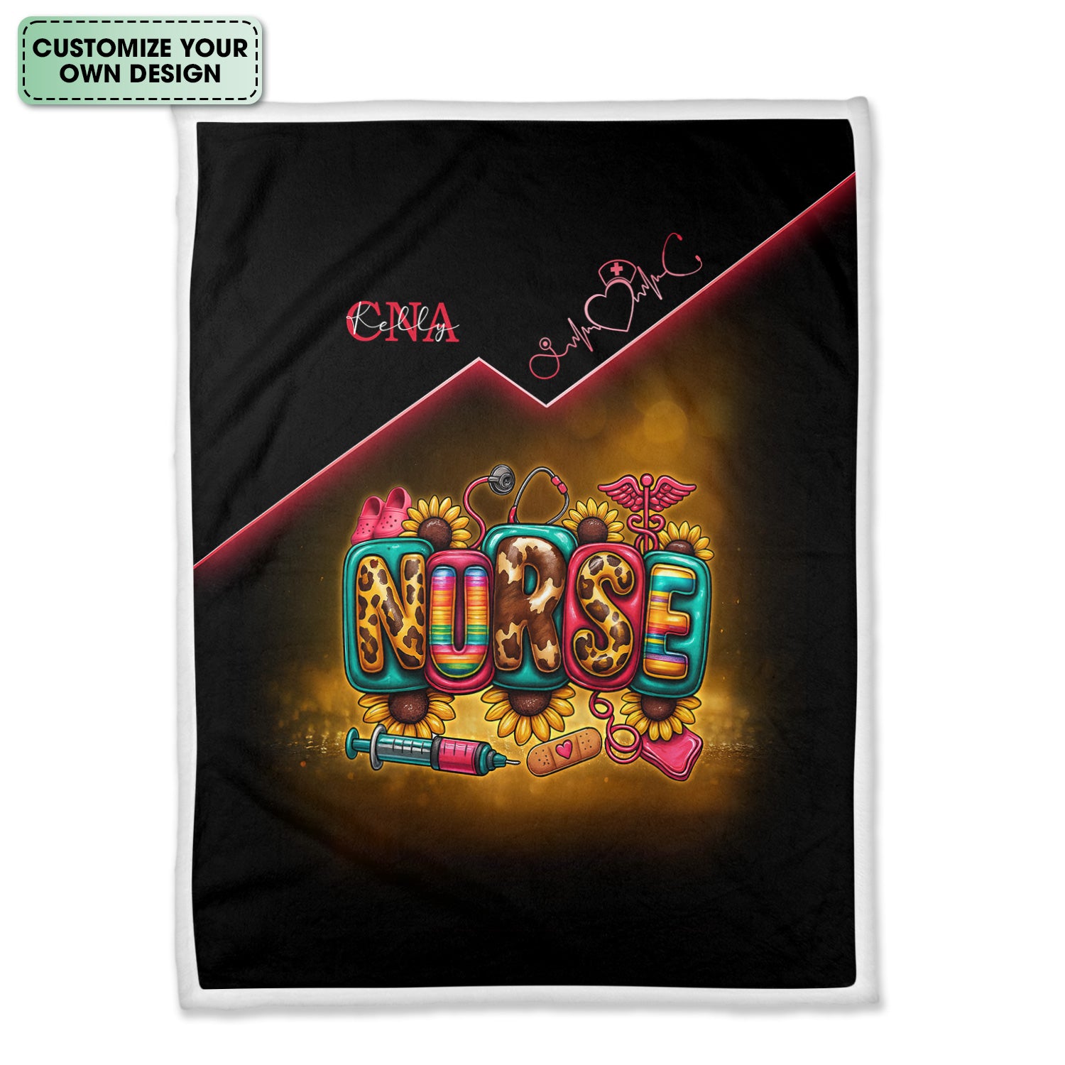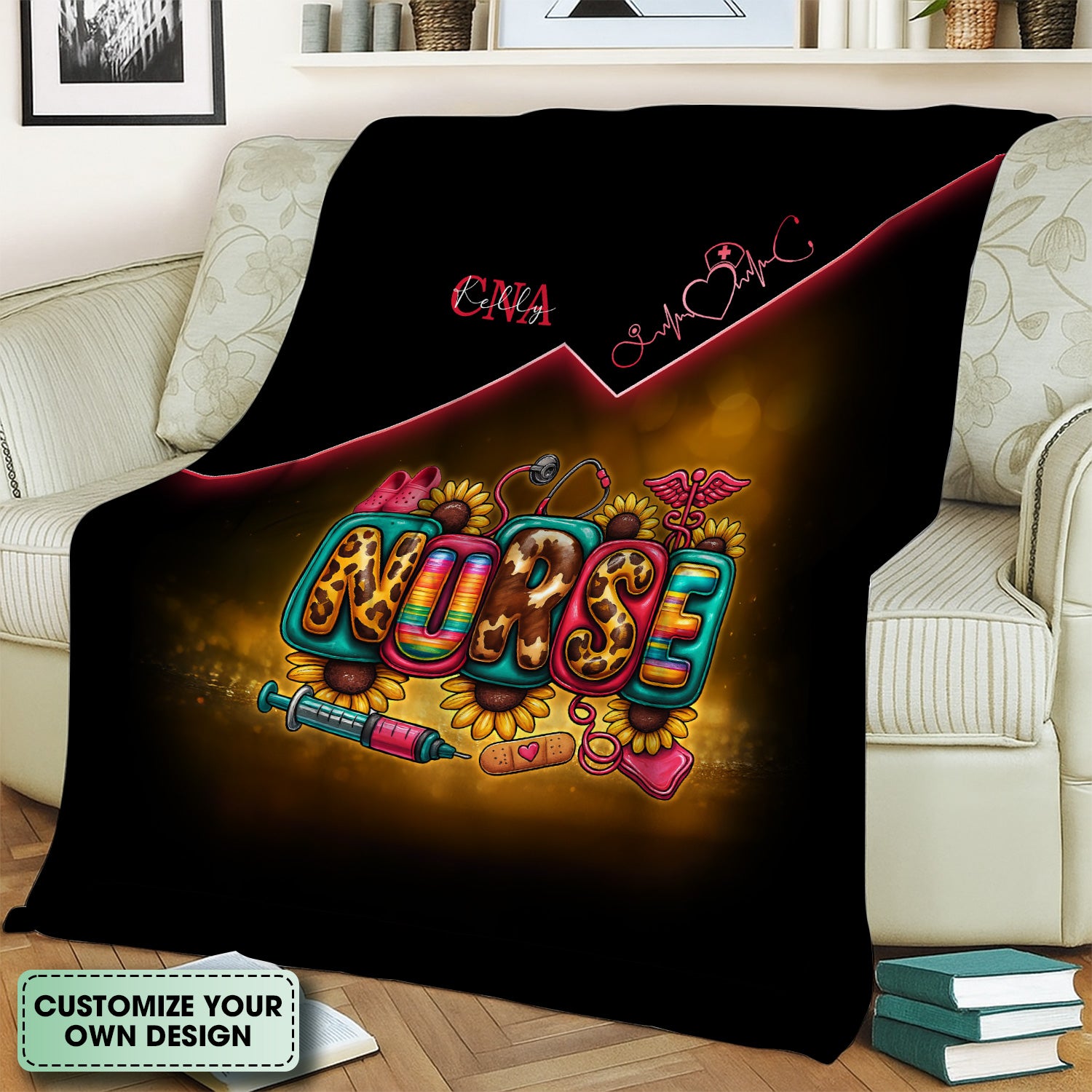 Custom Nurse Throw Blanket - Flower Medical & Syringe Graphic Design - Fun Gift for RN, LPN, Medical Staff
