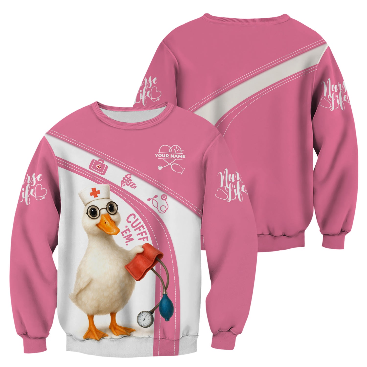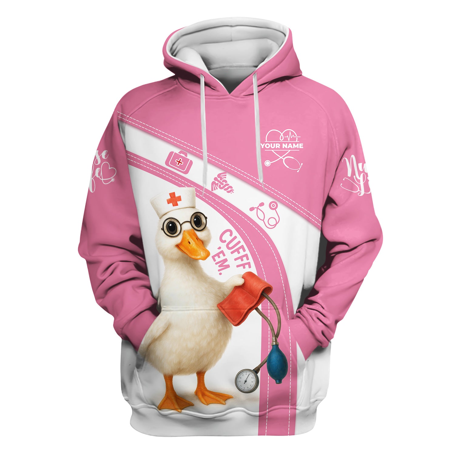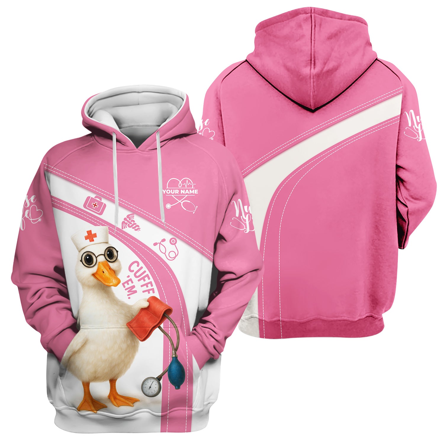 Custom Nursing Humor Shirt for Women - Duck Holding Blood Pressure Cuff Design - Funny Gift for RN LPN CNA, Healthcare Workers