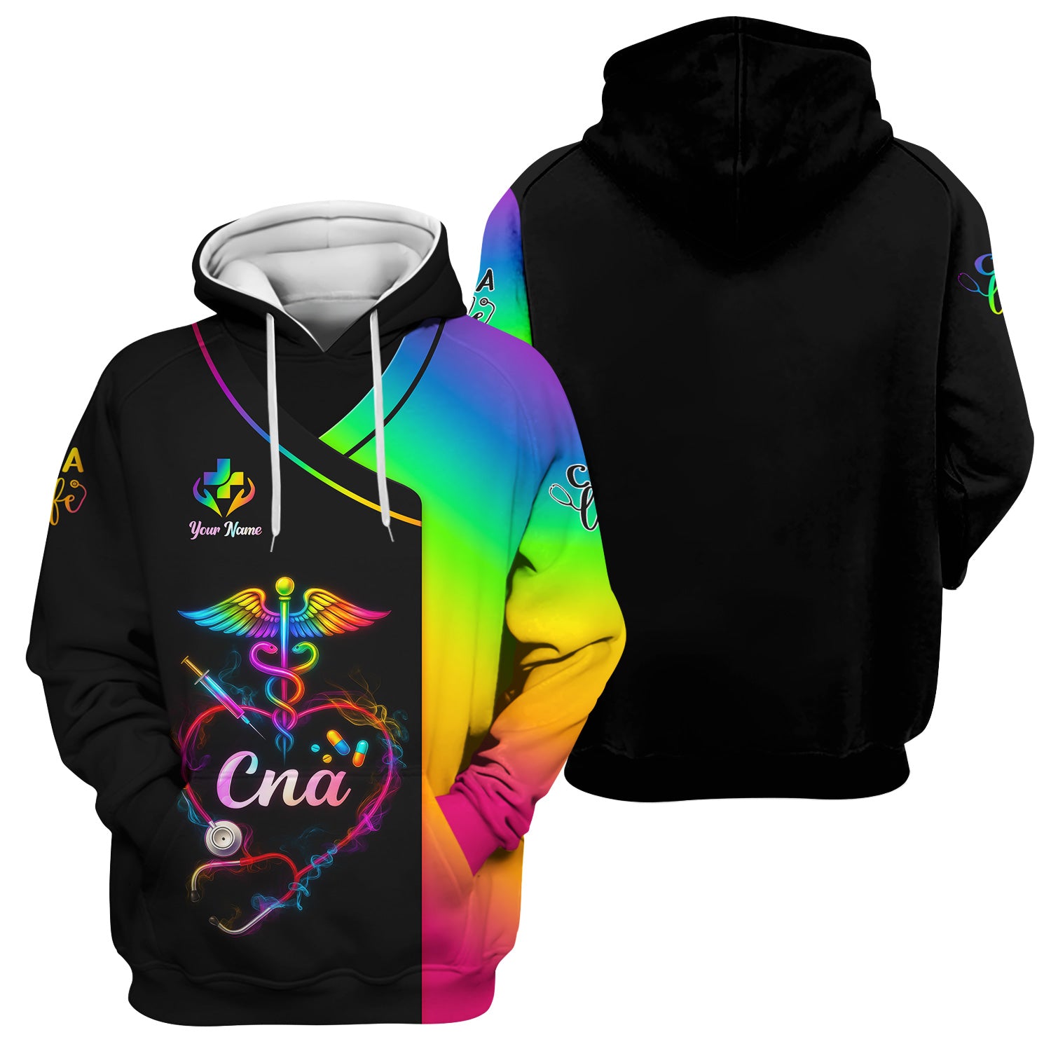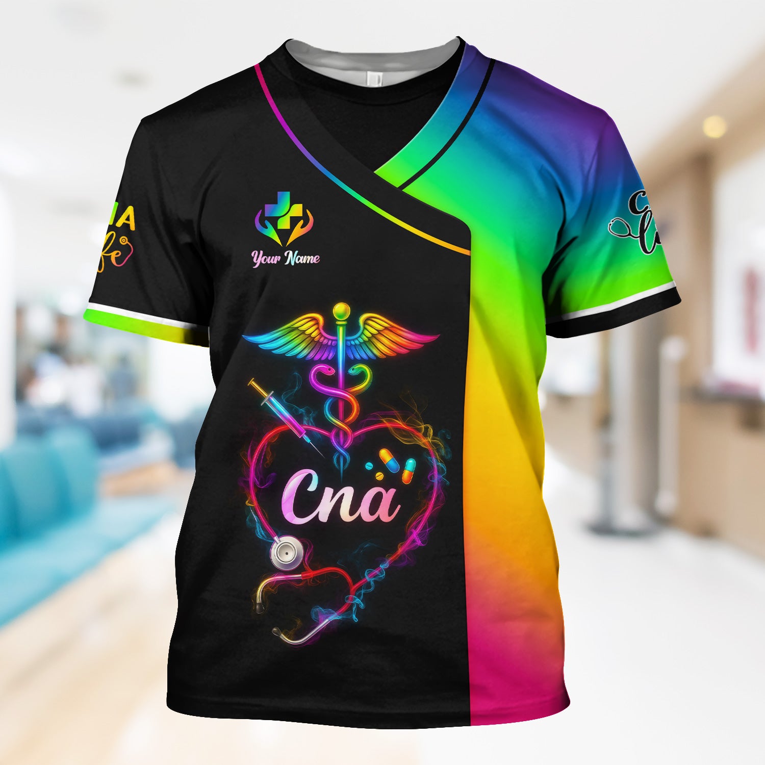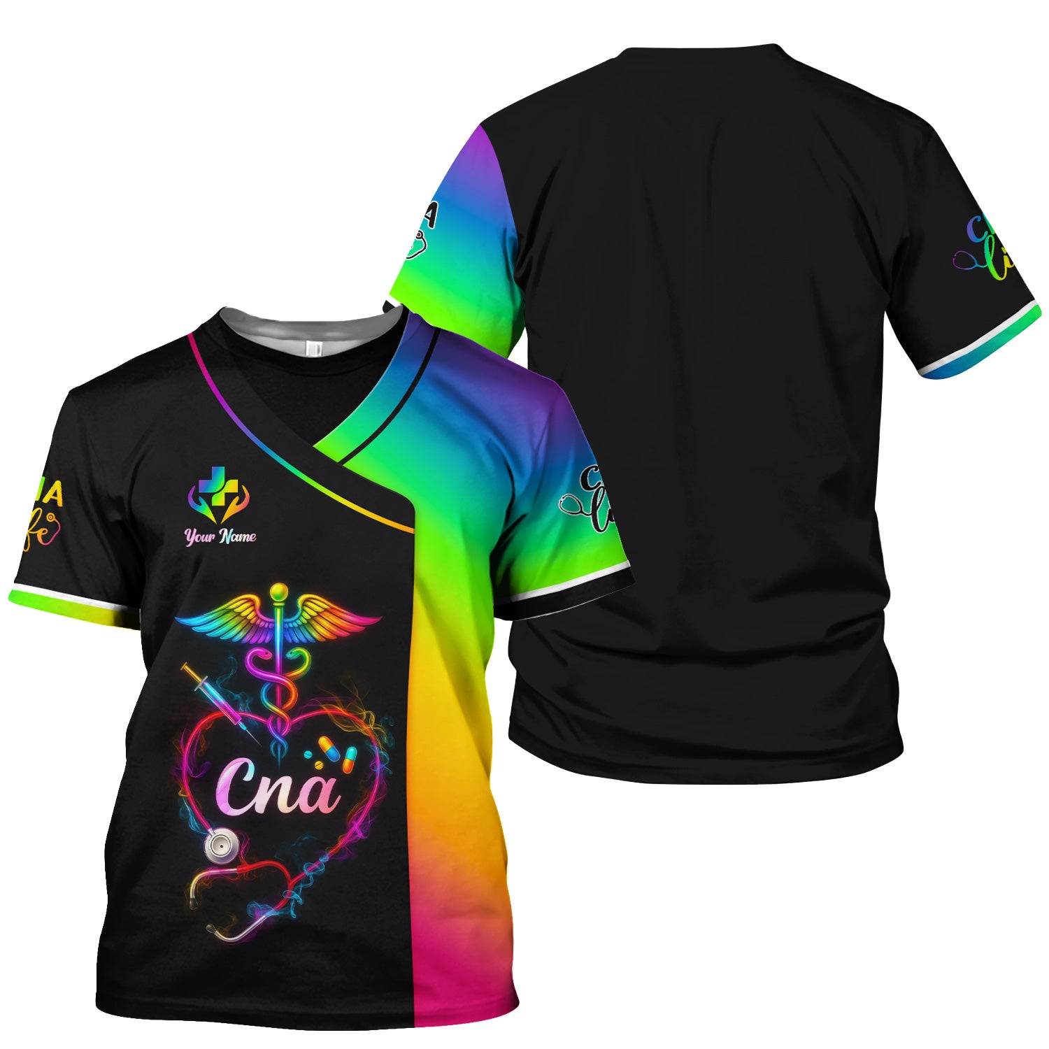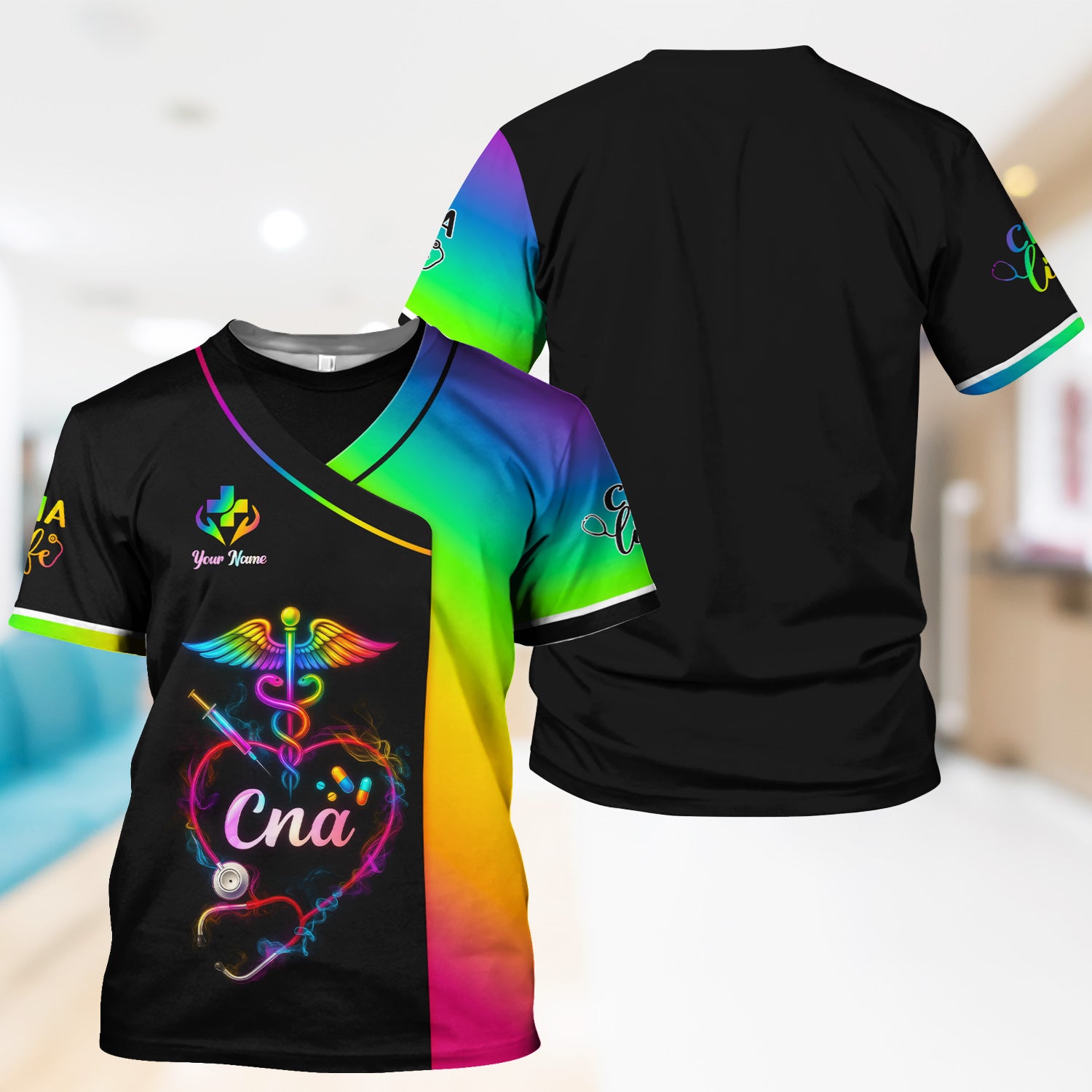 Custom Rainbow CNA Nurse Shirt - Stethoscope Heart & Caduceus Design - Gift for RN LPN Healthcare Workers