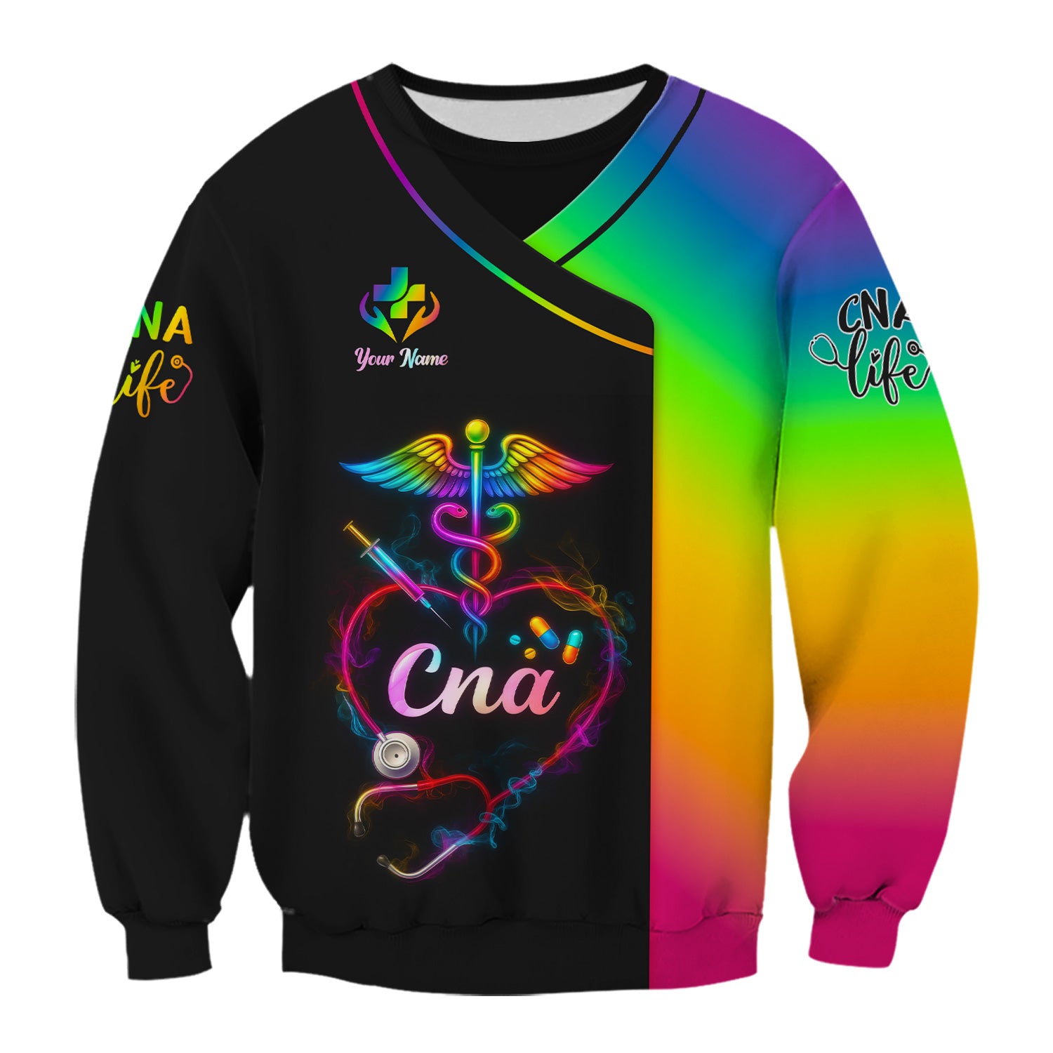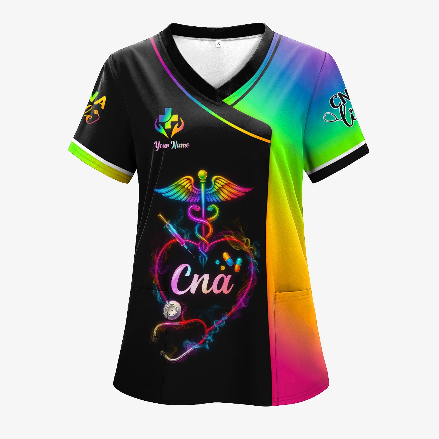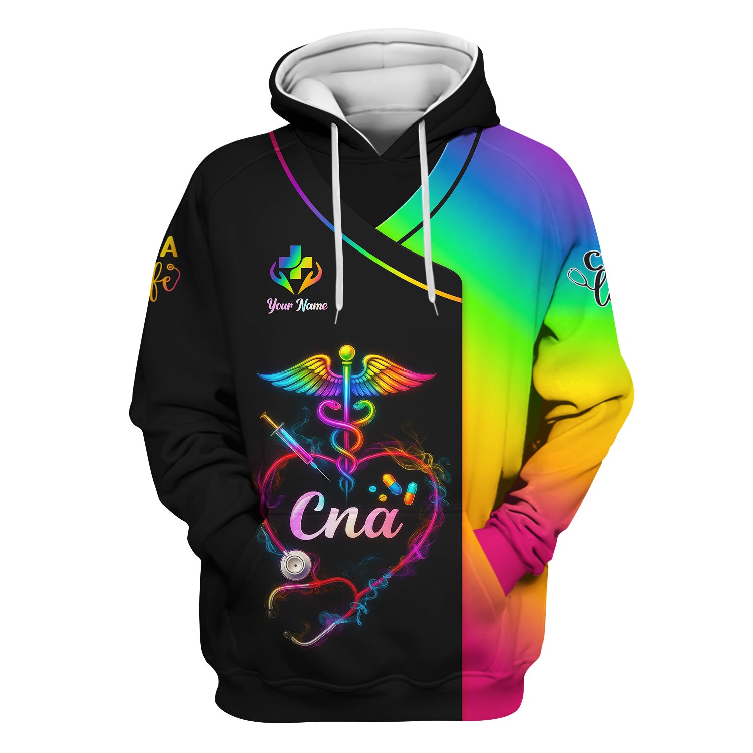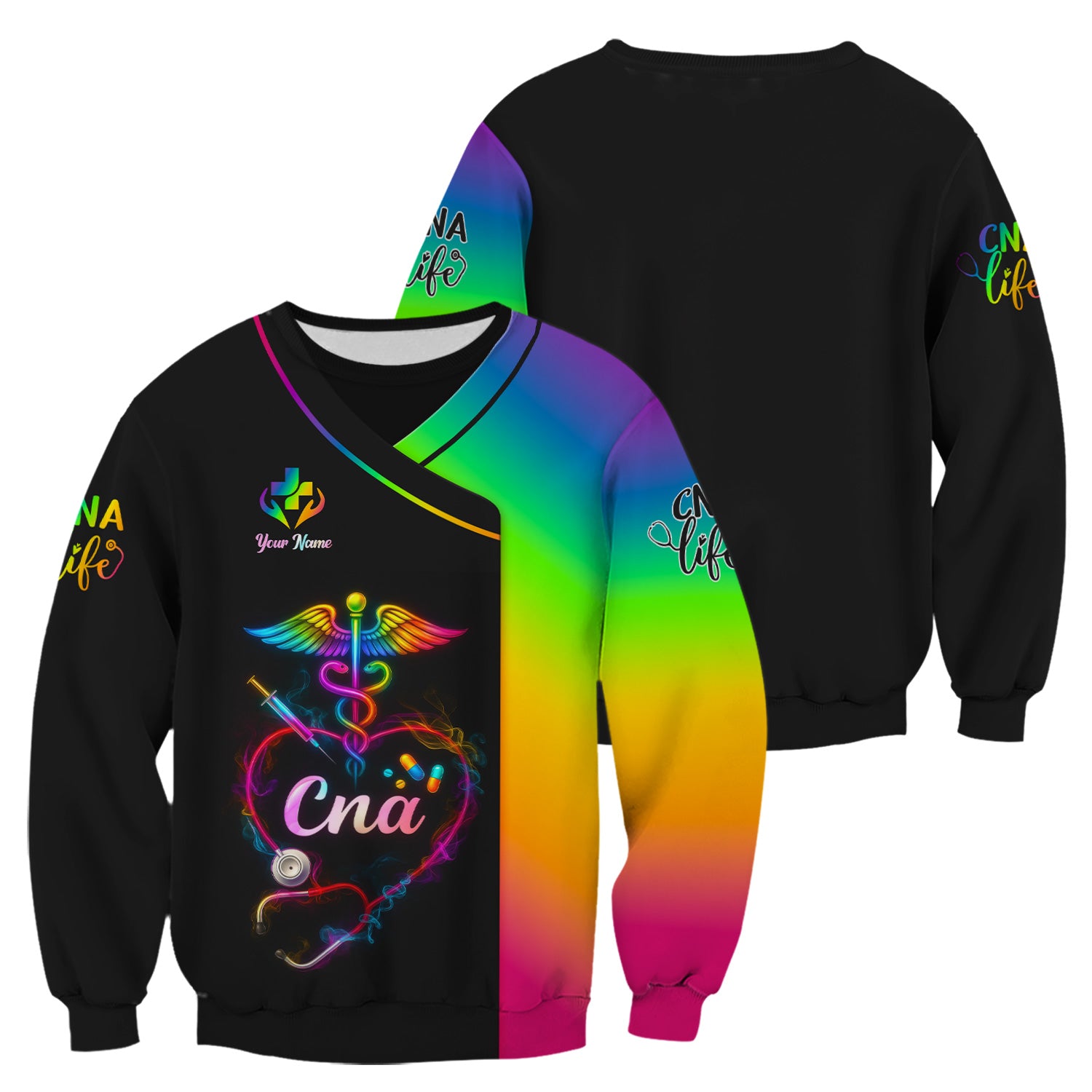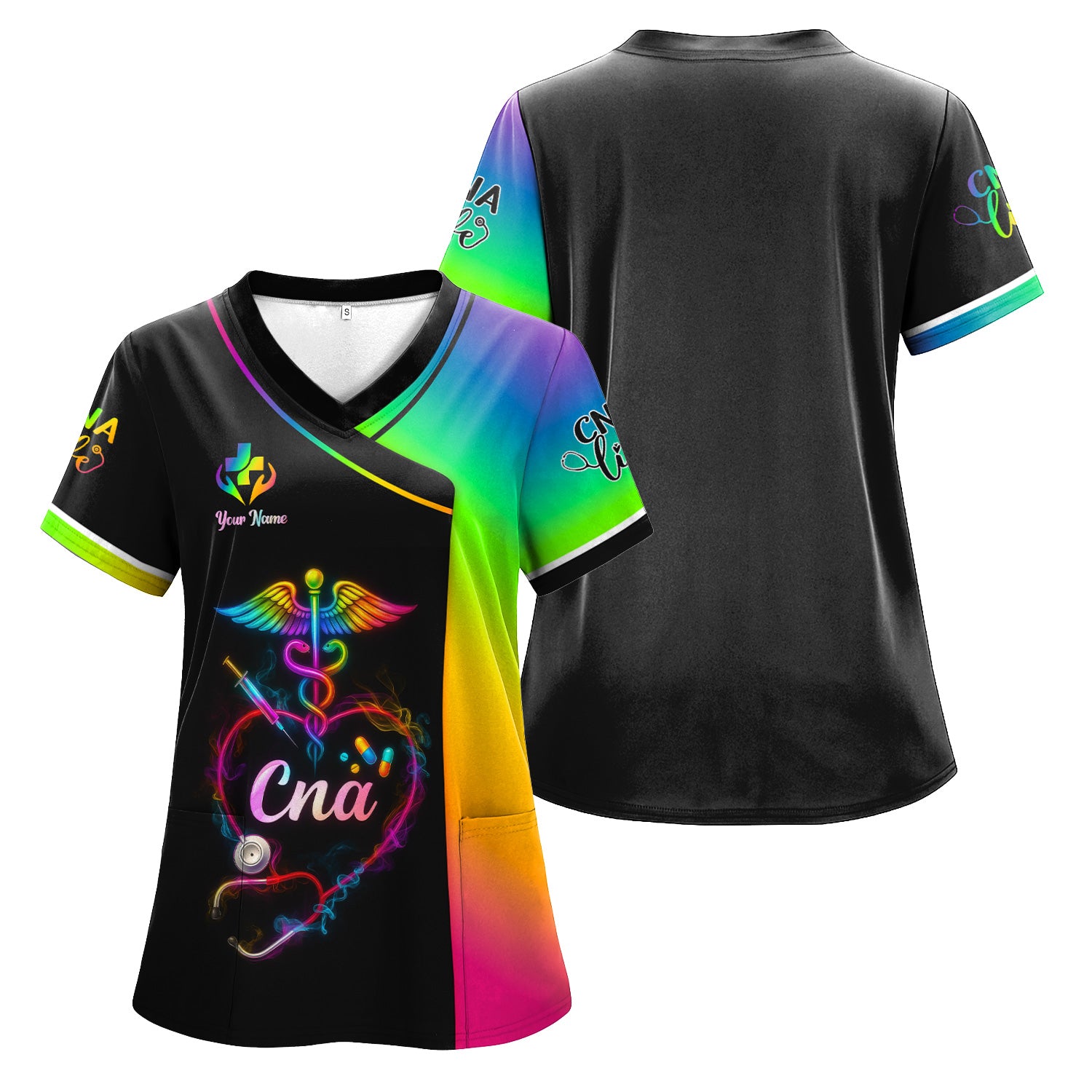 Custom Rainbow CNA Nurse Shirt - Stethoscope Heart & Caduceus Design - Gift for RN LPN Healthcare Workers