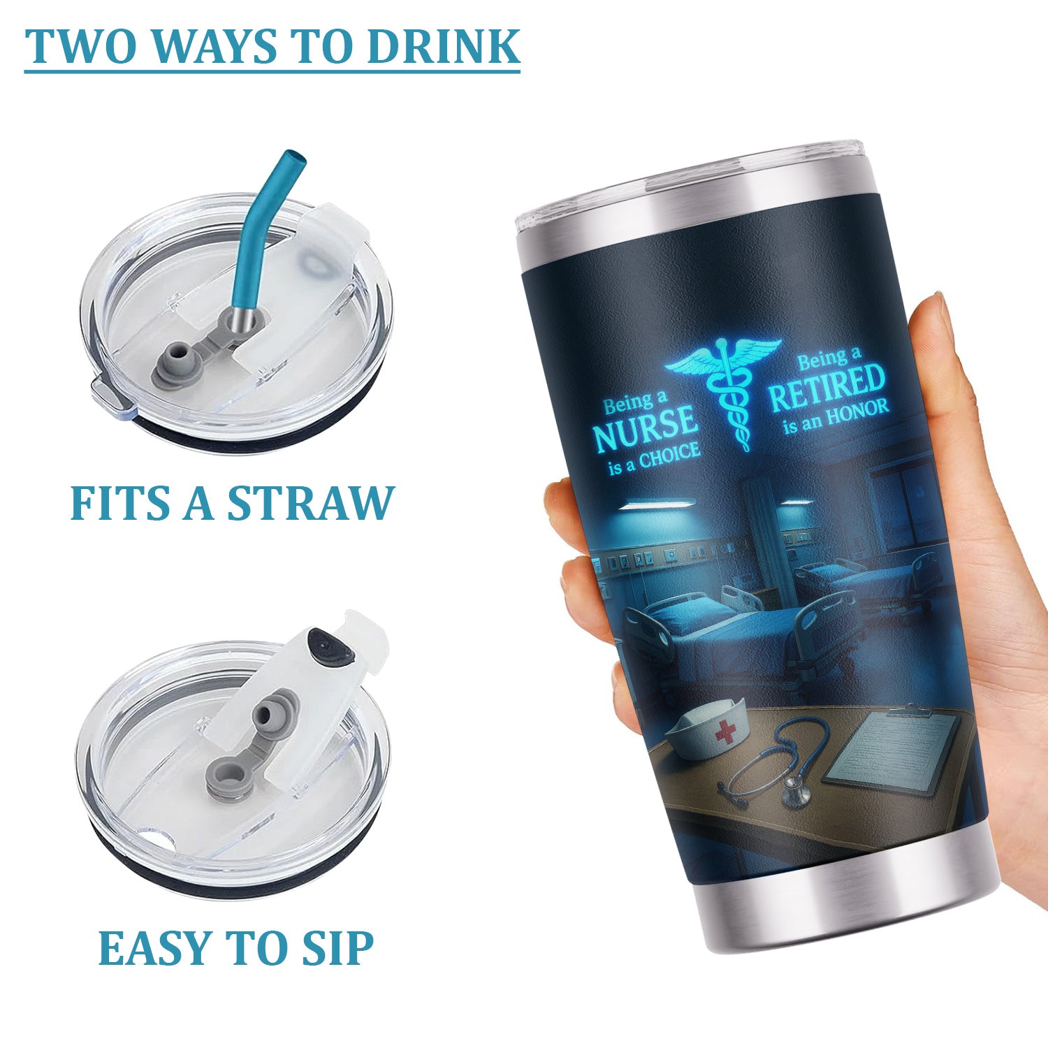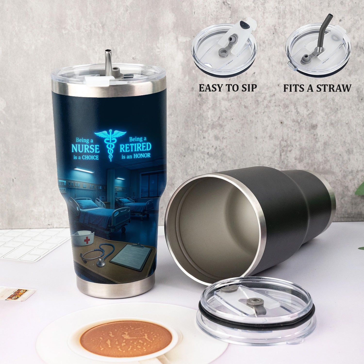 Custom Retired Nurse Tumbler Gift - Being a Nurse Is a Choice, Retired Is an Honor - Gift for RN LPN CNA