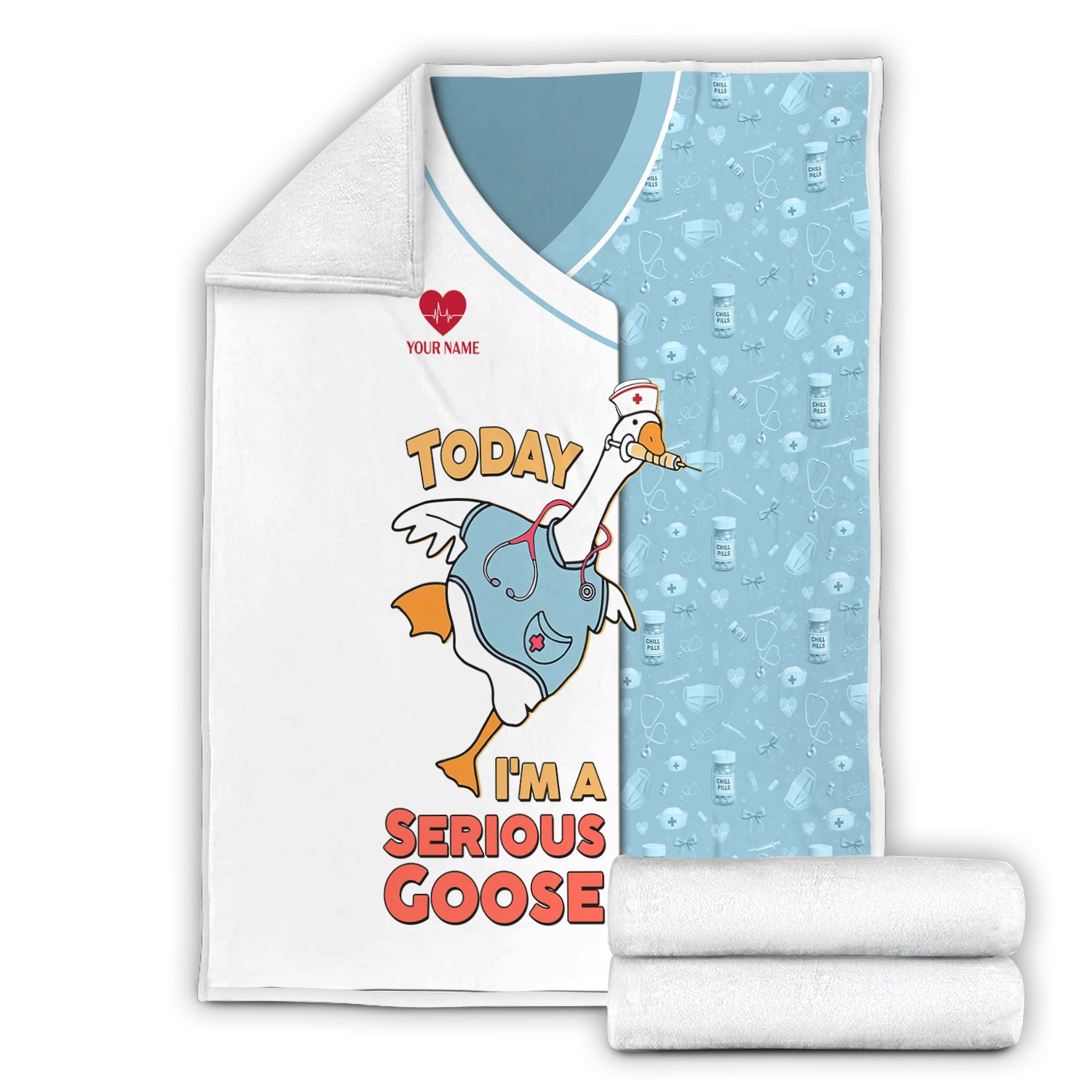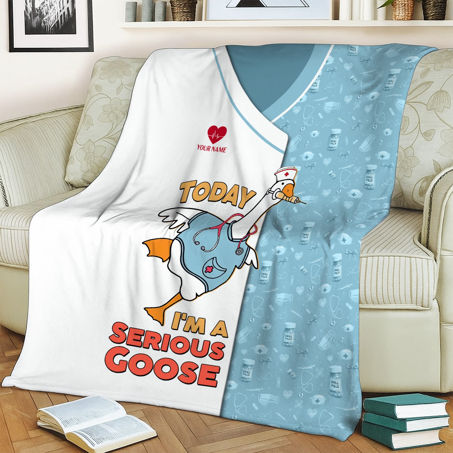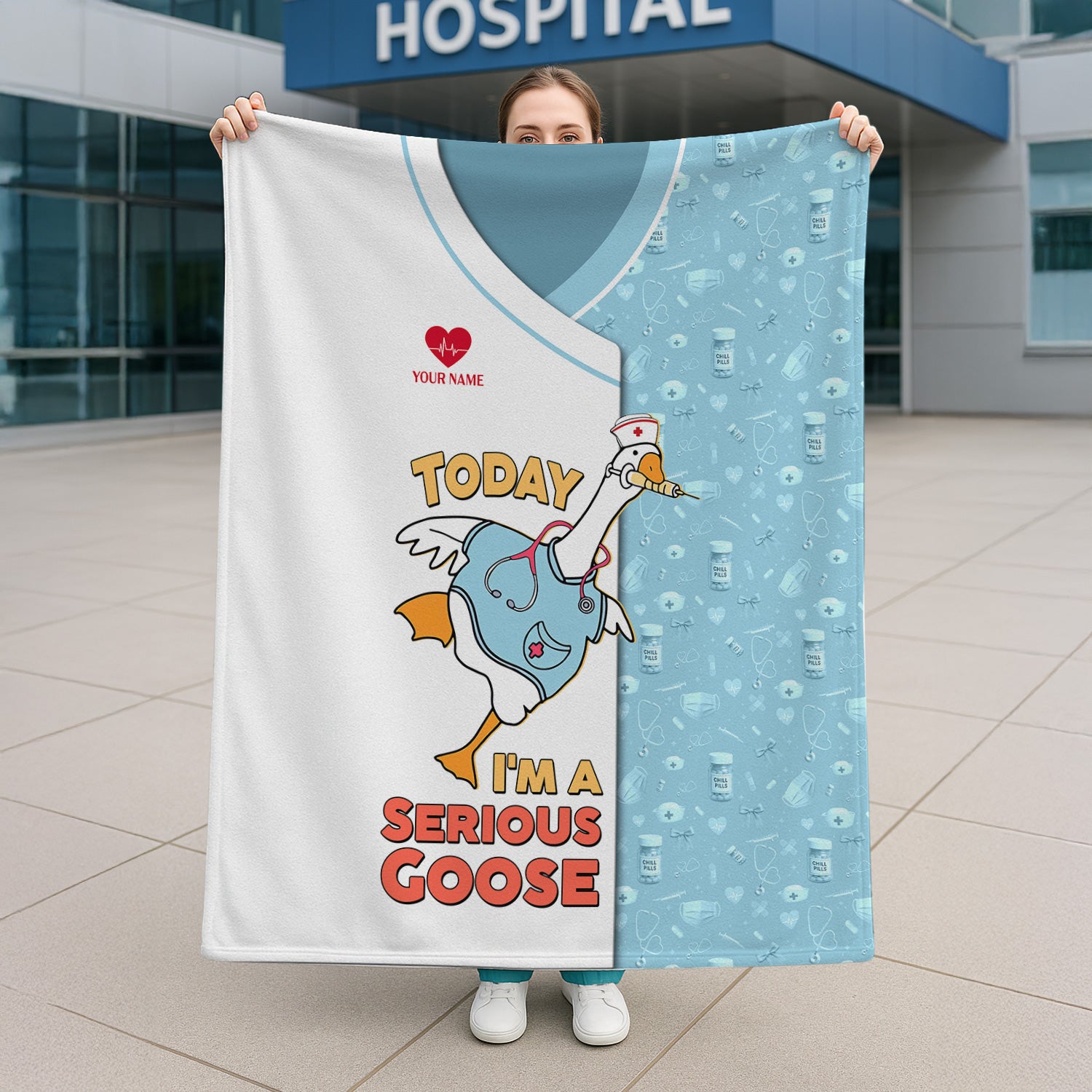 Custom Silly Goose Nurse Blanket - Cute Stethoscope & Scrubs Cartoon - Fun Gift for Healthcare Workers