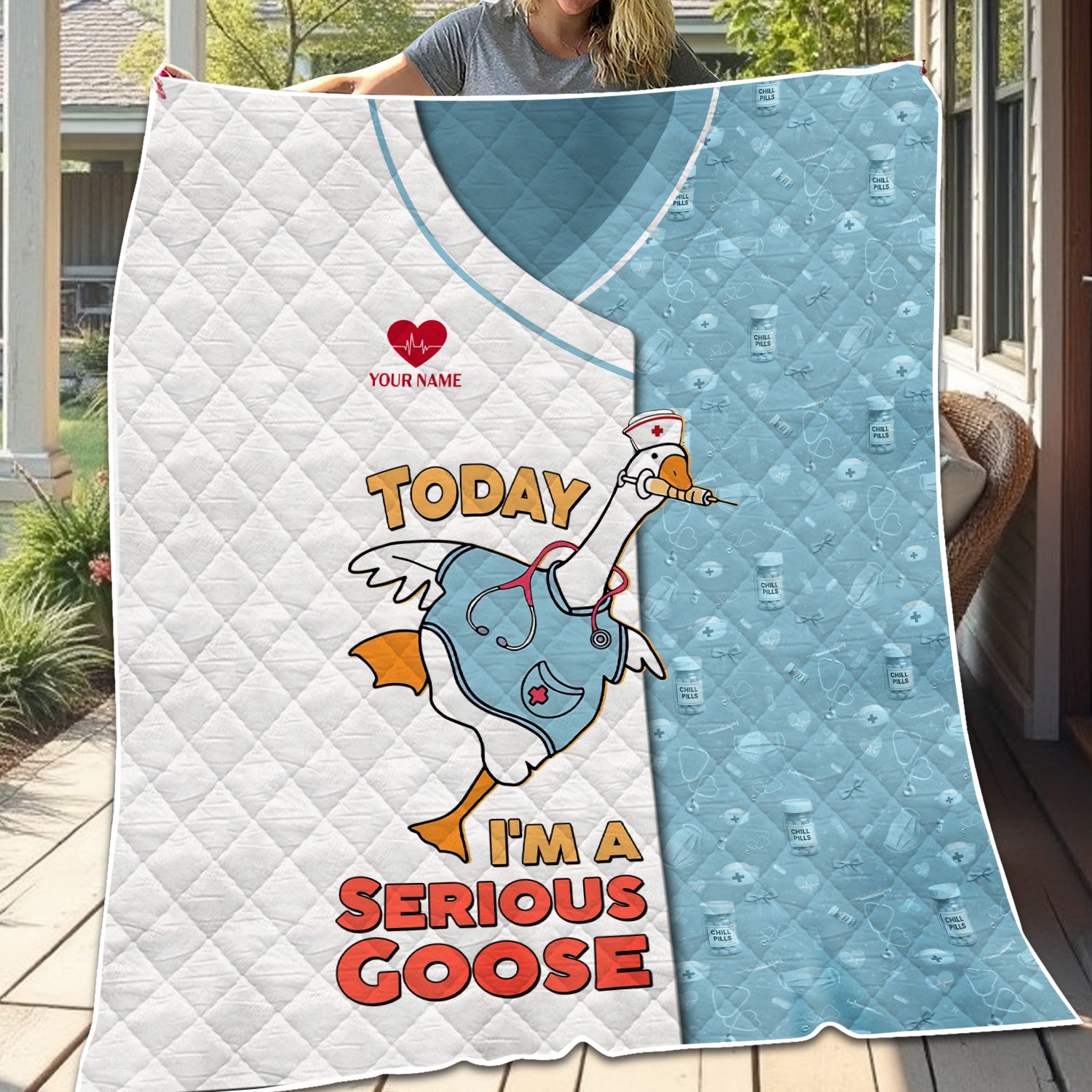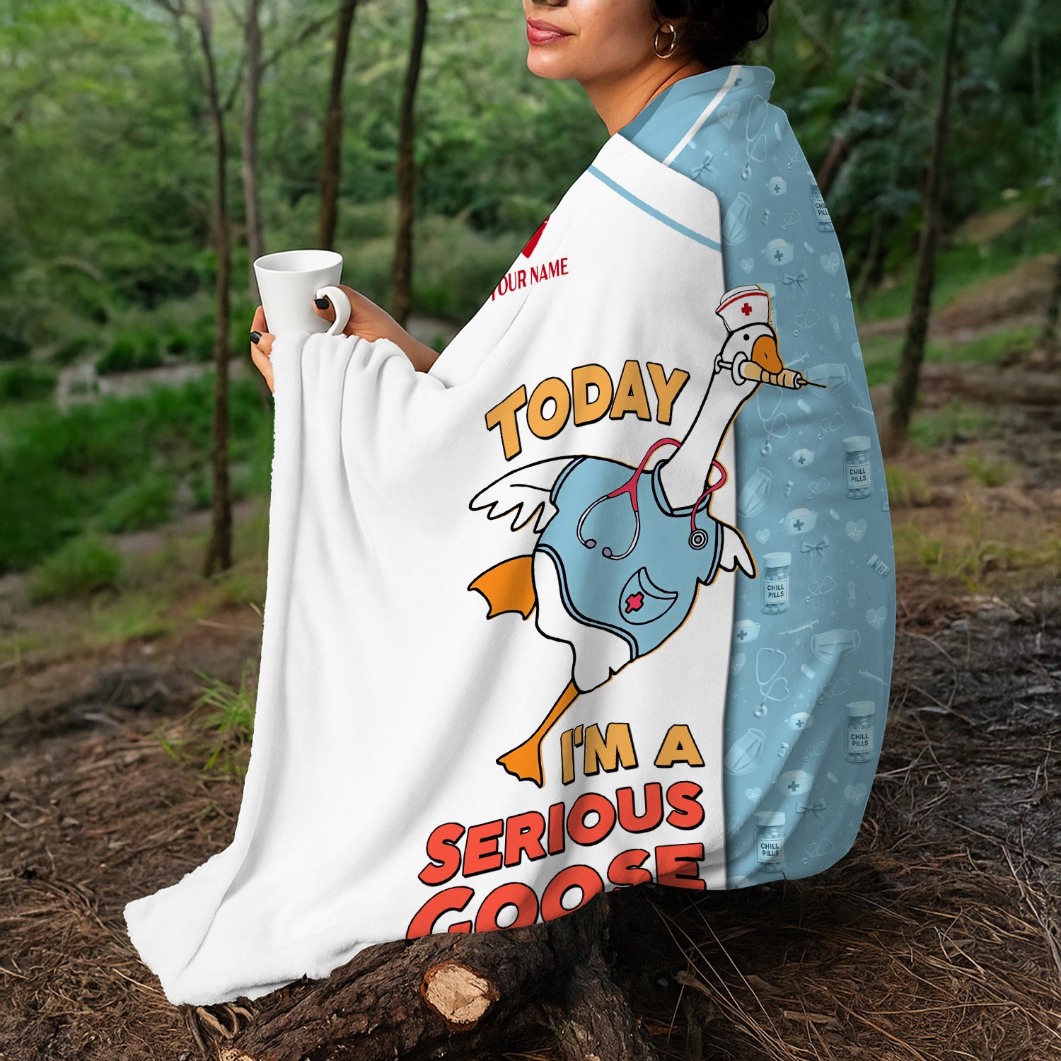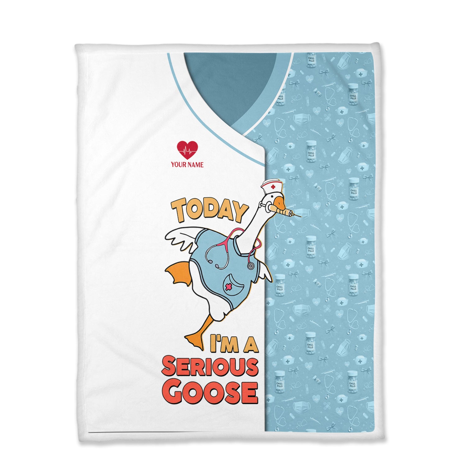 Custom Silly Goose Nurse Blanket - Cute Stethoscope & Scrubs Cartoon - Fun Gift for Healthcare Workers