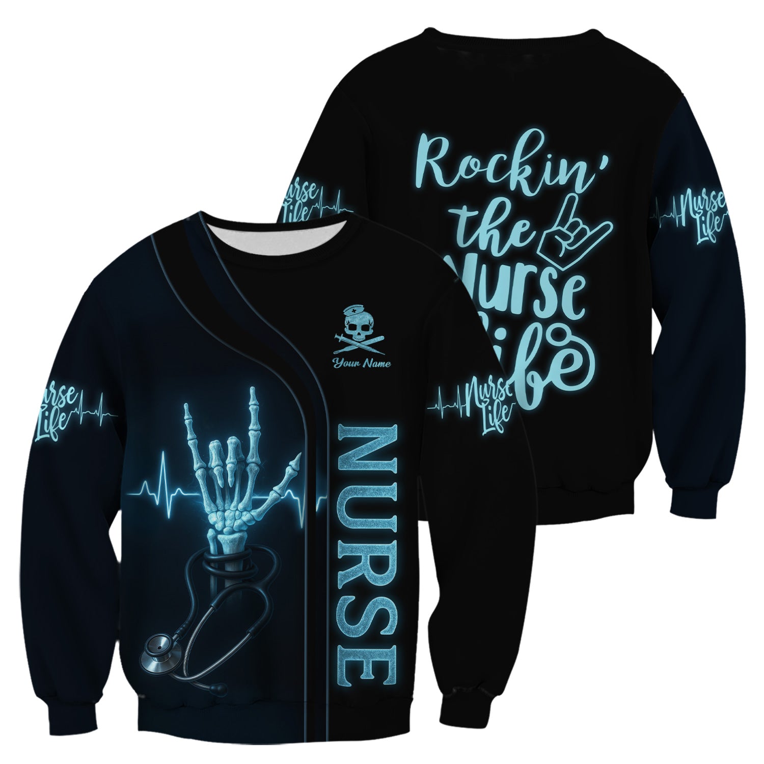 Custom Skeleton Hand Nurse Scrub Top - Rockin the Nurse Life Quote - Gift for RN, CNA, LPN, Healthcare Worker