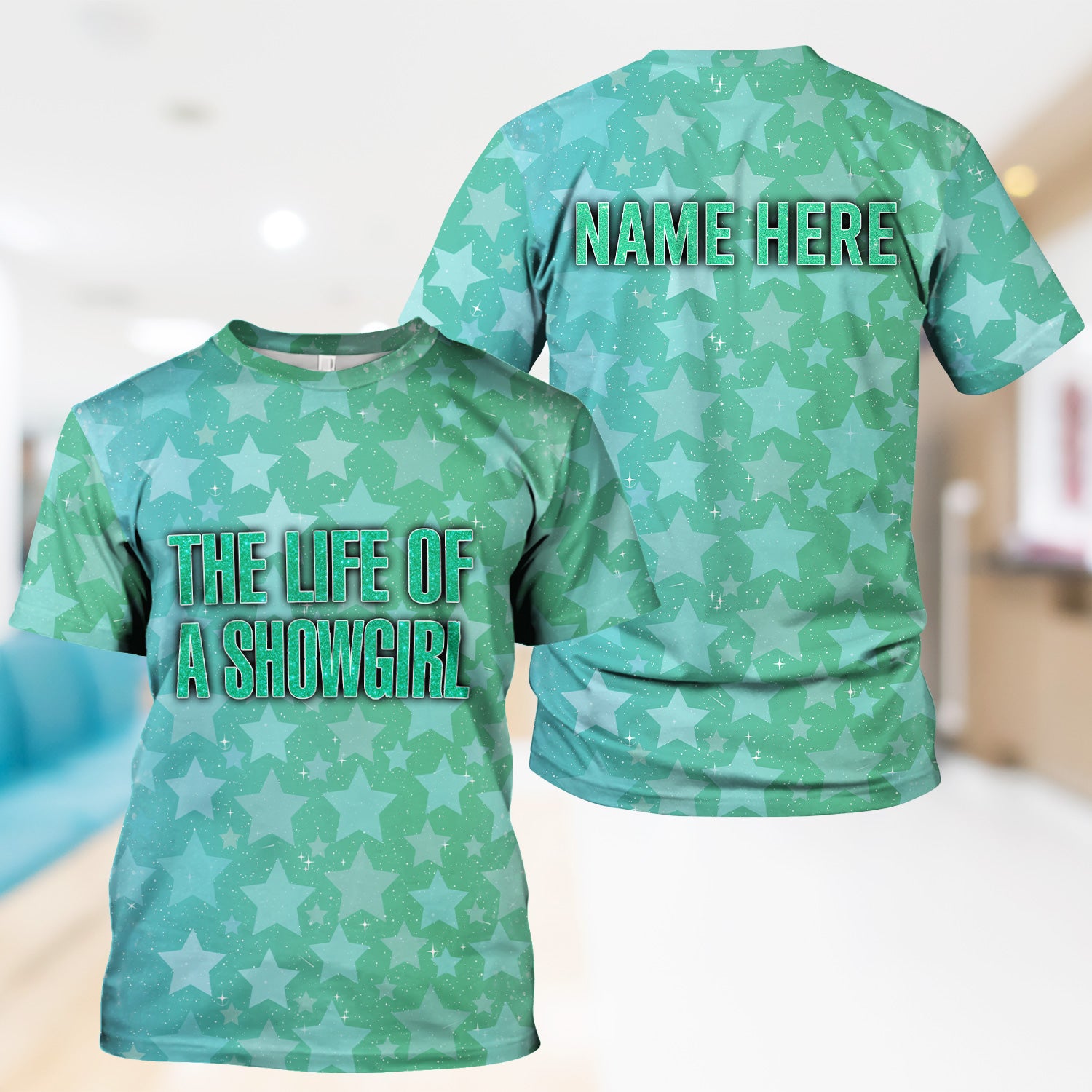 Custom Women's Showgirl Tee - All-Over Print Sparkly Star TS12 Orange Shirt - Gift for RN LPN CNA