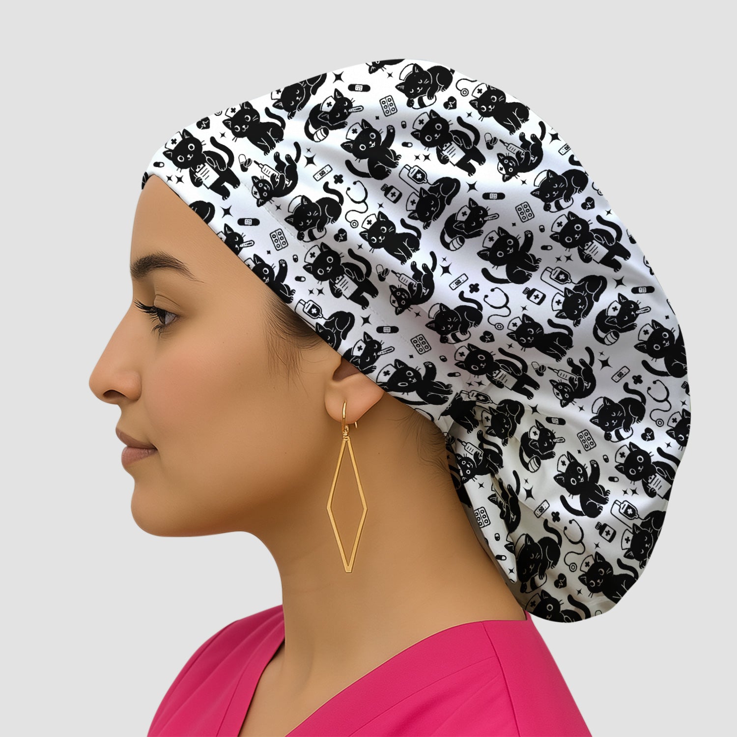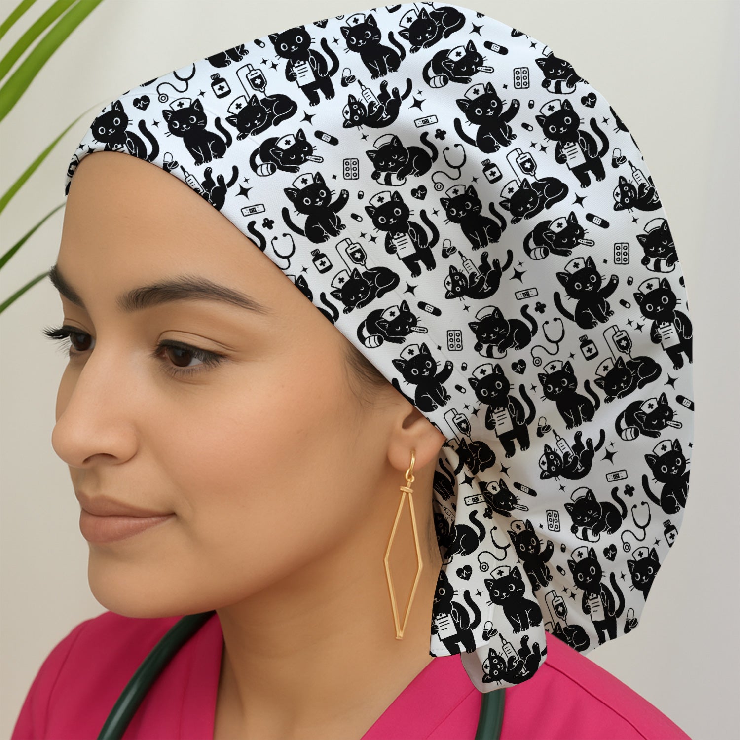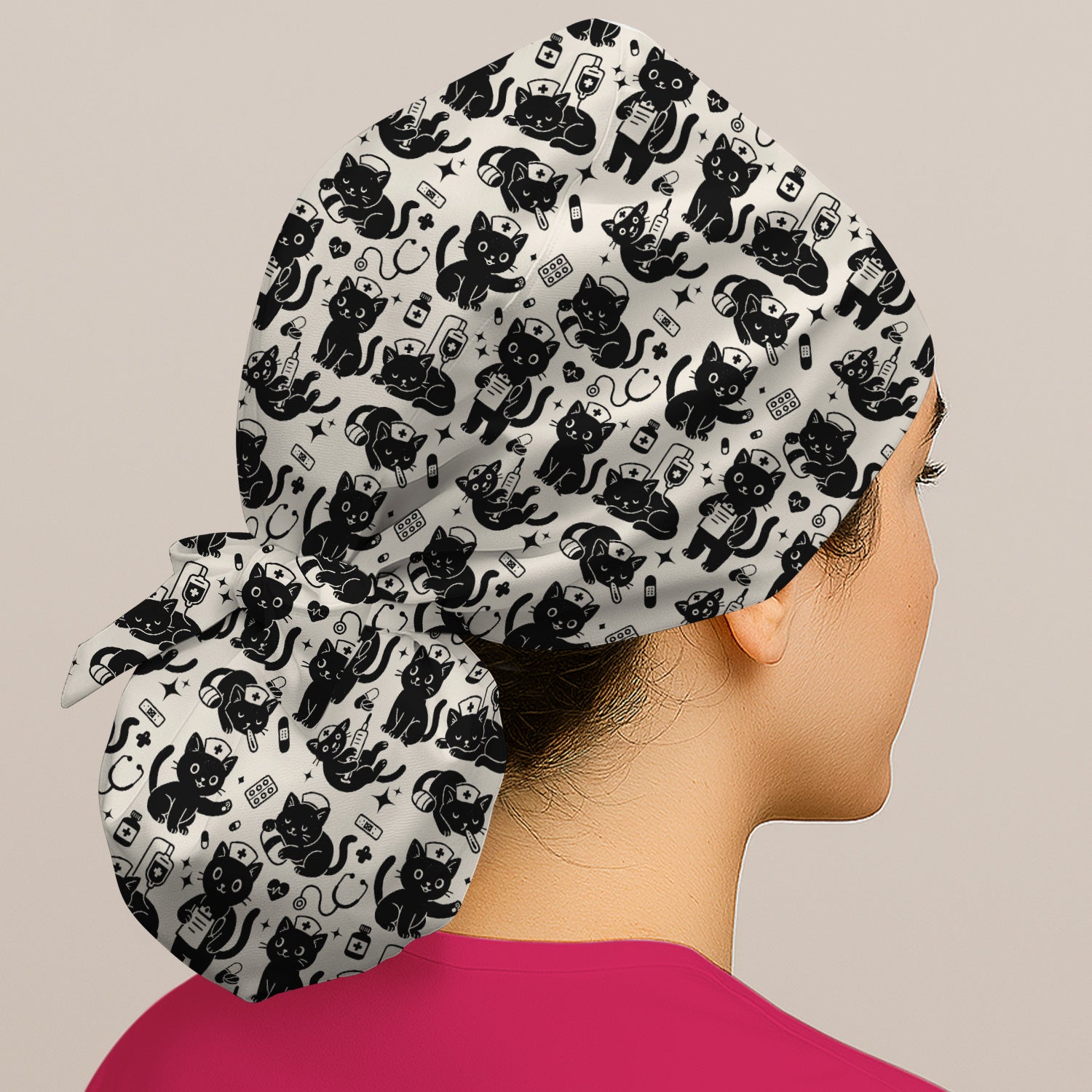 Cute Black Cat Nurse Pattern Scrub Cap, Surgical Caps for Doctors