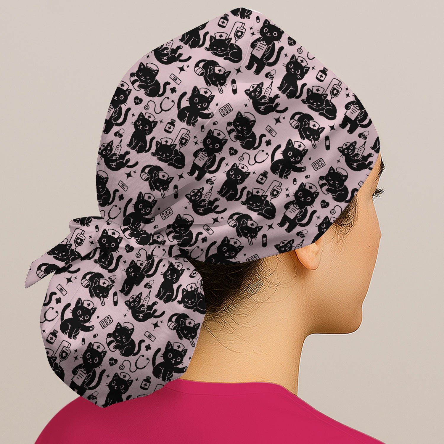 Ponytail Scrub Cap for Women - Cute Nurse Print