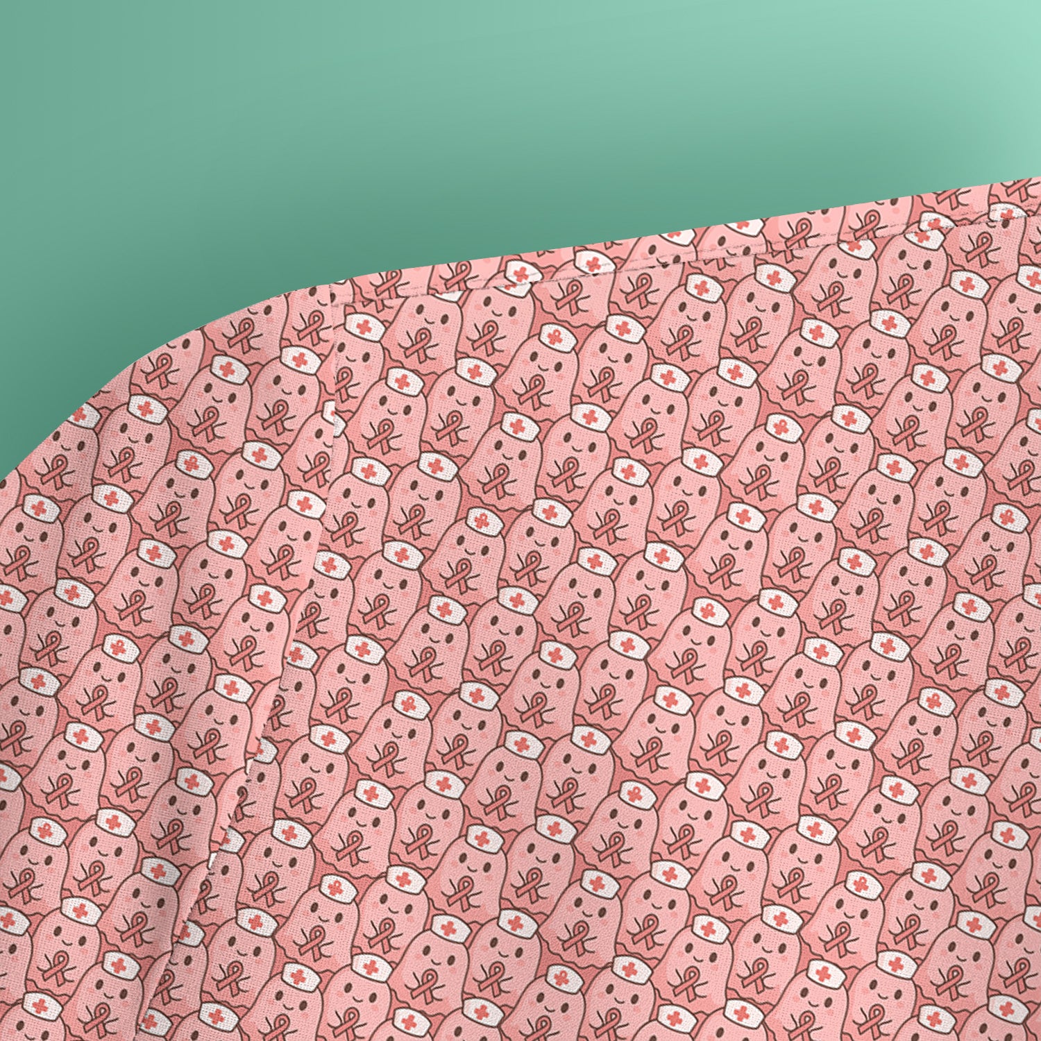 Cute Breast Cancer Awareness Scrub Top - Kawaii Pink Ribbon Ghost Pattern Design - Gift for ER RN LPN Women