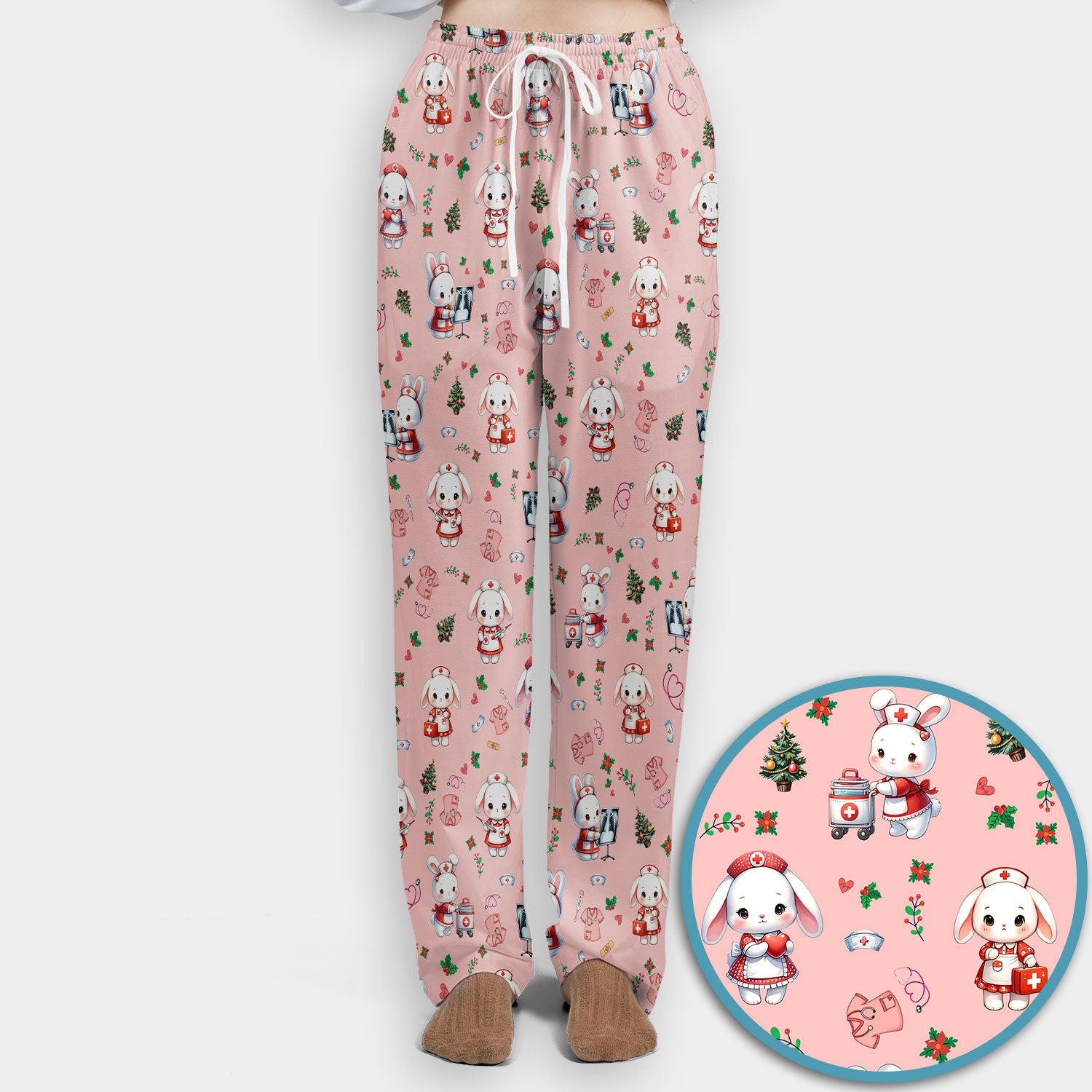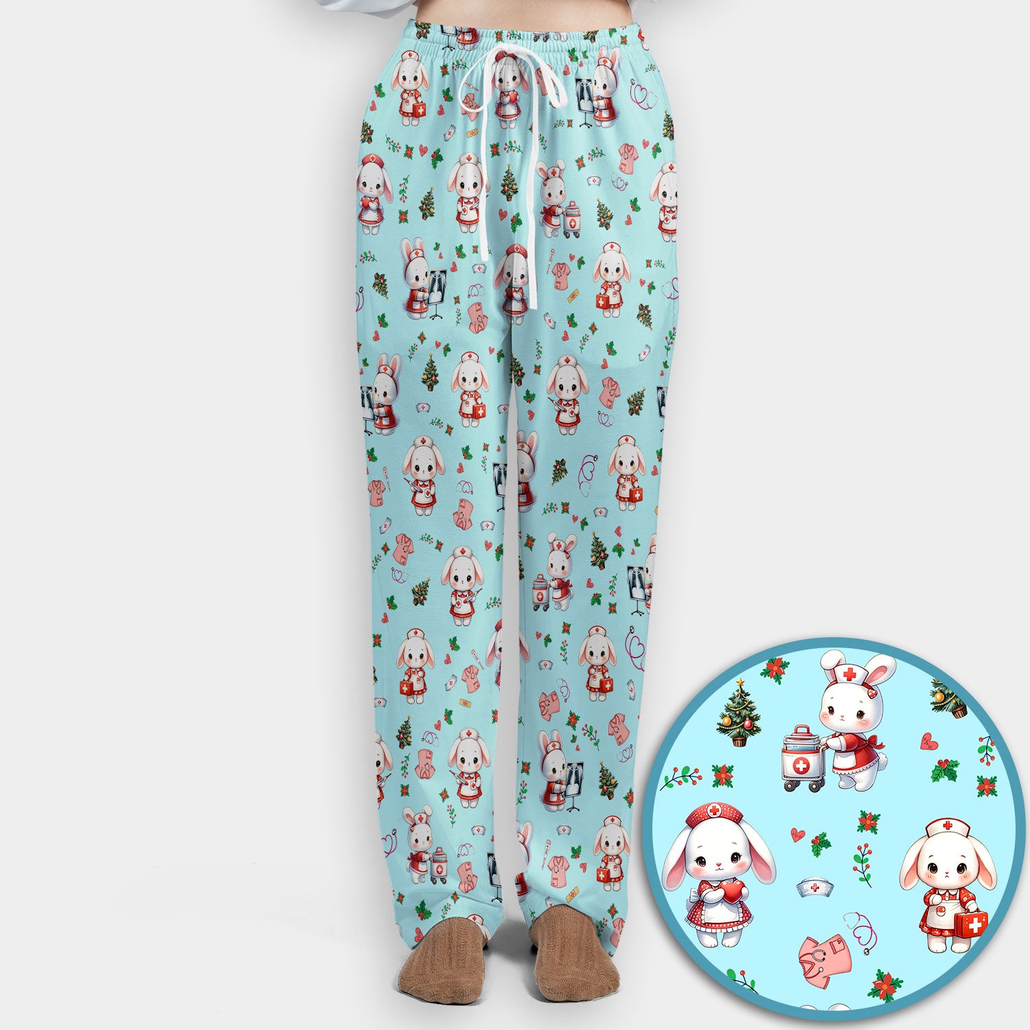 Cute Bunny Scrub Set for Nurse - Adorable Christmas Rabbit Pants and V Neck Top - Funny Holiday Medical Shirt Gift