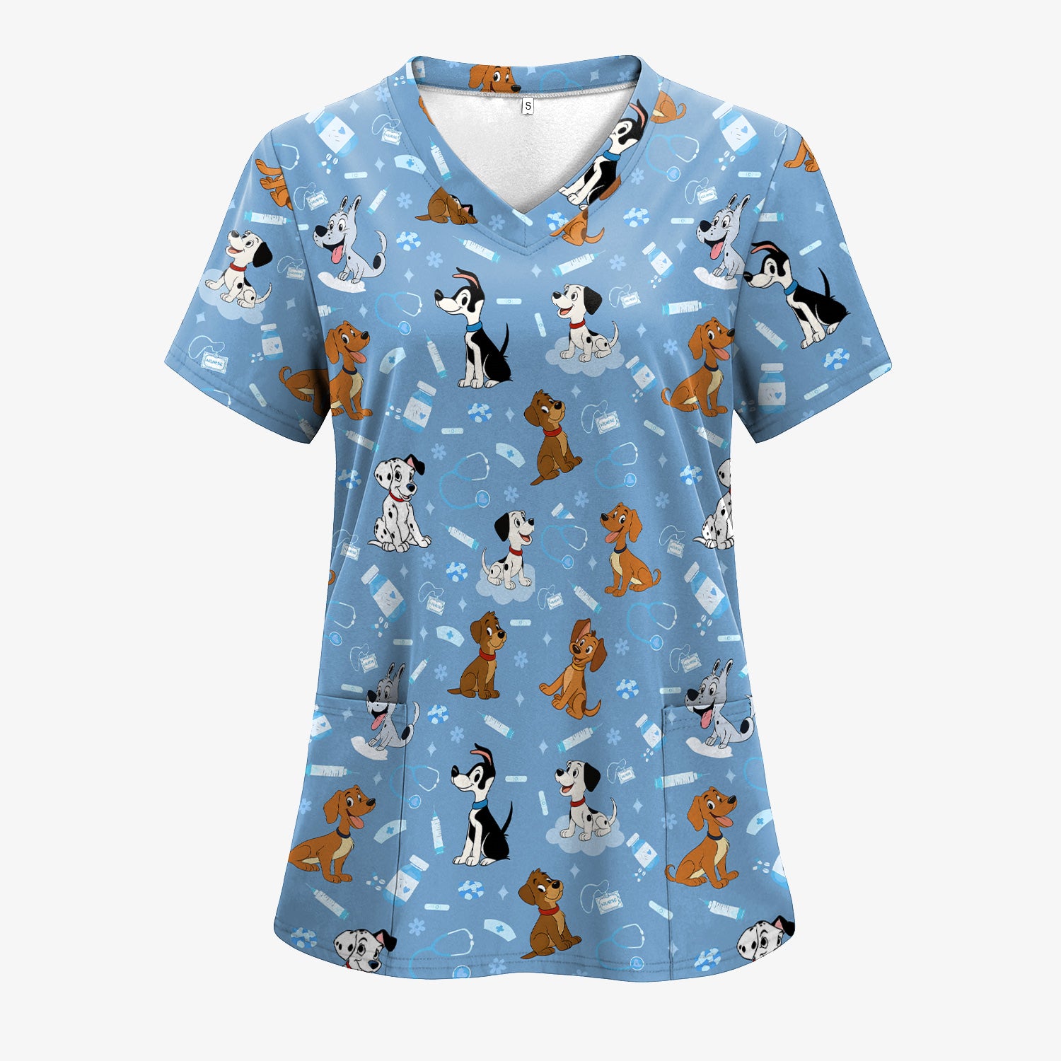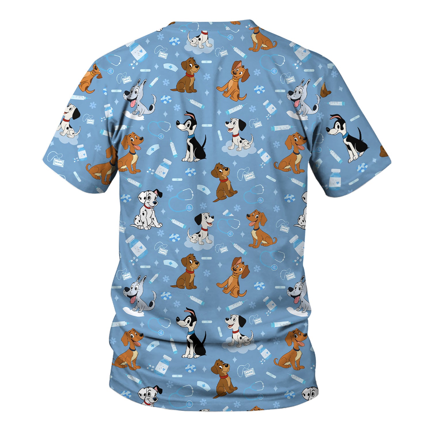 Cute Cartoon Dog Medical Shirt - Puppy Pattern Top for Veterinarians, Vet Techs, Animal Lovers - Fun Pet Care Gift for Dog Mom and Dad