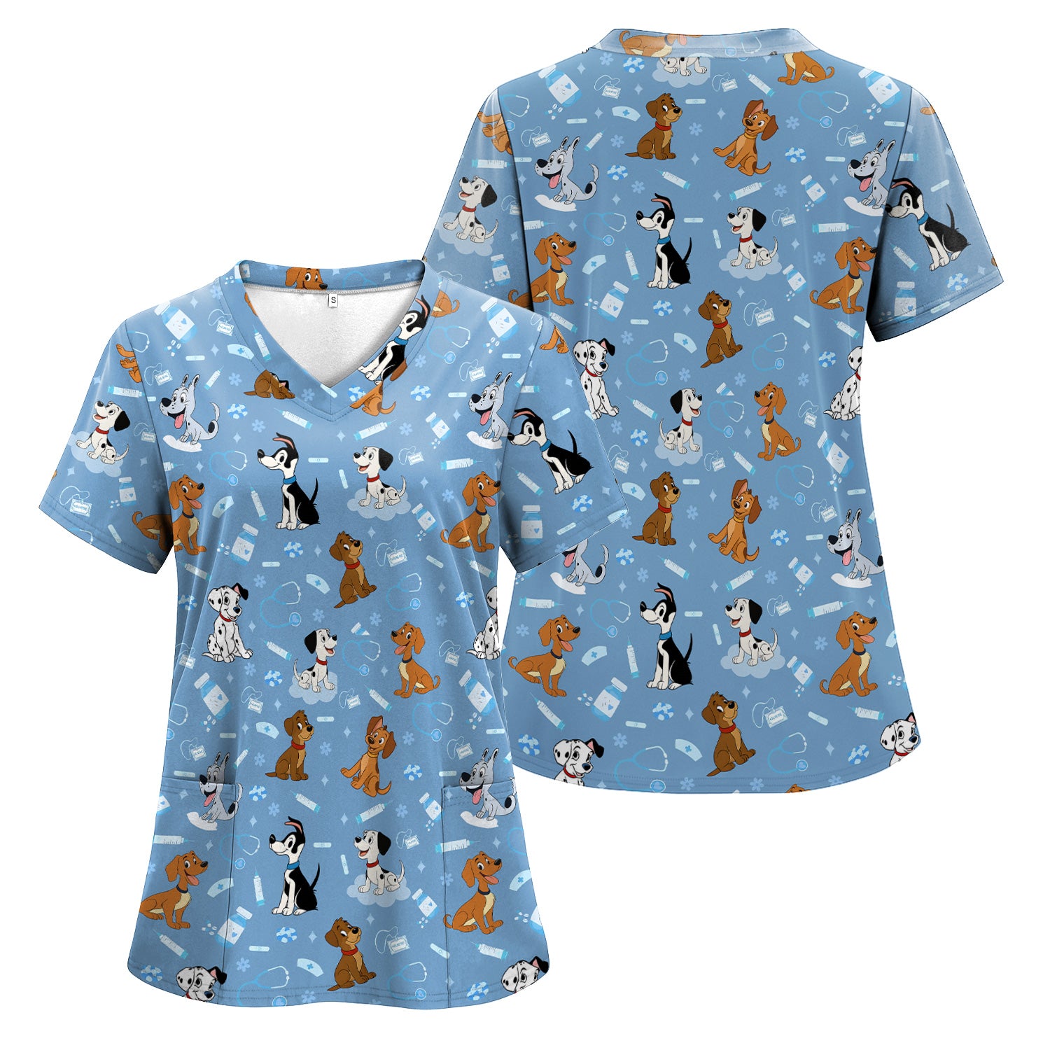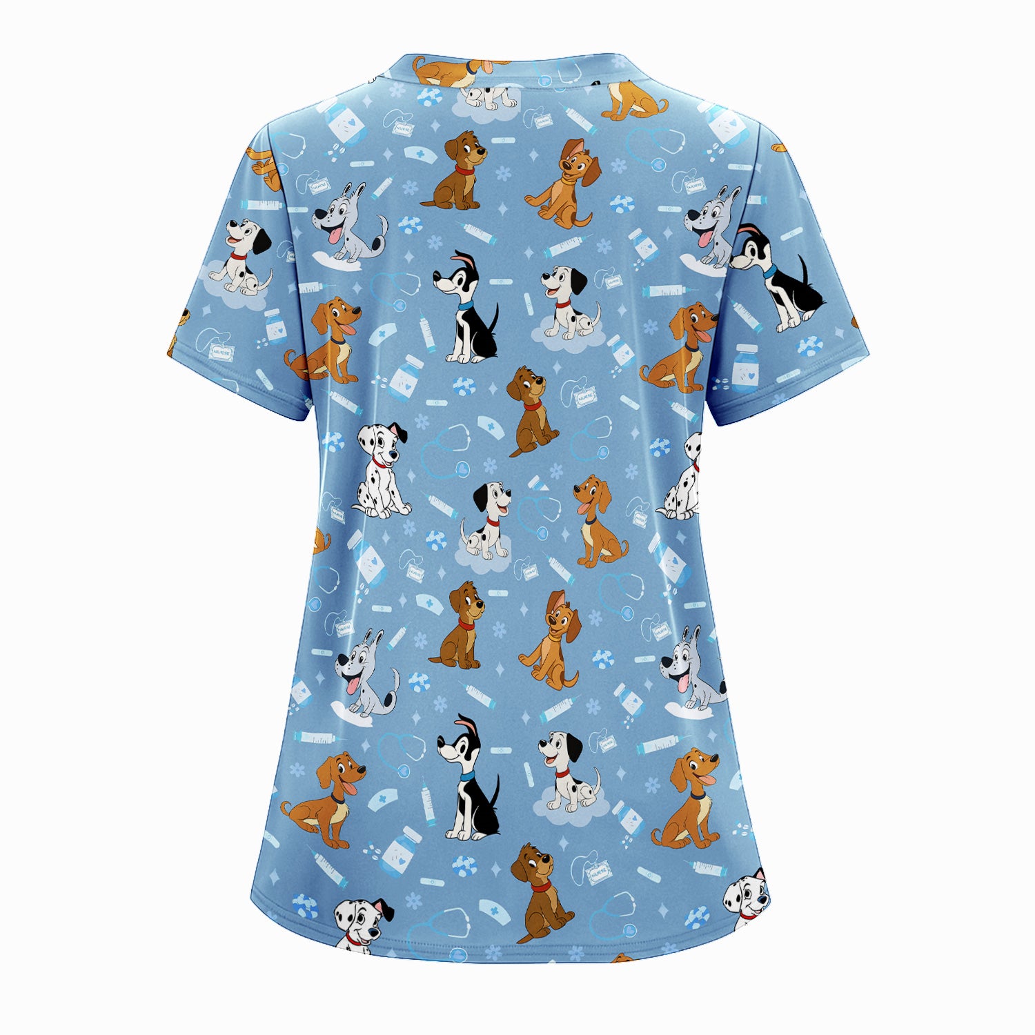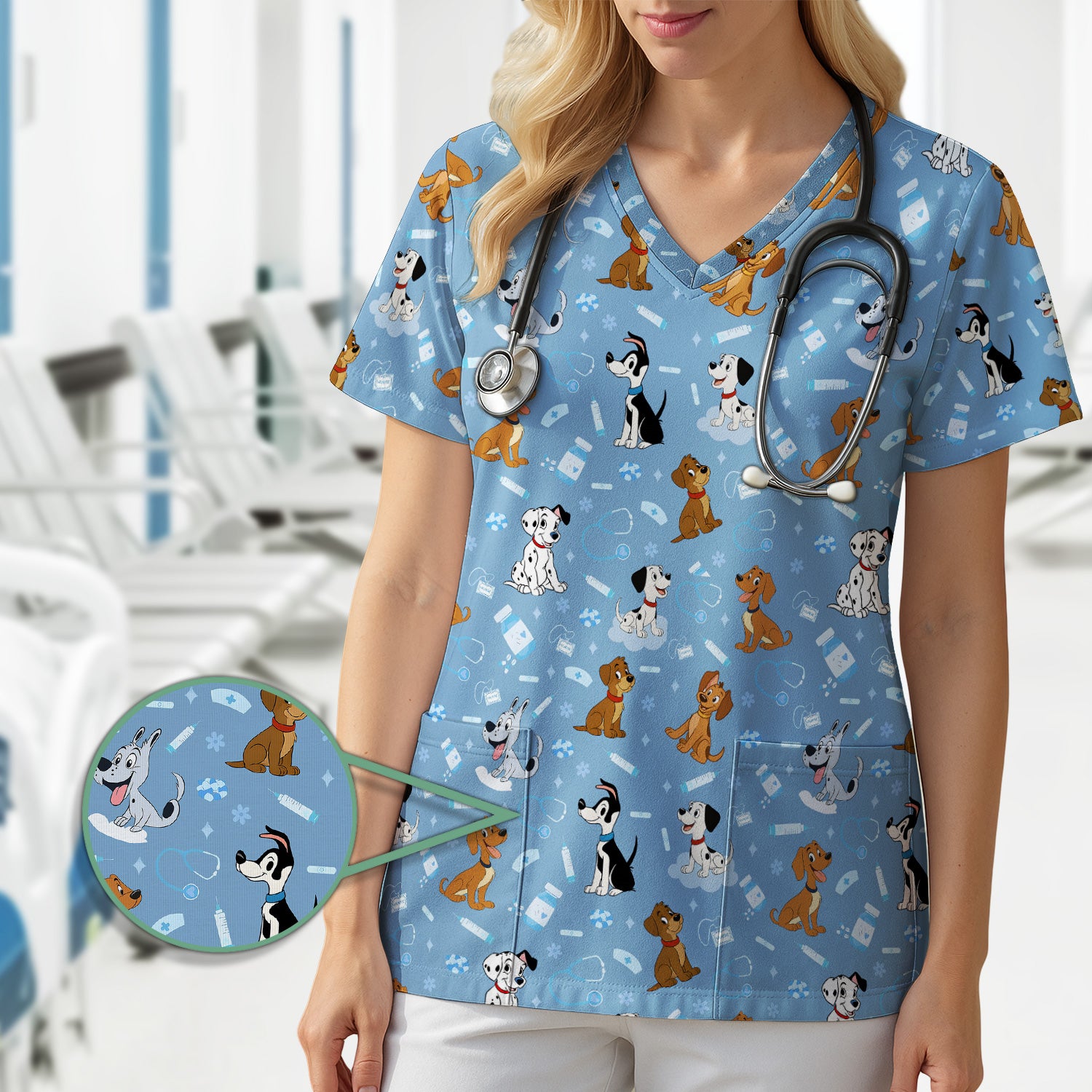 Cute Cartoon Dog Scrubs Top - Fun Puppy Pattern Medical Shirt for Veterinarians, Vet Techs, Animal Lovers - Pet Care Workwear Gift