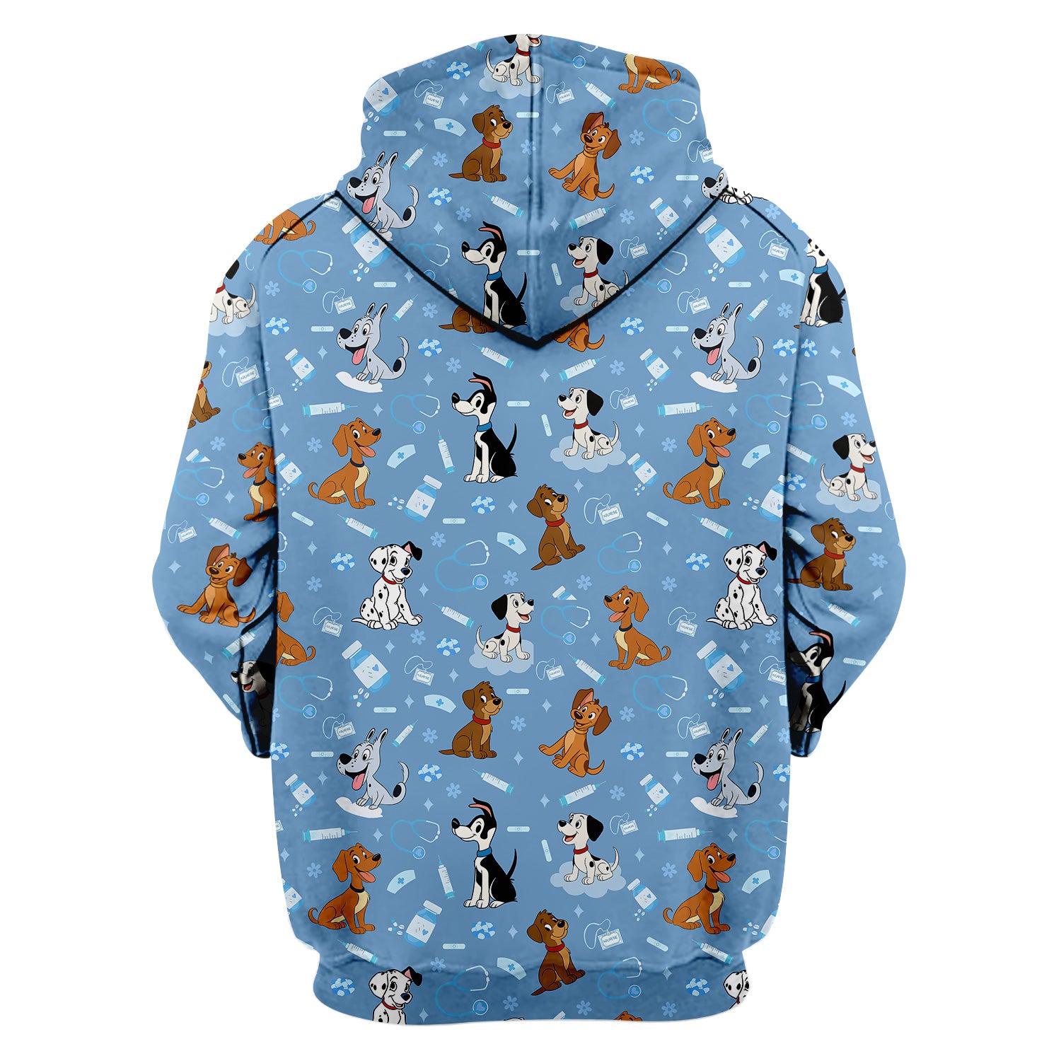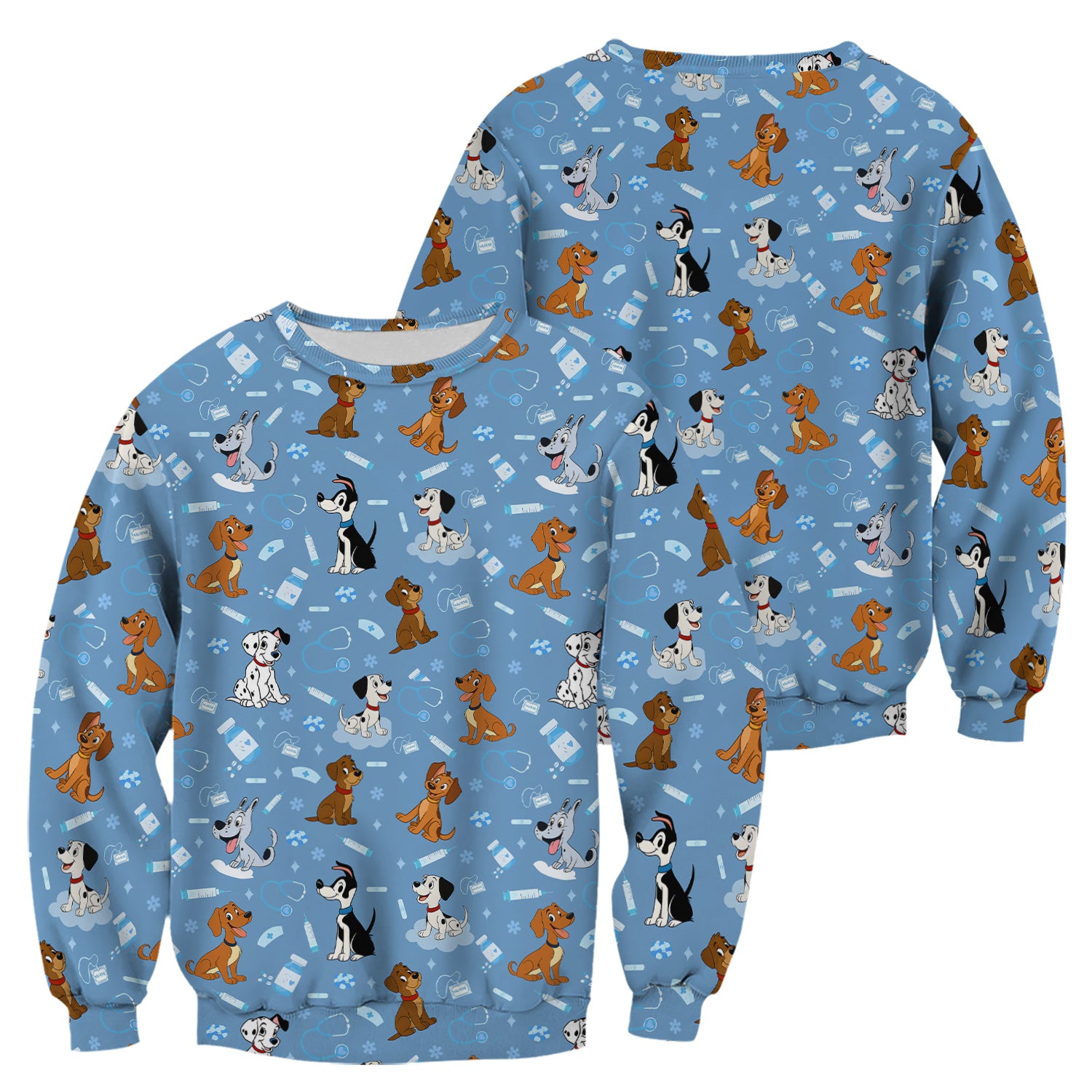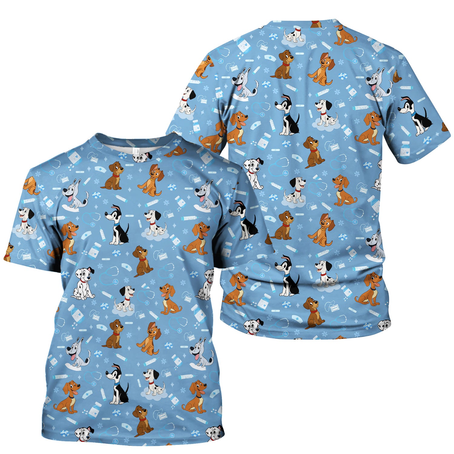 Cute Cartoon Dog Scrubs Top - Fun Puppy Pattern Medical Shirt for Veterinarians, Vet Techs, Animal Lovers - Pet Care Workwear Gift