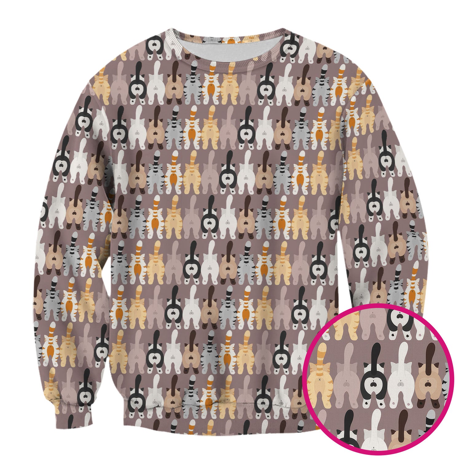 Cute Cat Butt Pattern Scrub Top, Funny Cat Nursing Shirt, Comfortable Scrubs For Nurses
