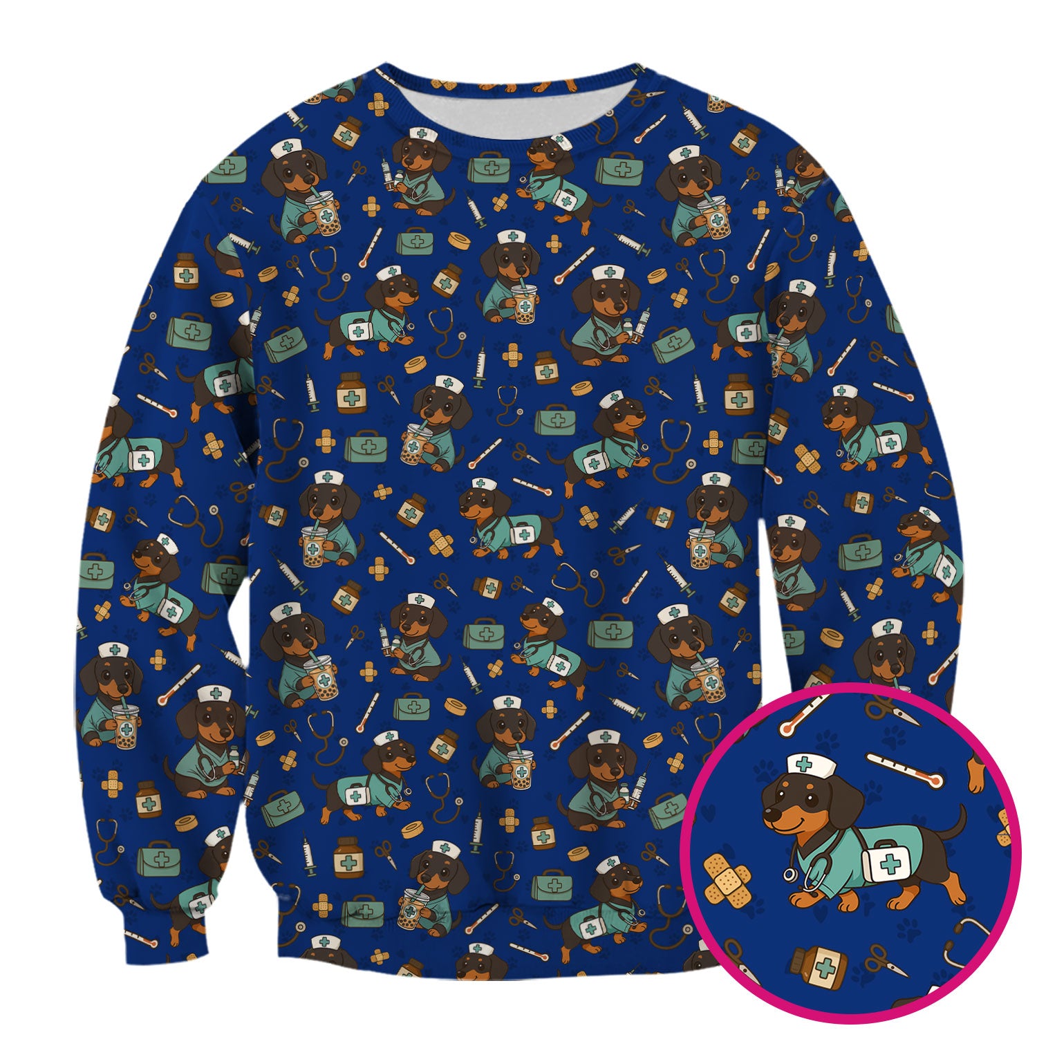 Cute Dachshund Nurse Scrub Top - Funny Dog Print Medical Shirt for Women & Men - Veterinary & Nurse Gift Idea, RN CNA Doctor Scrubs