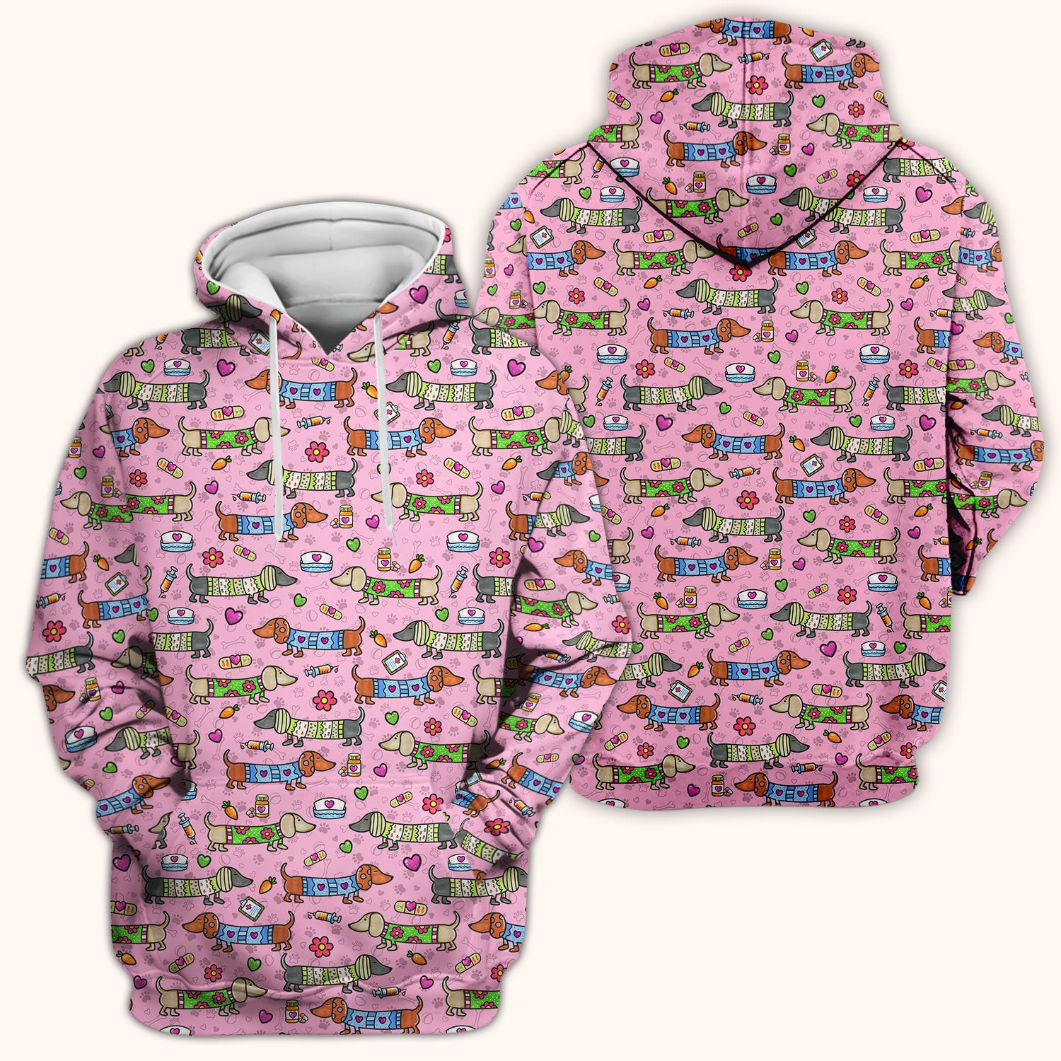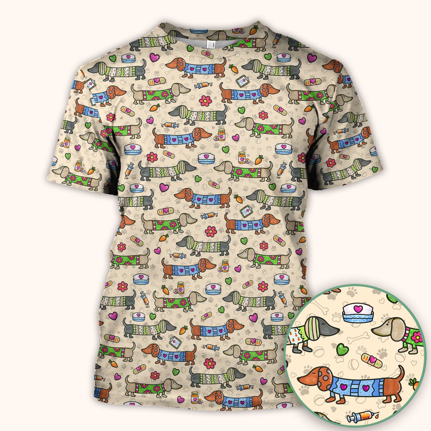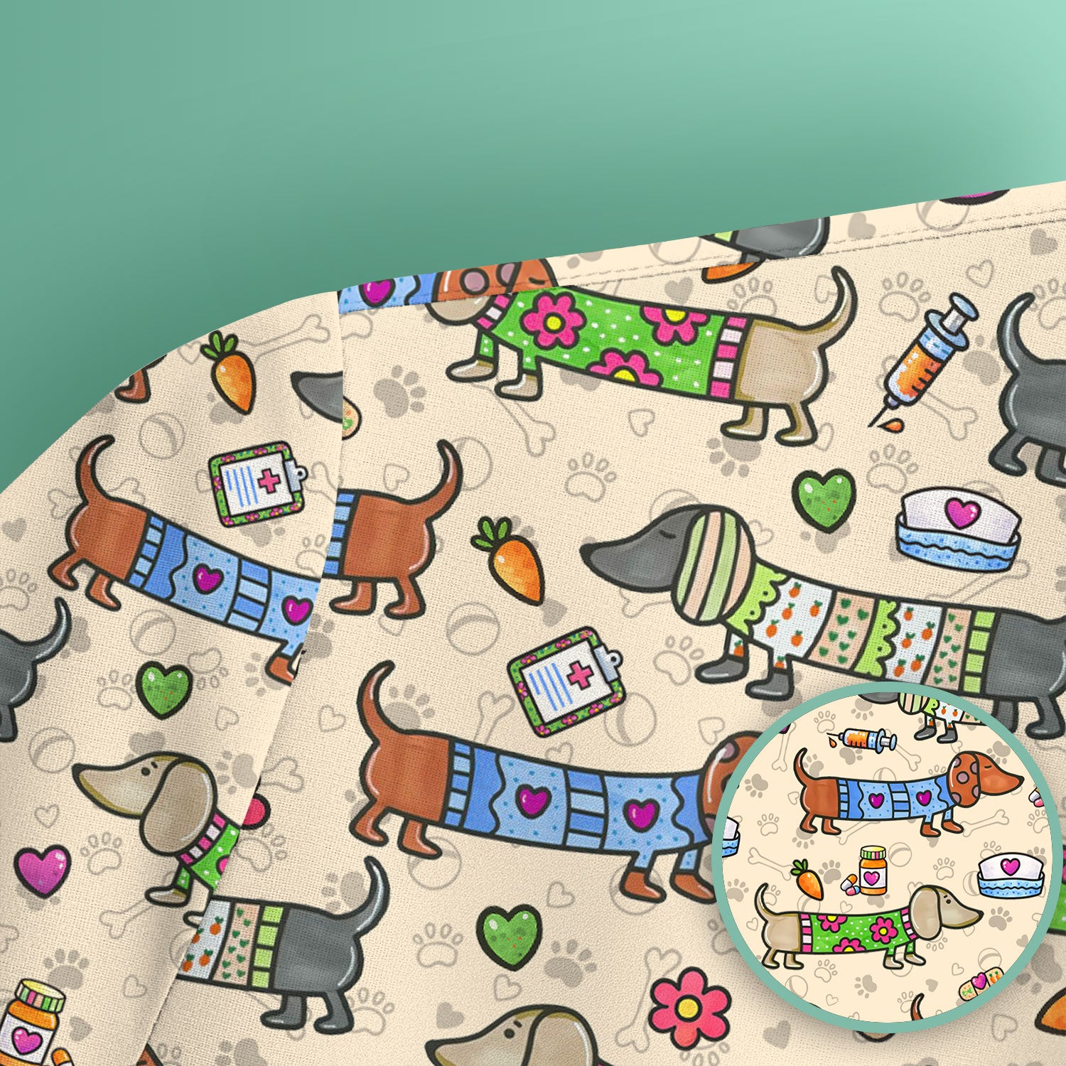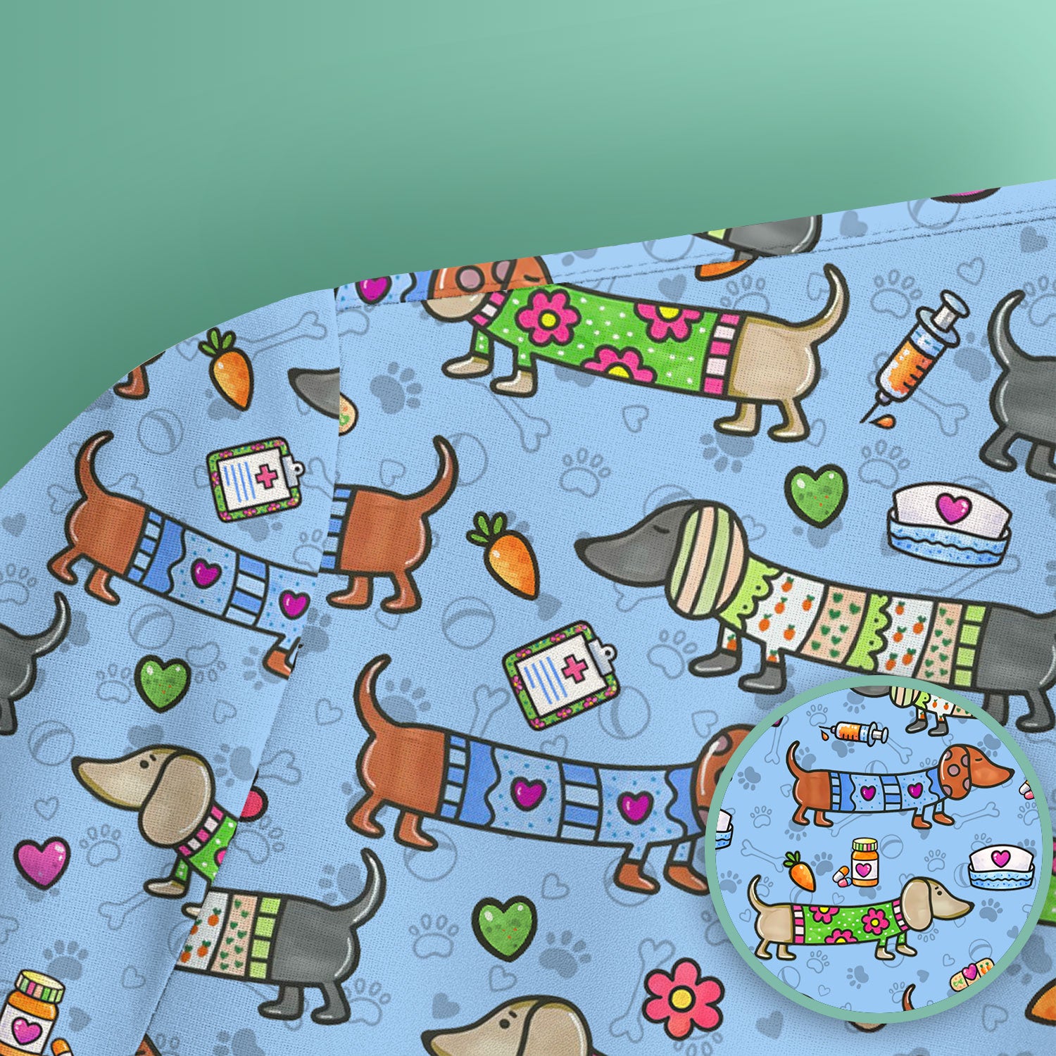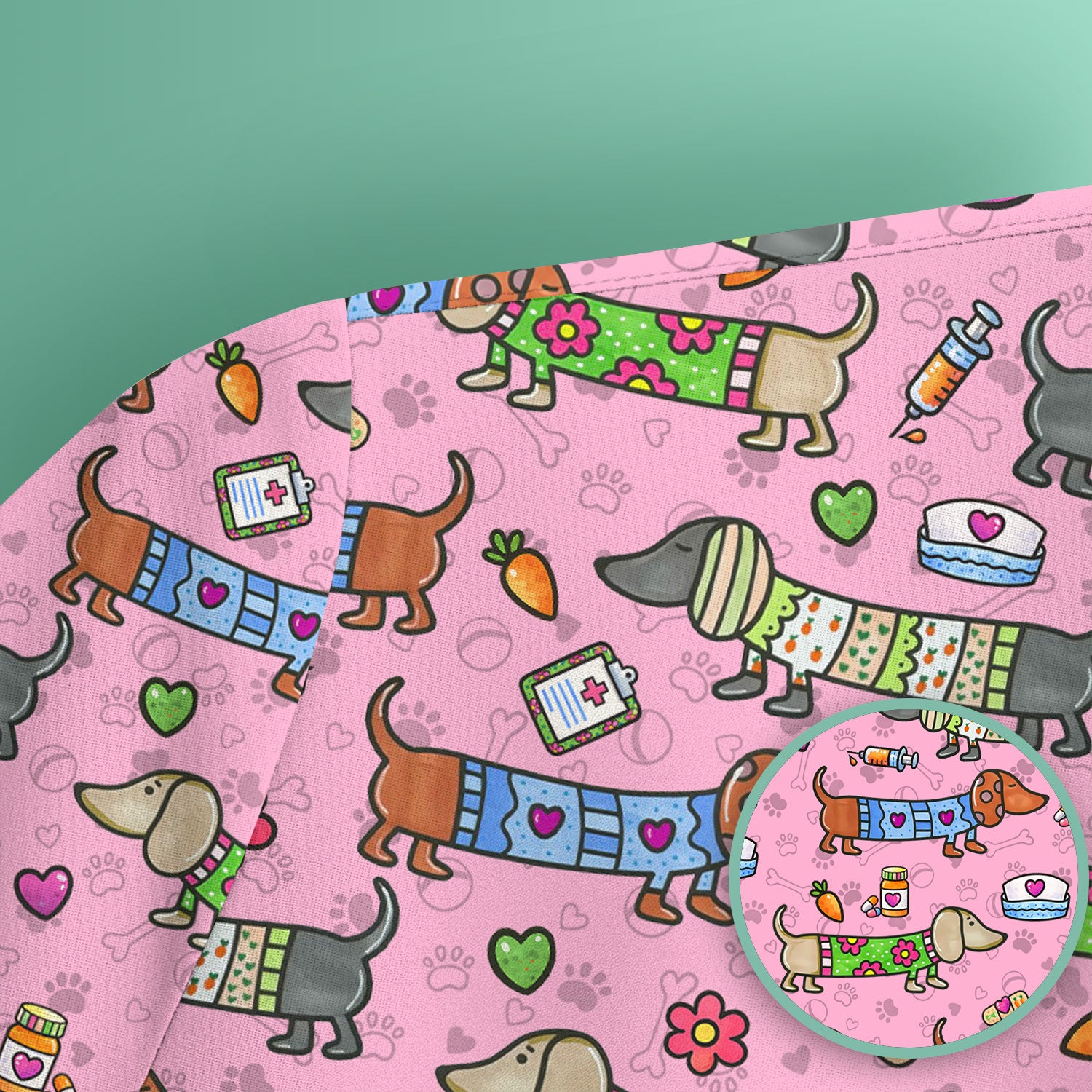 Cute Dachshund Nurse Scrub Top, Funny Wiener Dog Nursing Shirt, Breathable Fabrics Nursing Uniform