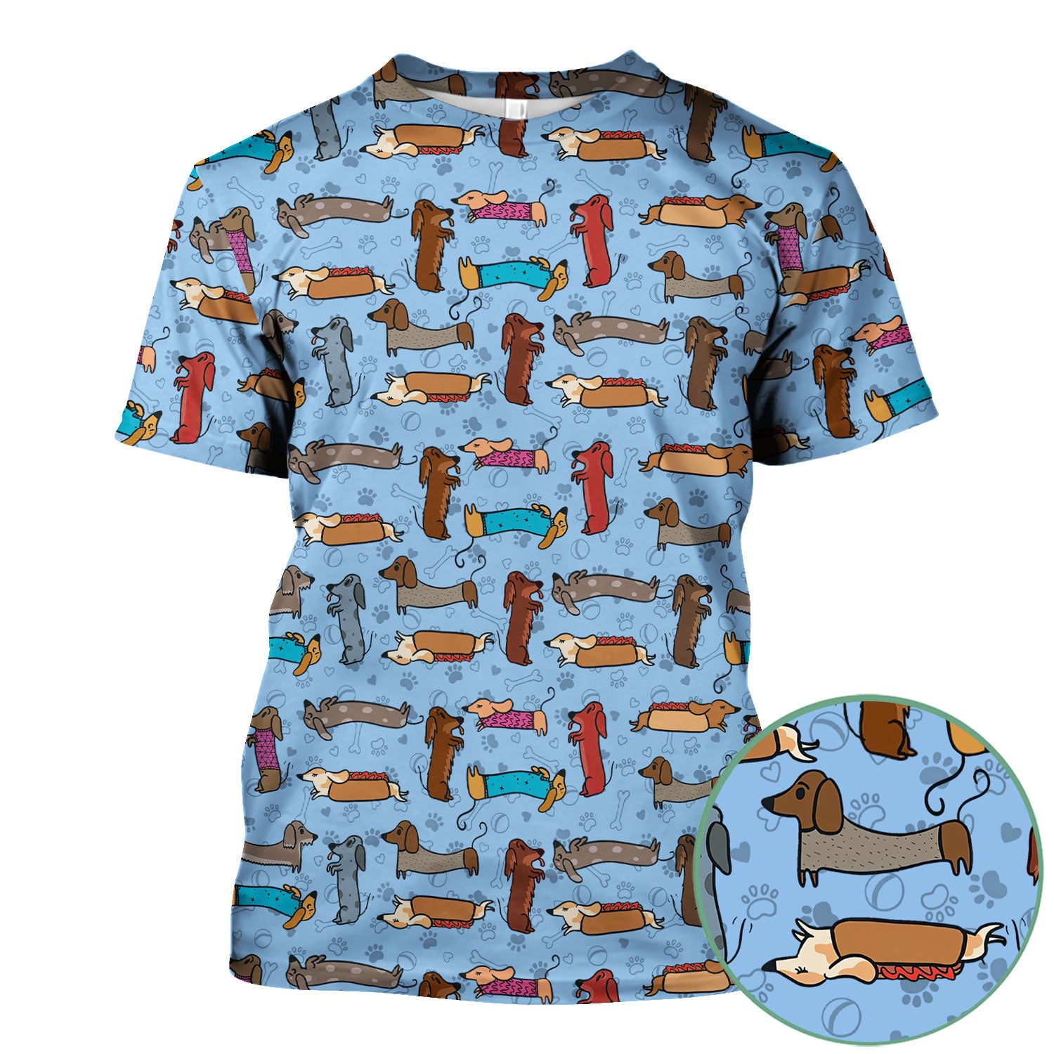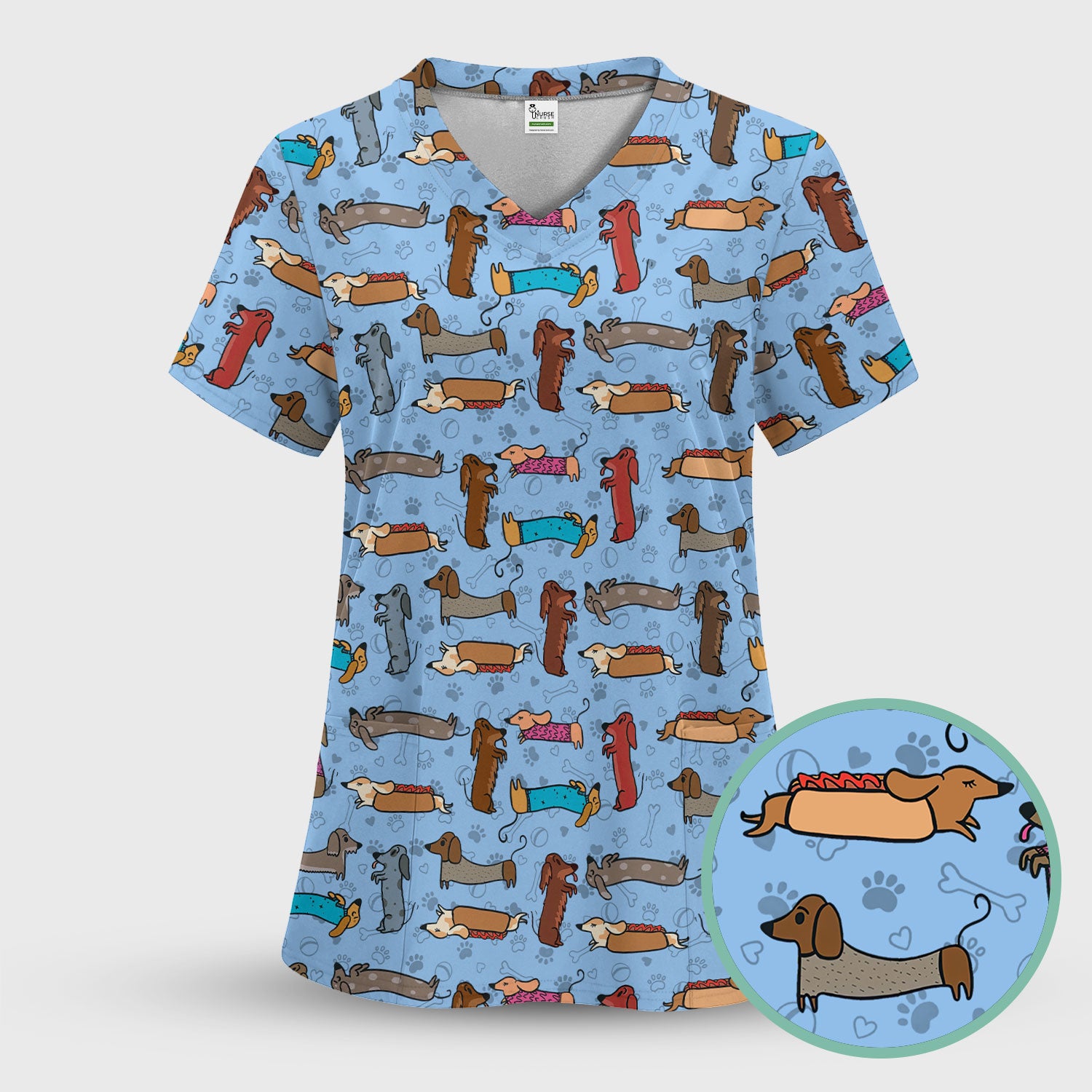 Cute Dachshund Scrub Top for Nurses - Colorful Wiener Dog Print Medical Uniform Shirt - Fun Sausage Dog Pattern Veterinary Workwear