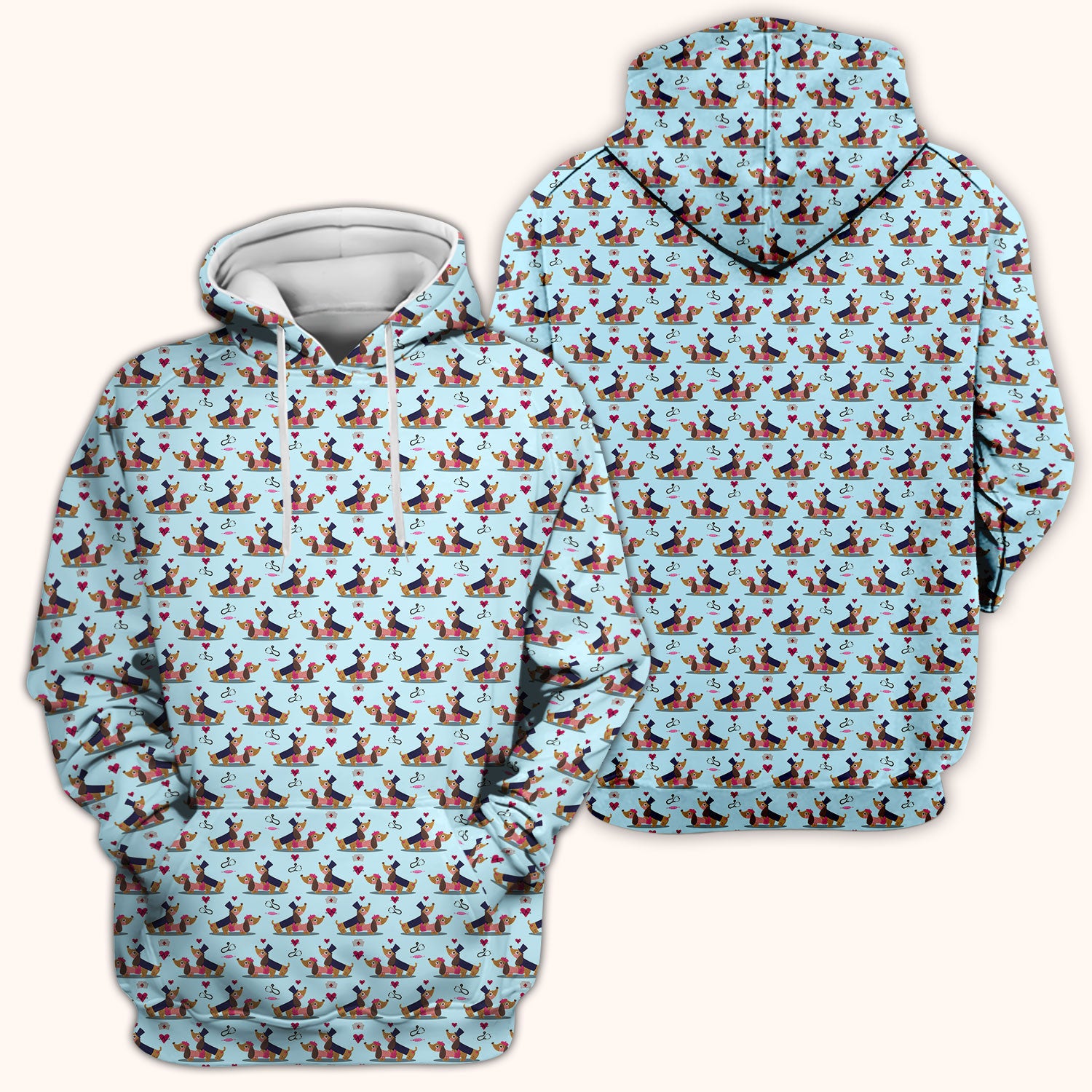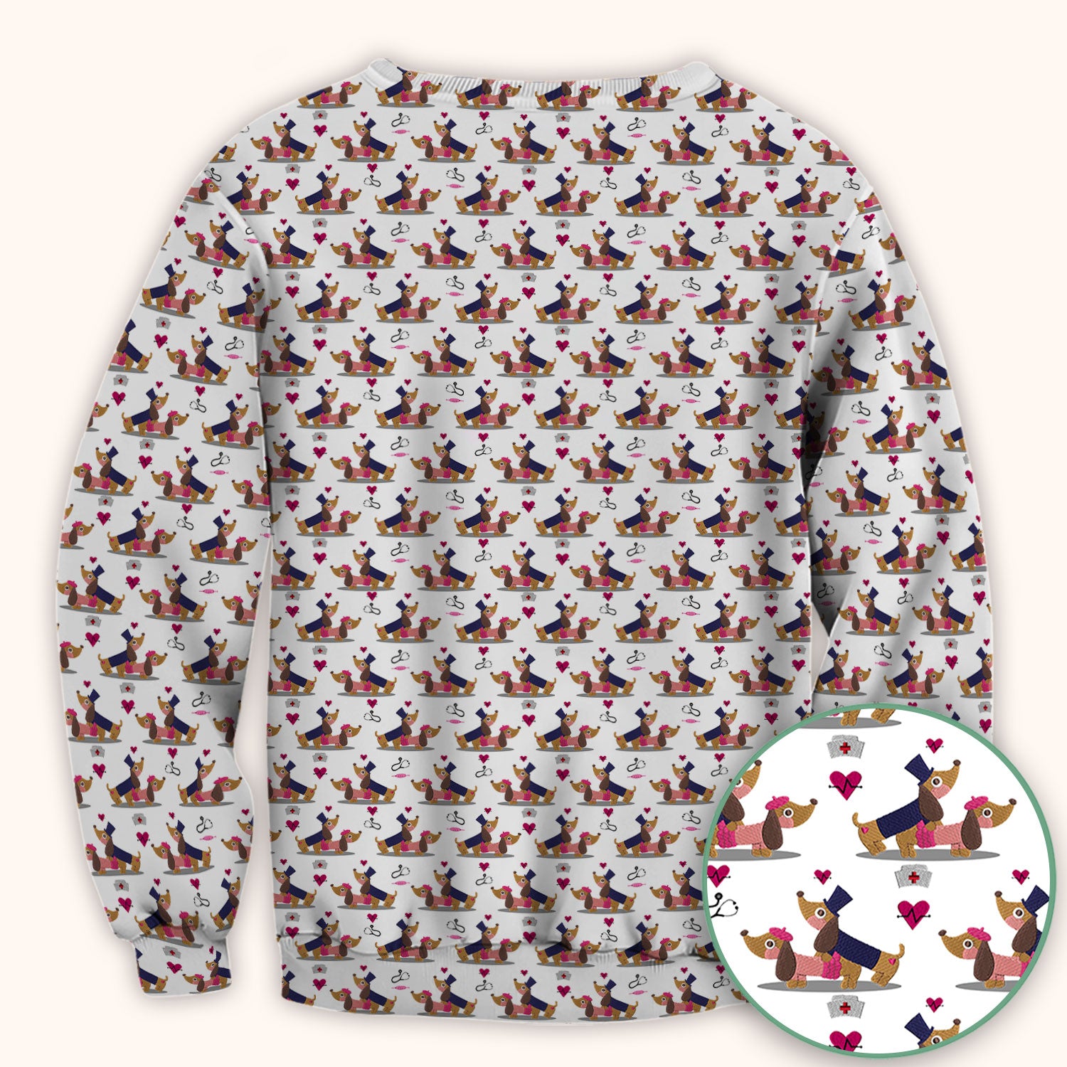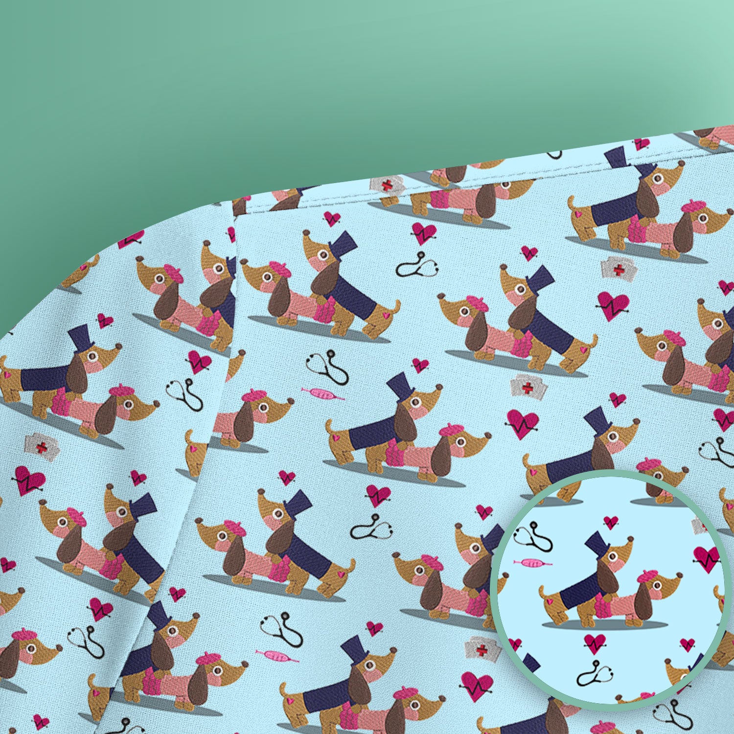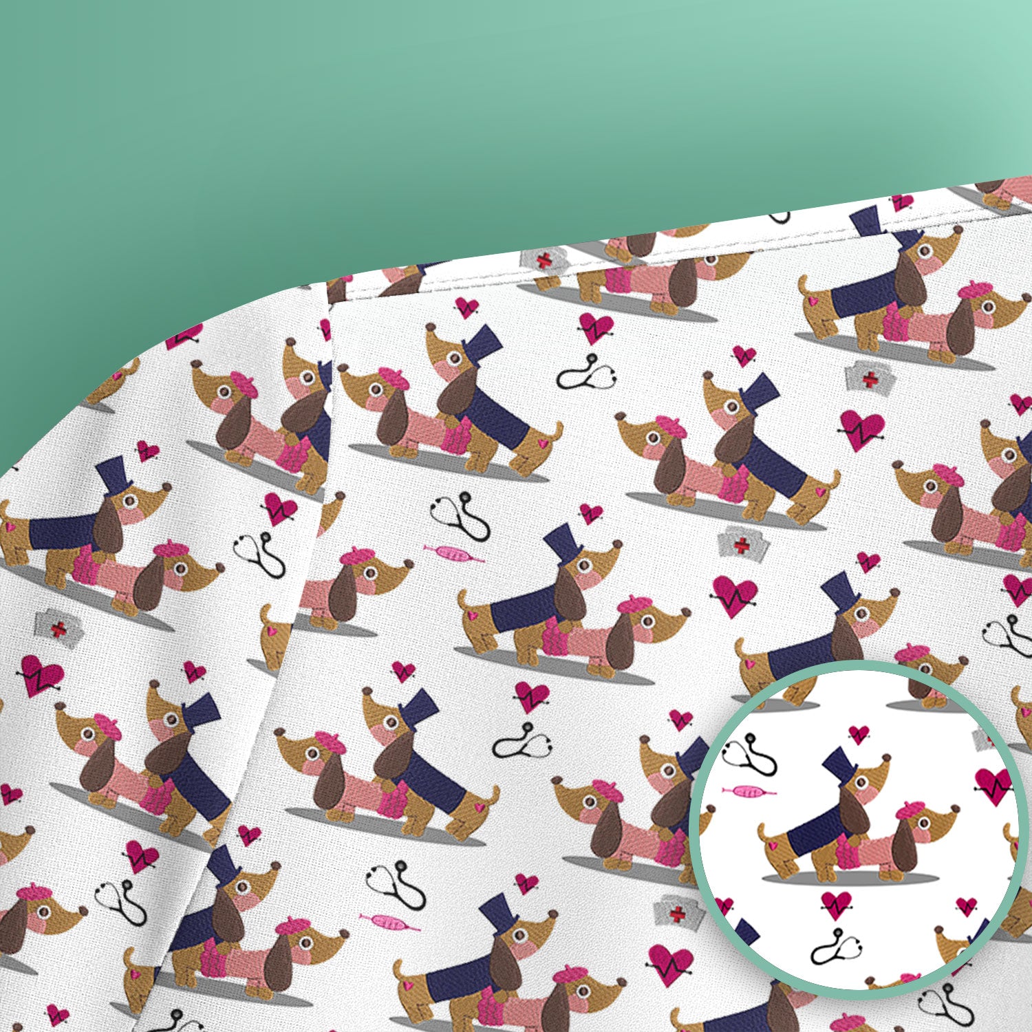 Cute Dachshund Valentine Nurse Scrub Top - Funny Gift for Women