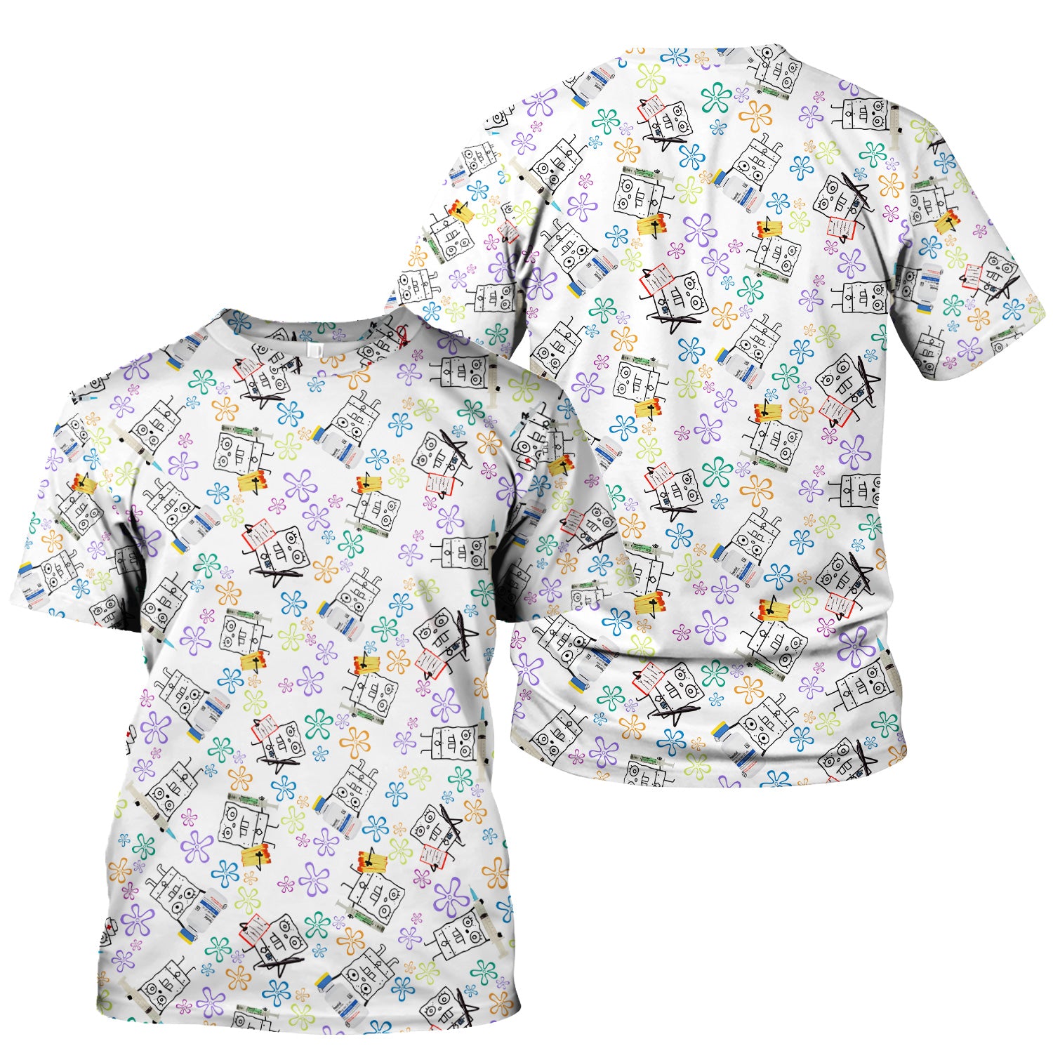 Cute Doodle Bob Energy Drink Nurse Shirt - Cartoon Medical Graphic Tee for Women - Gift for RN MD CNA RT
