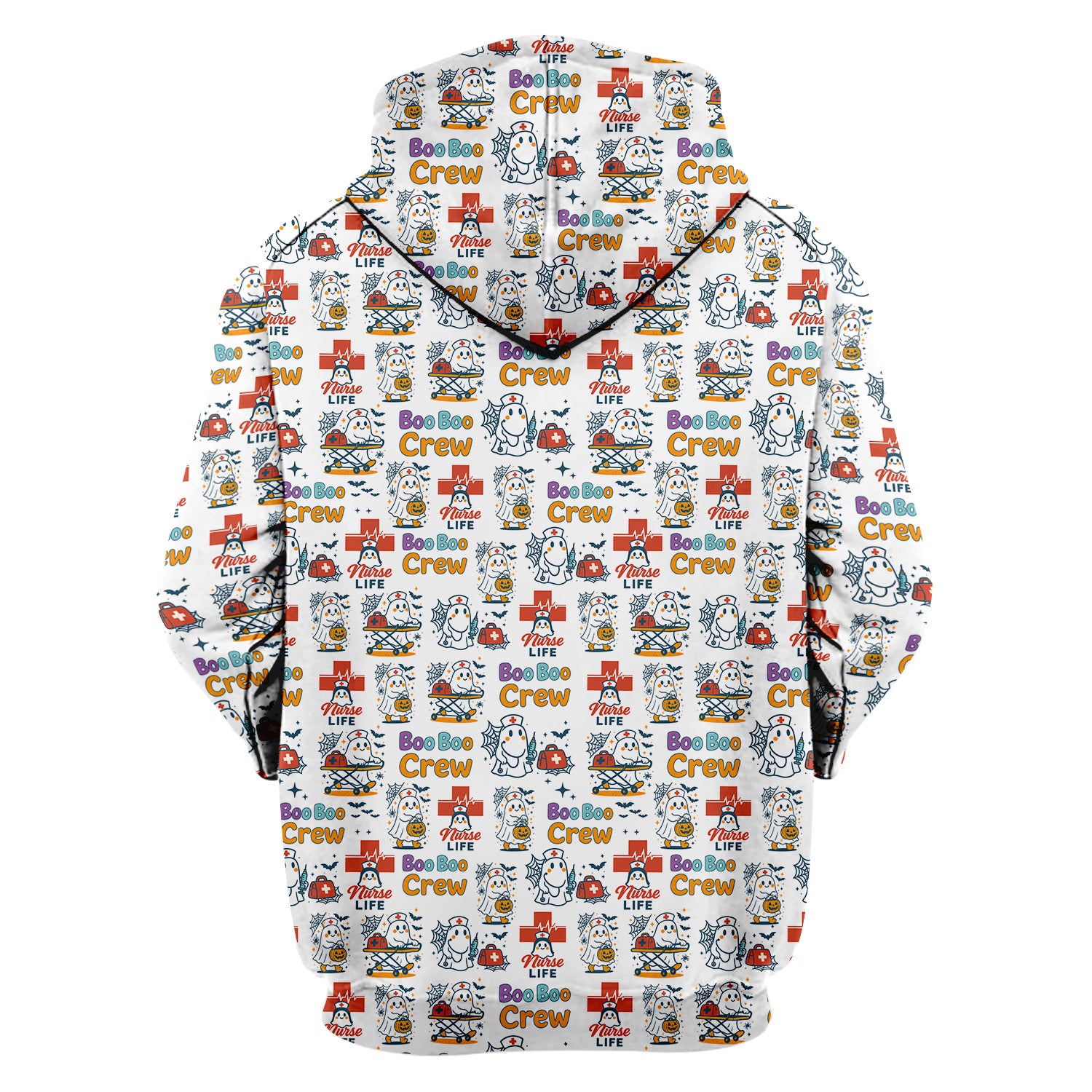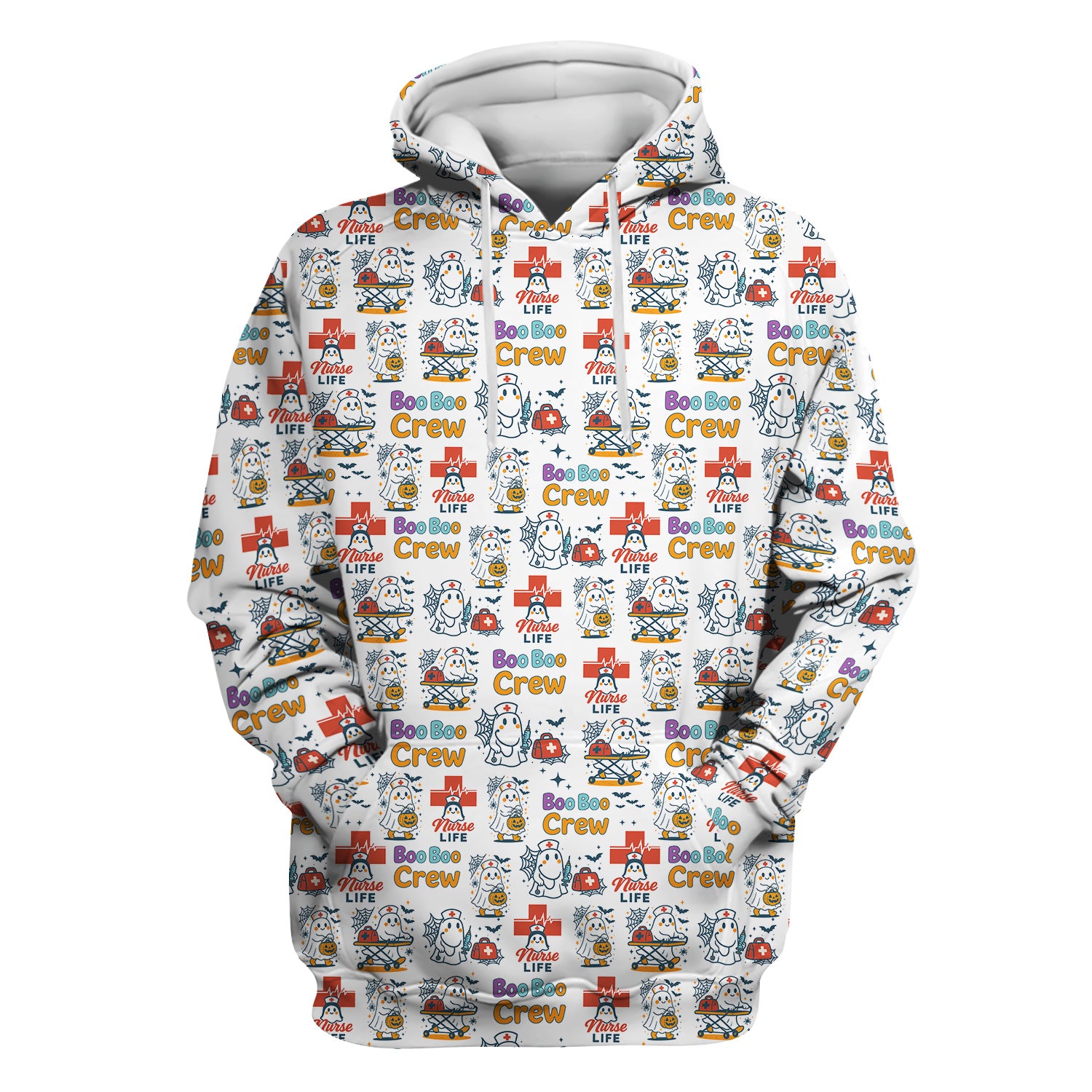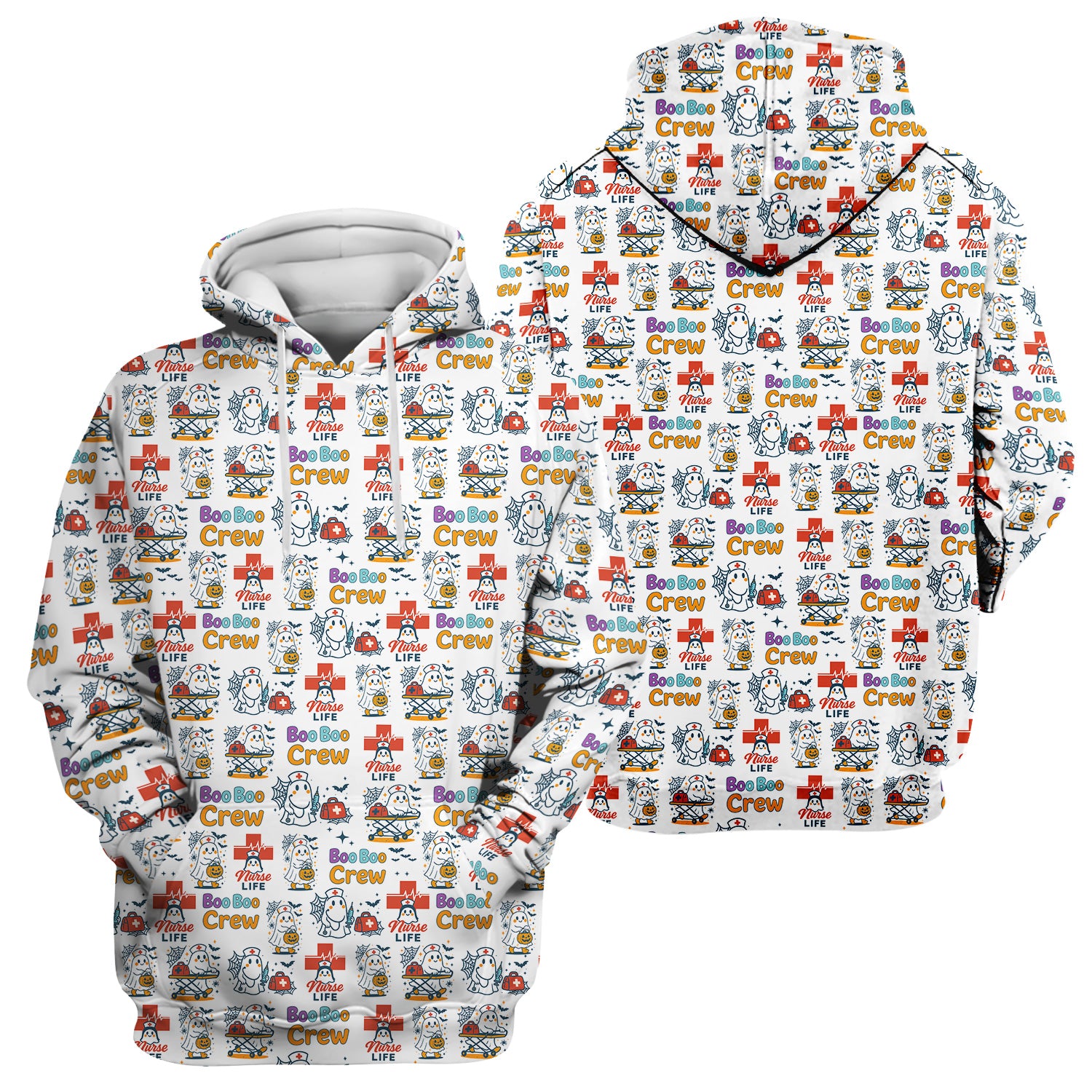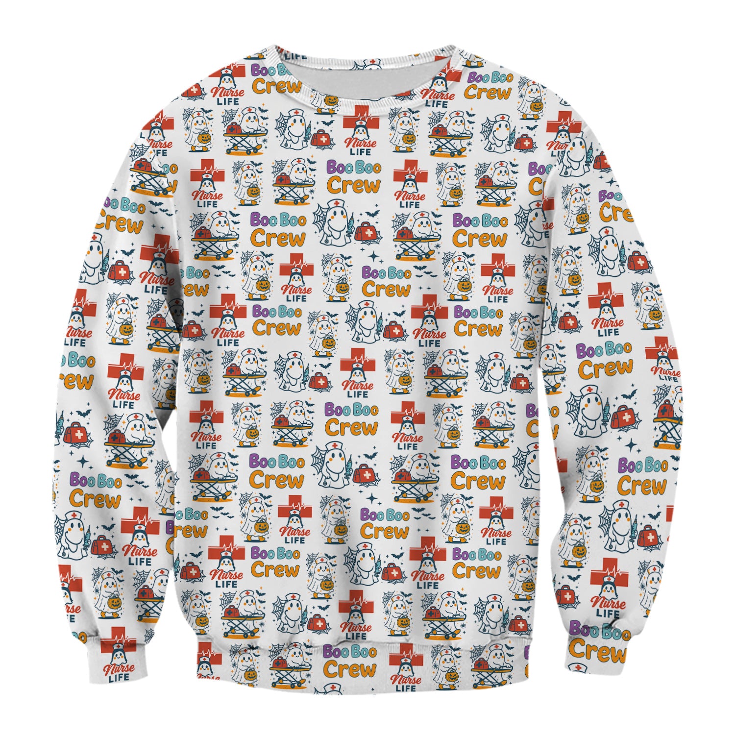 Cute Ghost Nurse Shirt for Halloween - Spooky Boo Boo Crew & Medical Icons Graphic Tee - Gift for ER LPN CNA Nurses