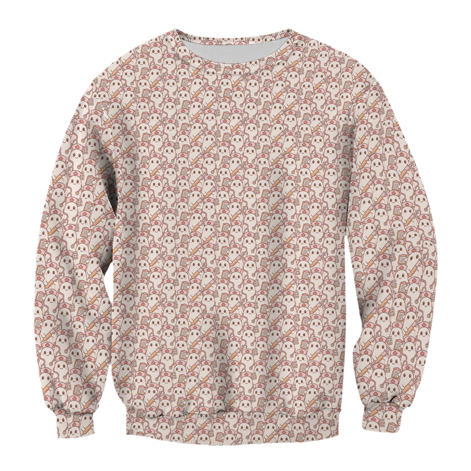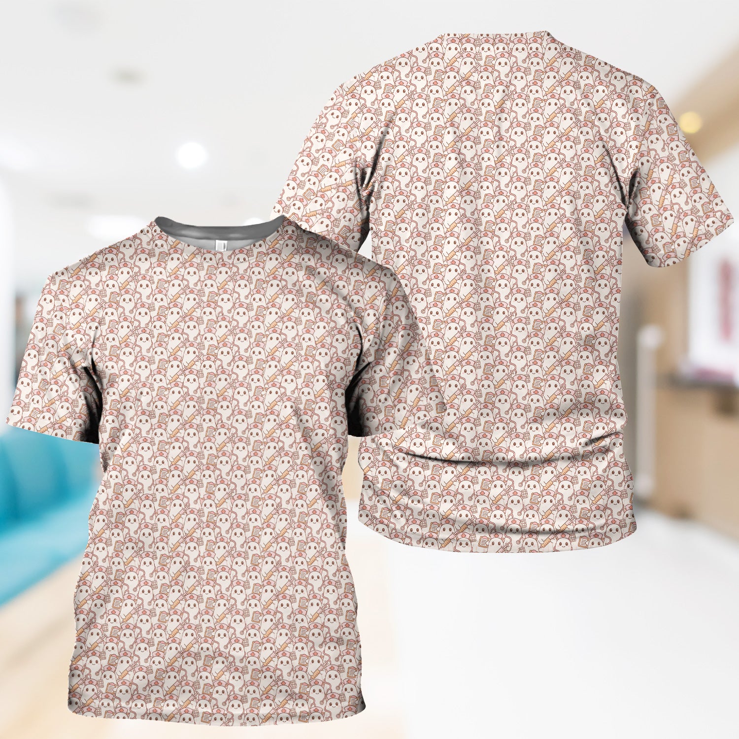 Cute Ghost Nurse Shirt - Spooky Ghost with Syringe & Pills Graphic Tee - Gift for Women RN LPN & Pediatric Nurses