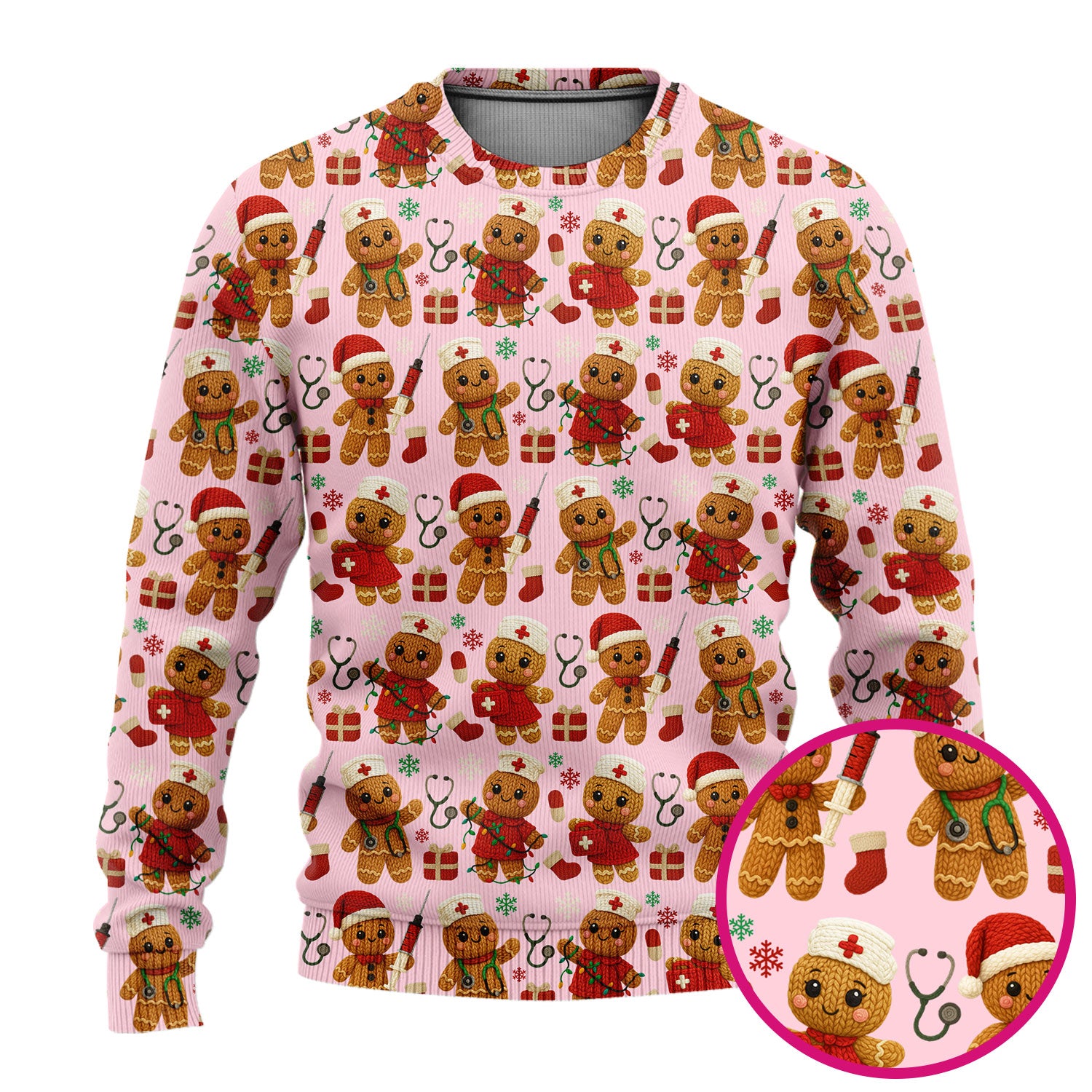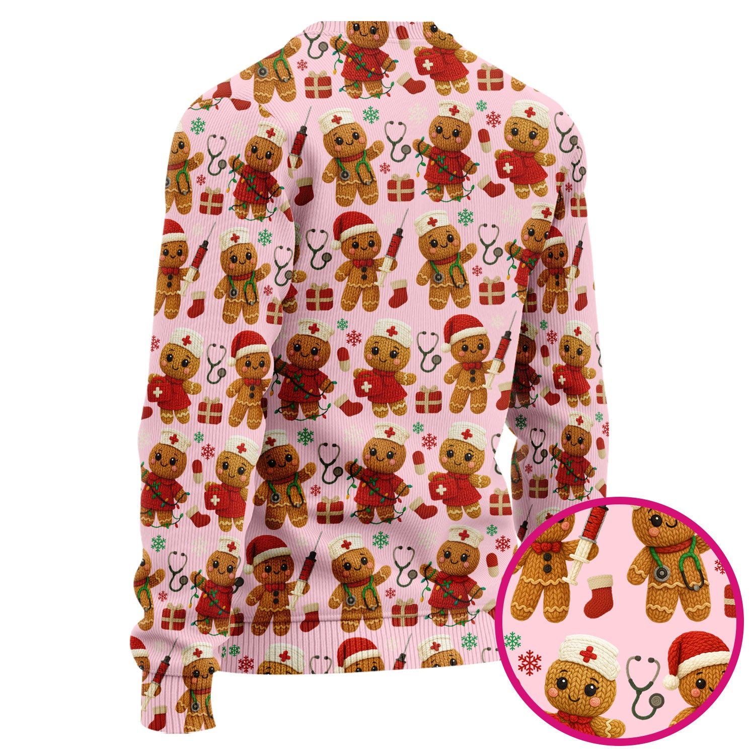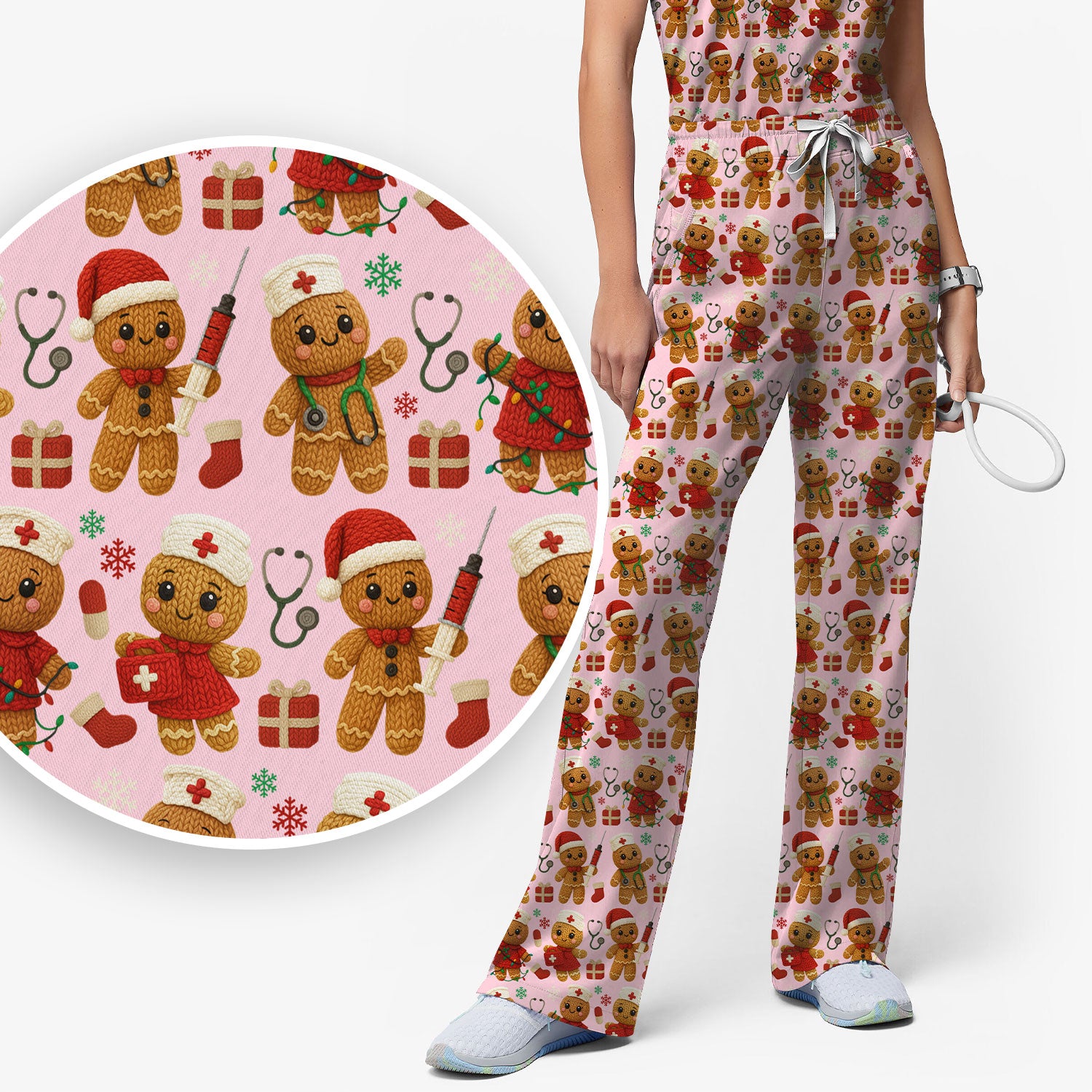 Cute Gingerbread Nurse Scrubs for Women - Christmas Pattern Scrub Top & Pants - Festive Holiday Scrubs with Charming Gingerbread Design