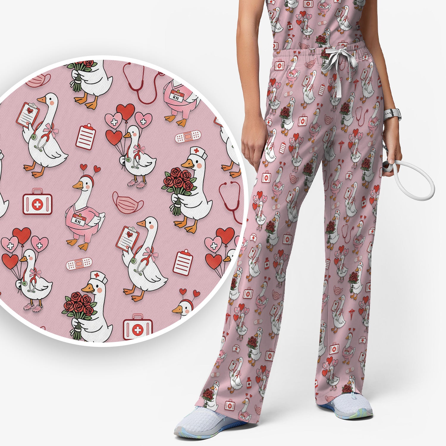 Cute Goose Nurse Medical Pattern Scrub Set, Women's Scrub Sets