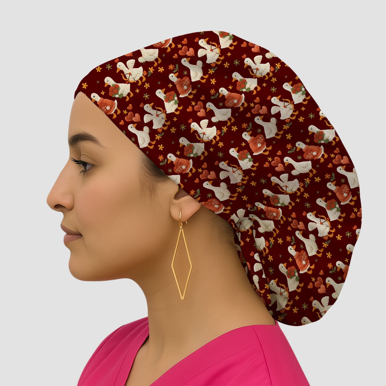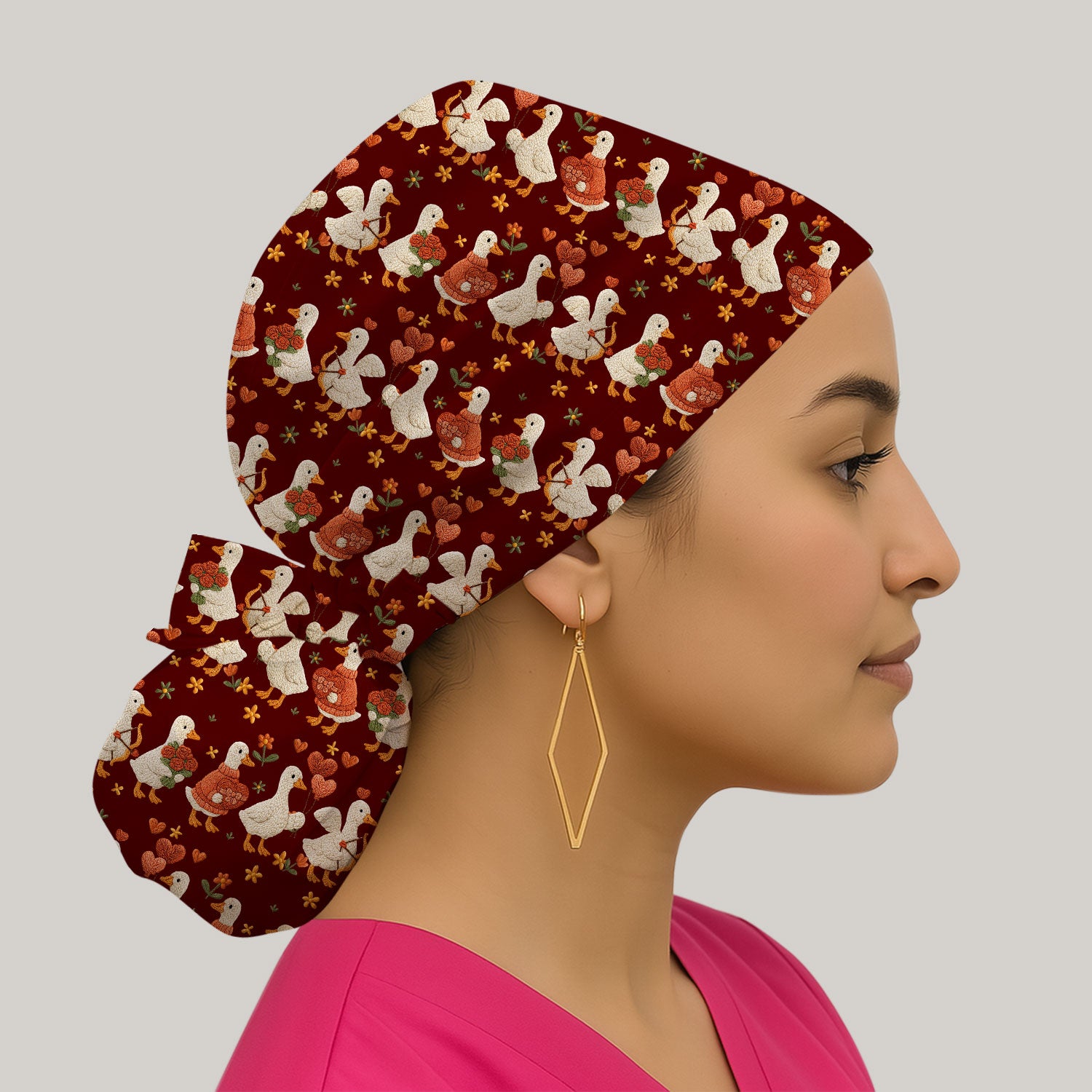 Cute Goose Nurse Scrub Cap, Valentine Farm Medical Pattern Hat, Breathable Fabrics Nursing Uniform