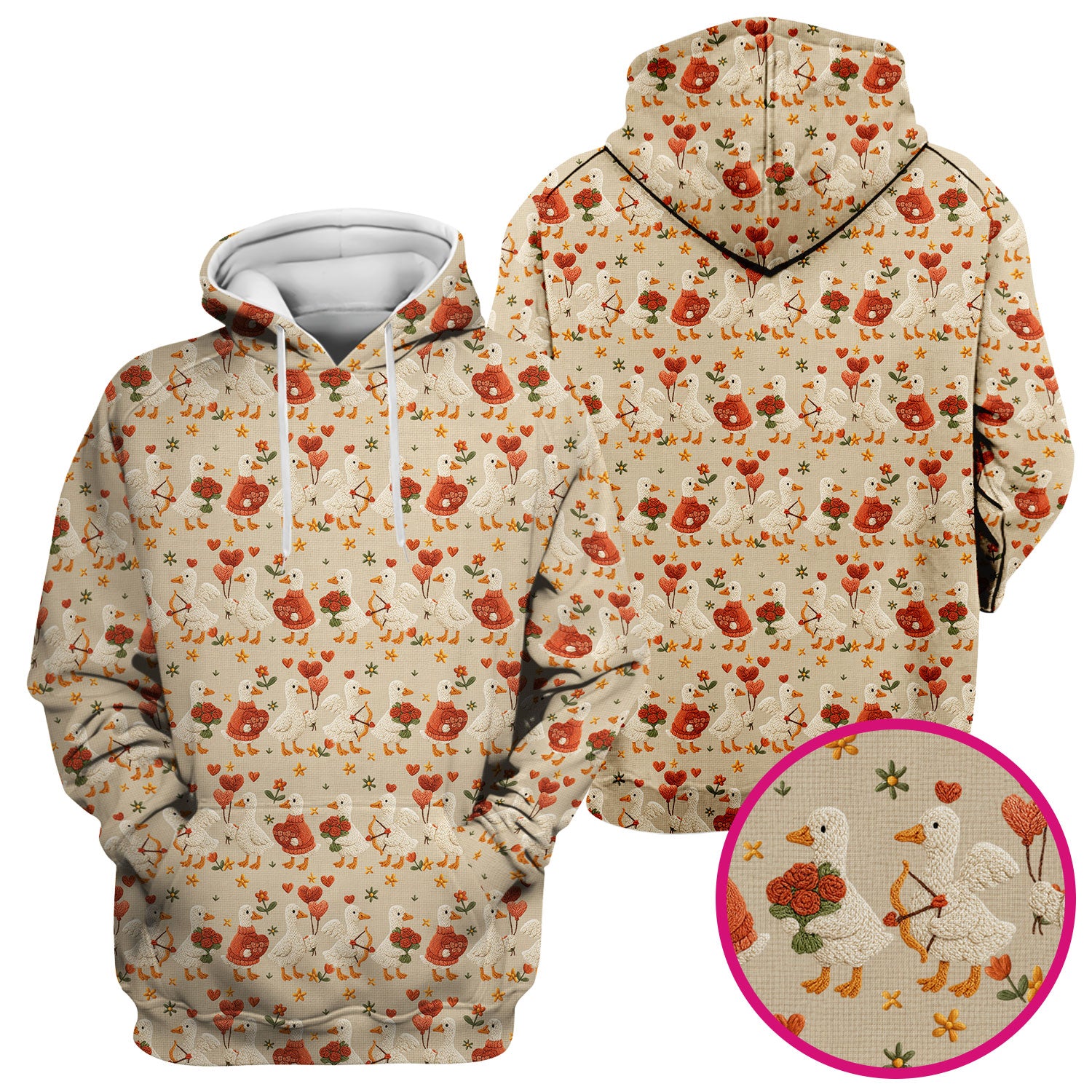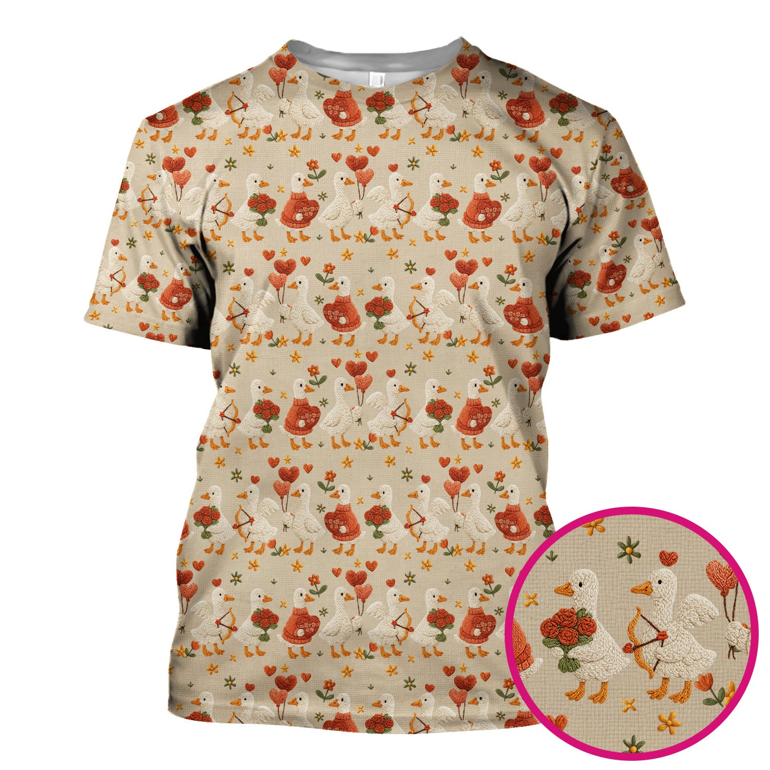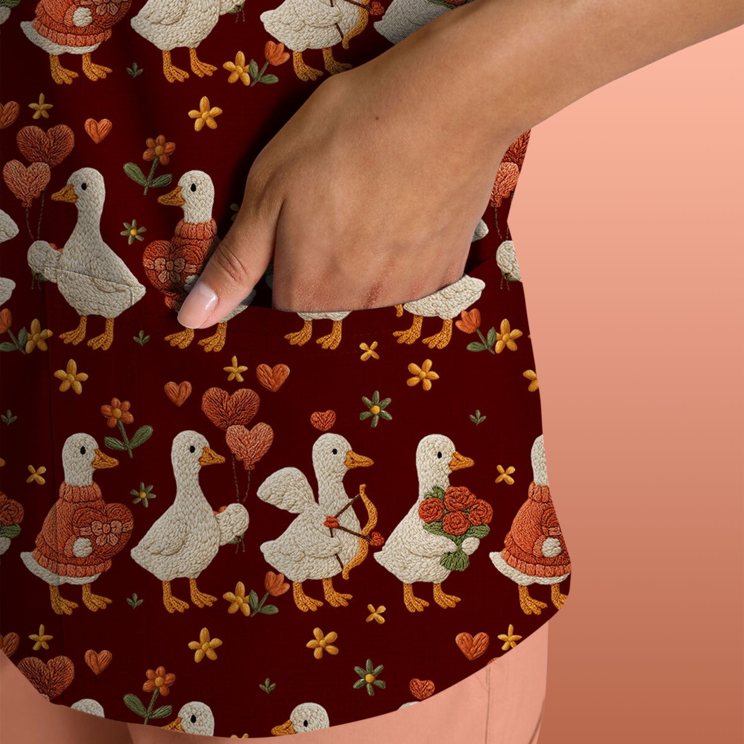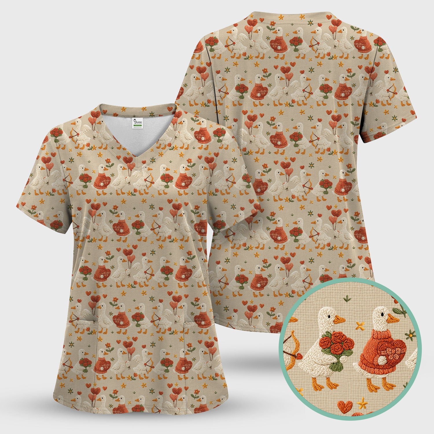 Cute Goose Nurse Scrub Top, Valentine Farm Medical Pattern Shirt, Breathable Fabrics Nursing Uniform