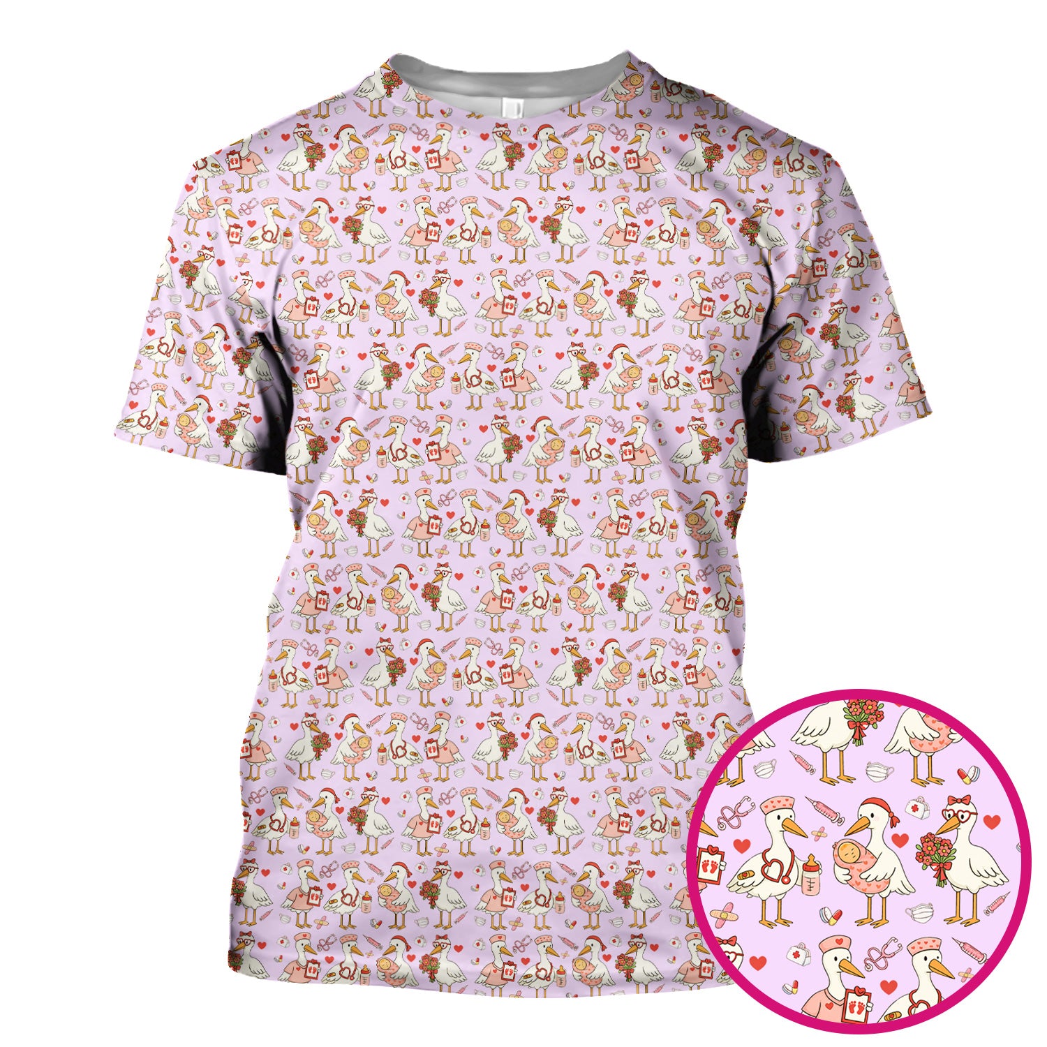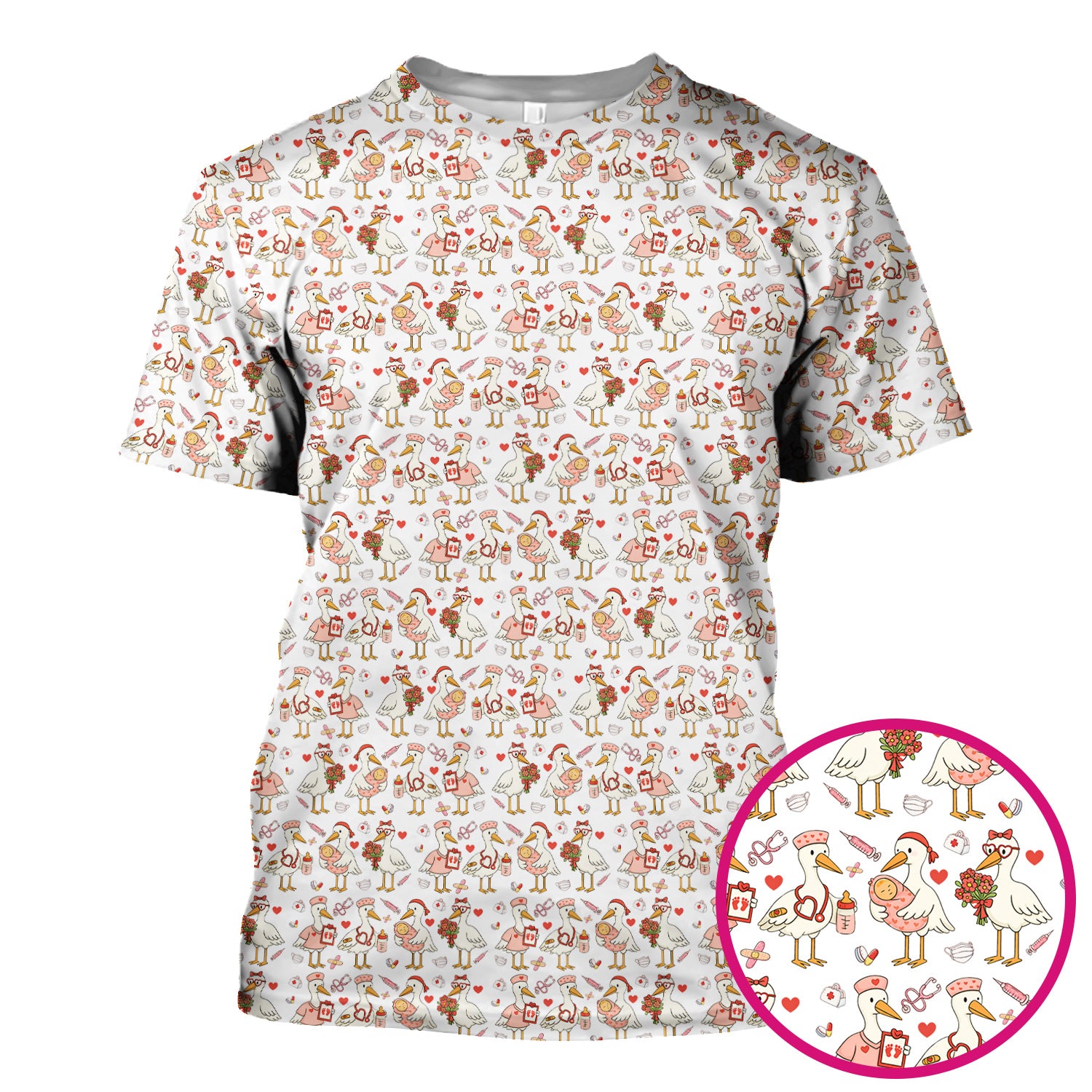 Cute Goose Nurse Valentine Pattern Scrub Top, Breathable Fabrics Nursing Uniform
