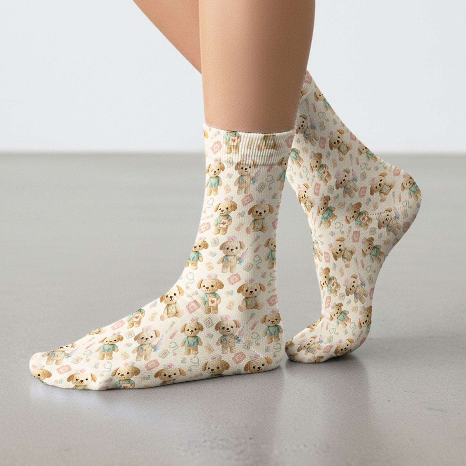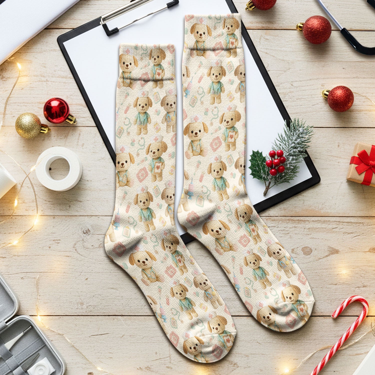 Cute Labrador Dog Christmas Socks for Nurse Doctor - Funny Puppy Adult Socks for Men and Women - Breathable Fabrics Medical Uniform