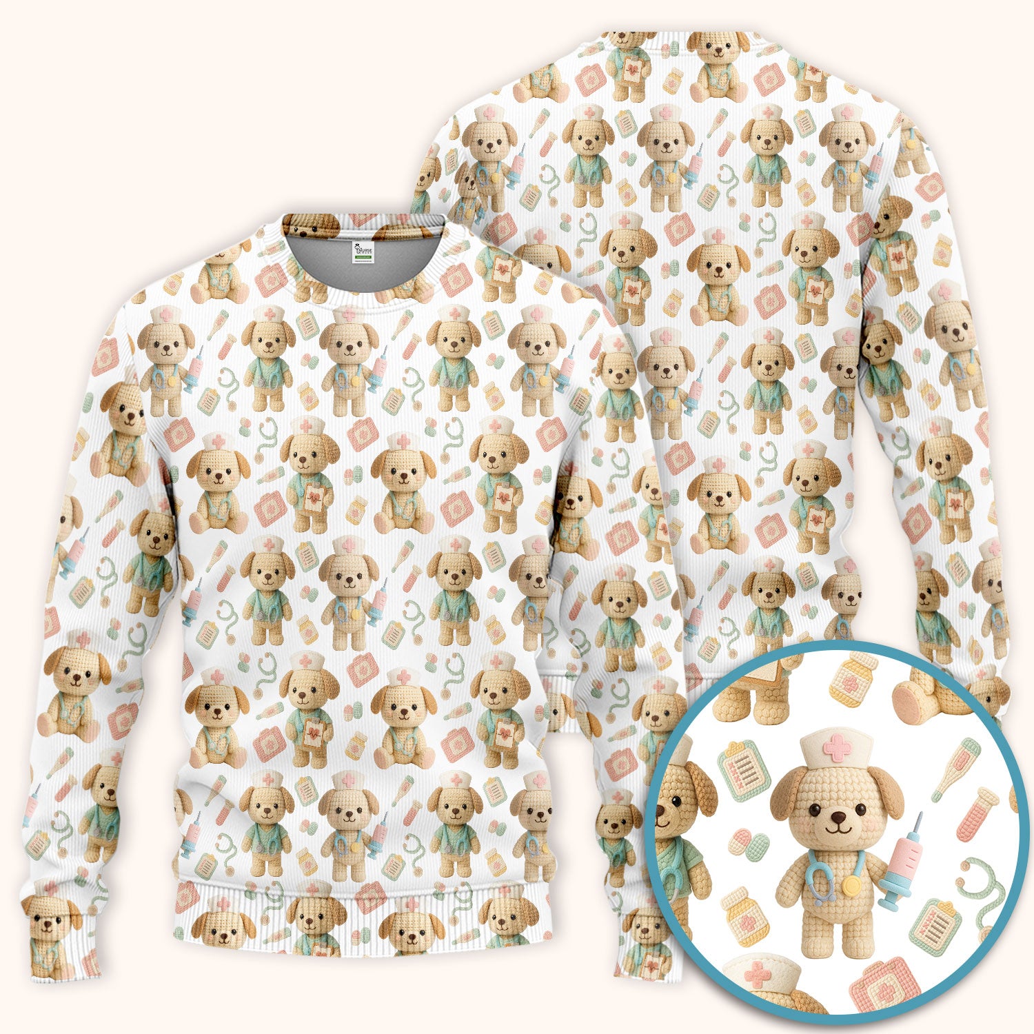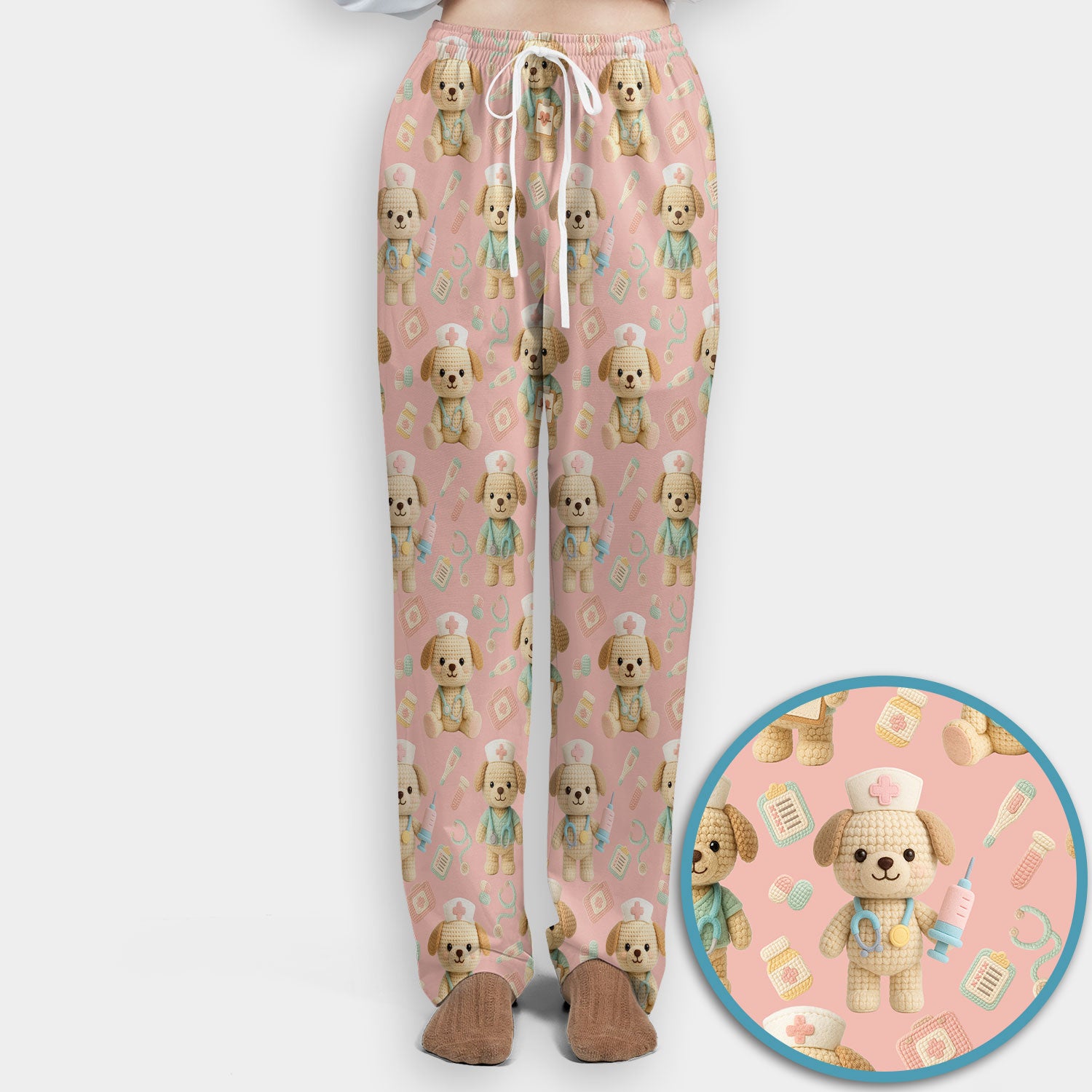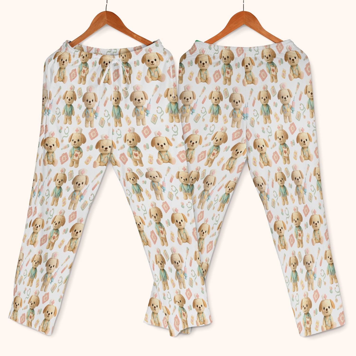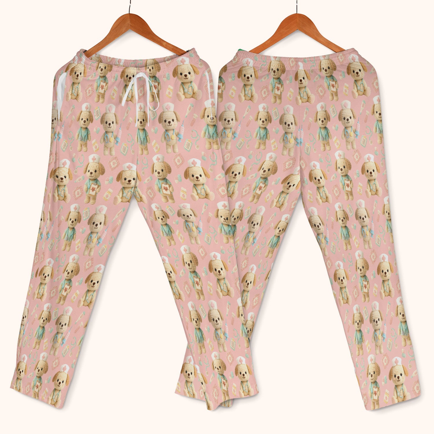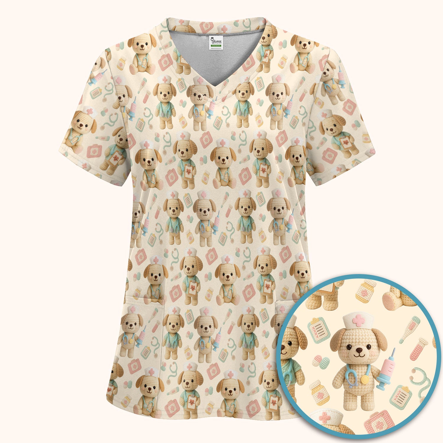 Cute Labrador Scrub Set for Nurse - Pastel Crochet Dog Scrubs Pants and V Neck Top - Adorable Puppy Med Uniform Gift for Women
