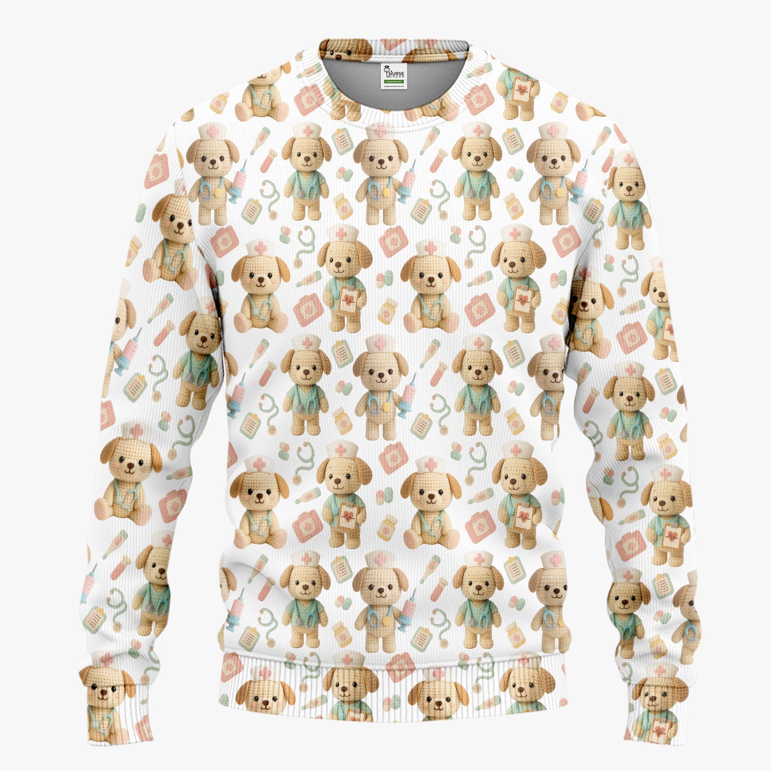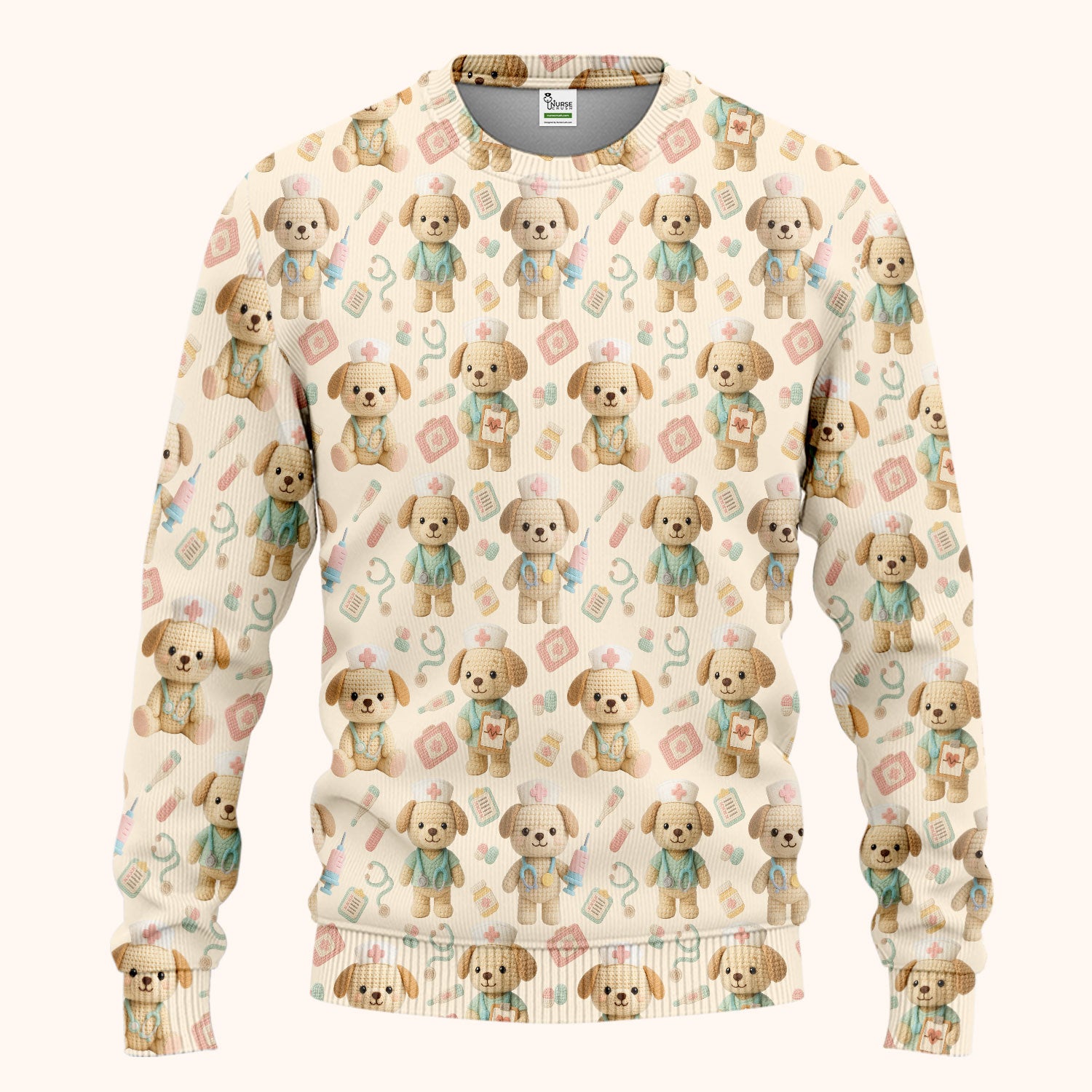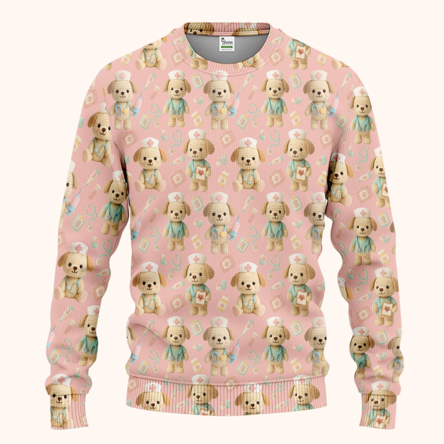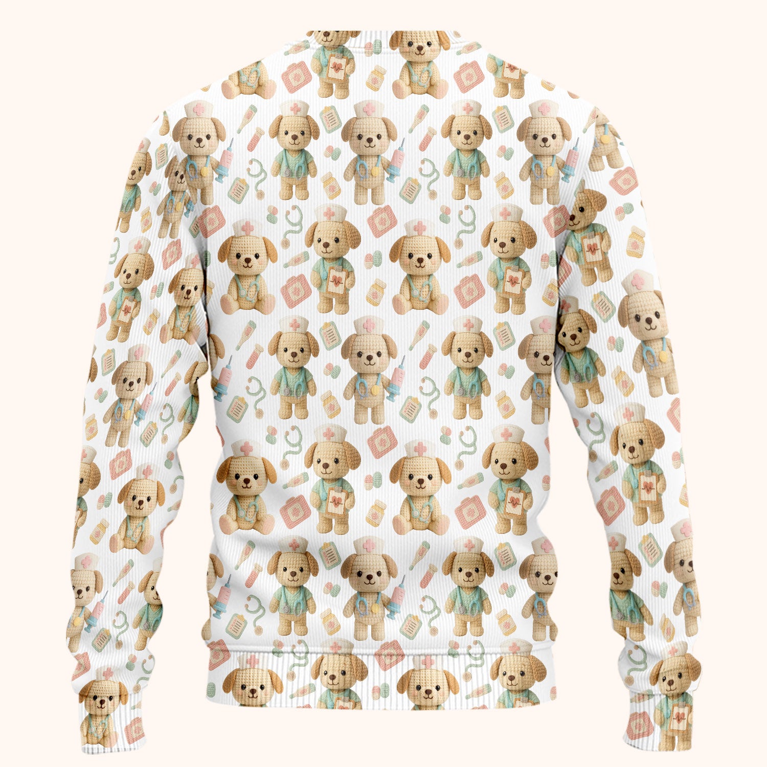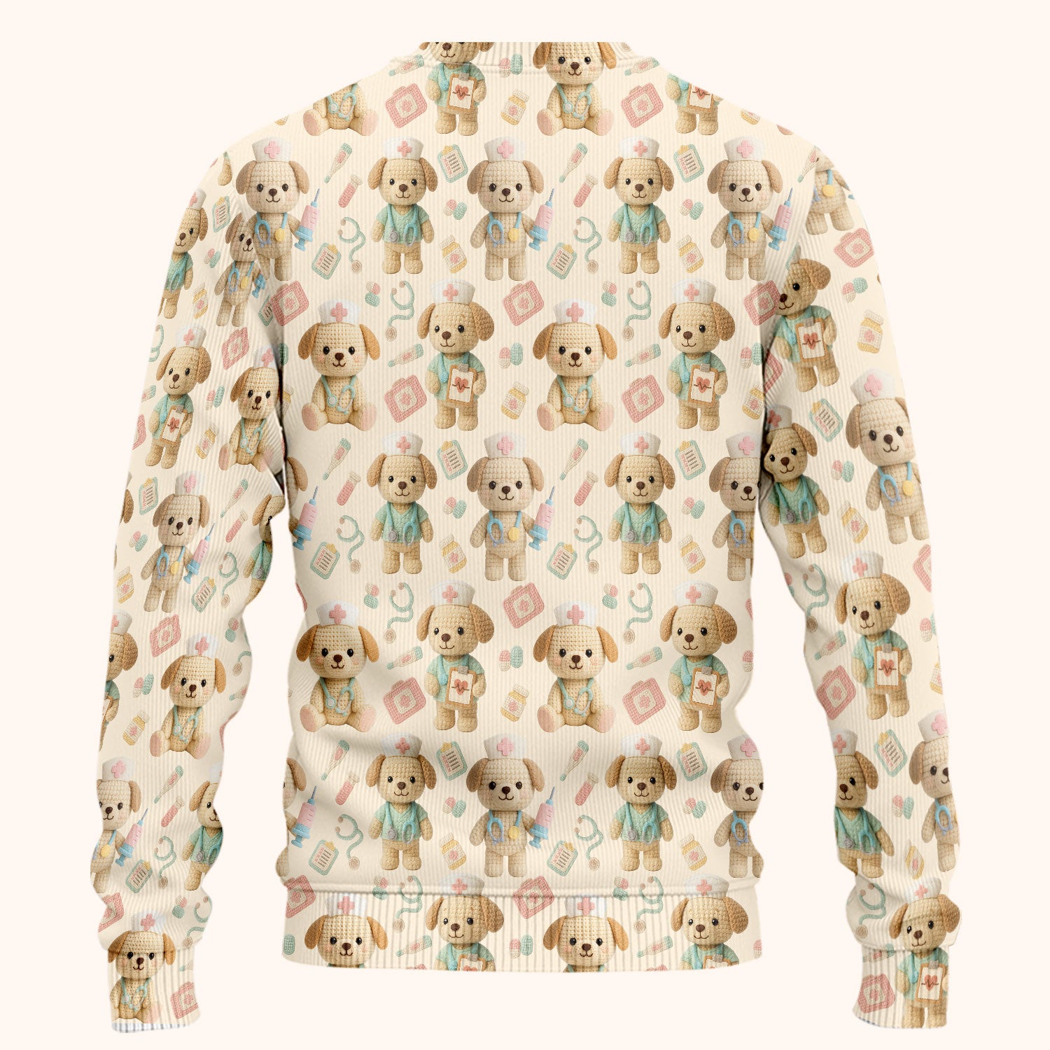 Cute Labrador Scrub Set for Nurse - Pastel Crochet Dog Scrubs Pants and V Neck Top - Adorable Puppy Med Uniform Gift for Women